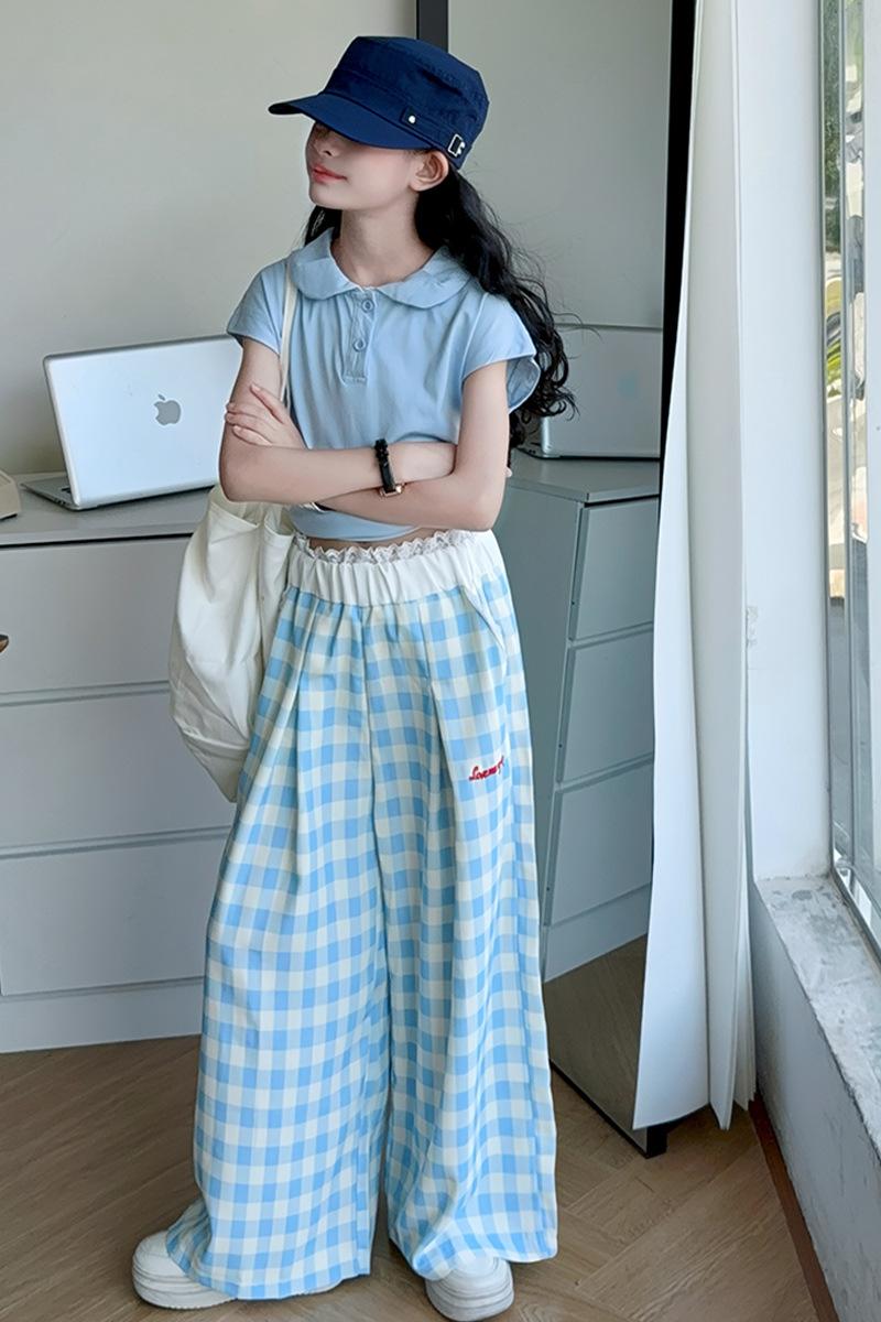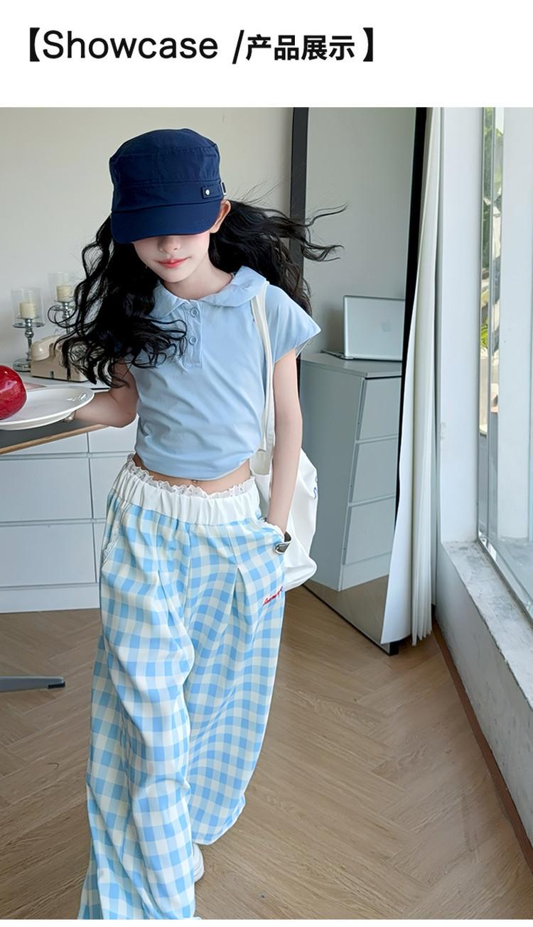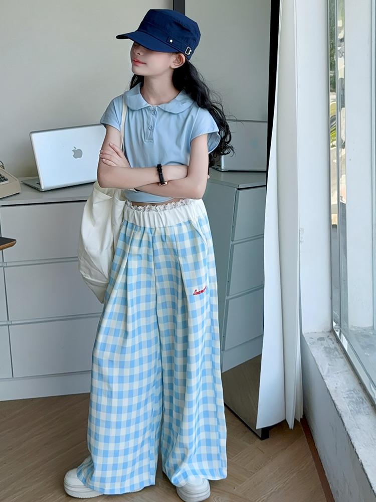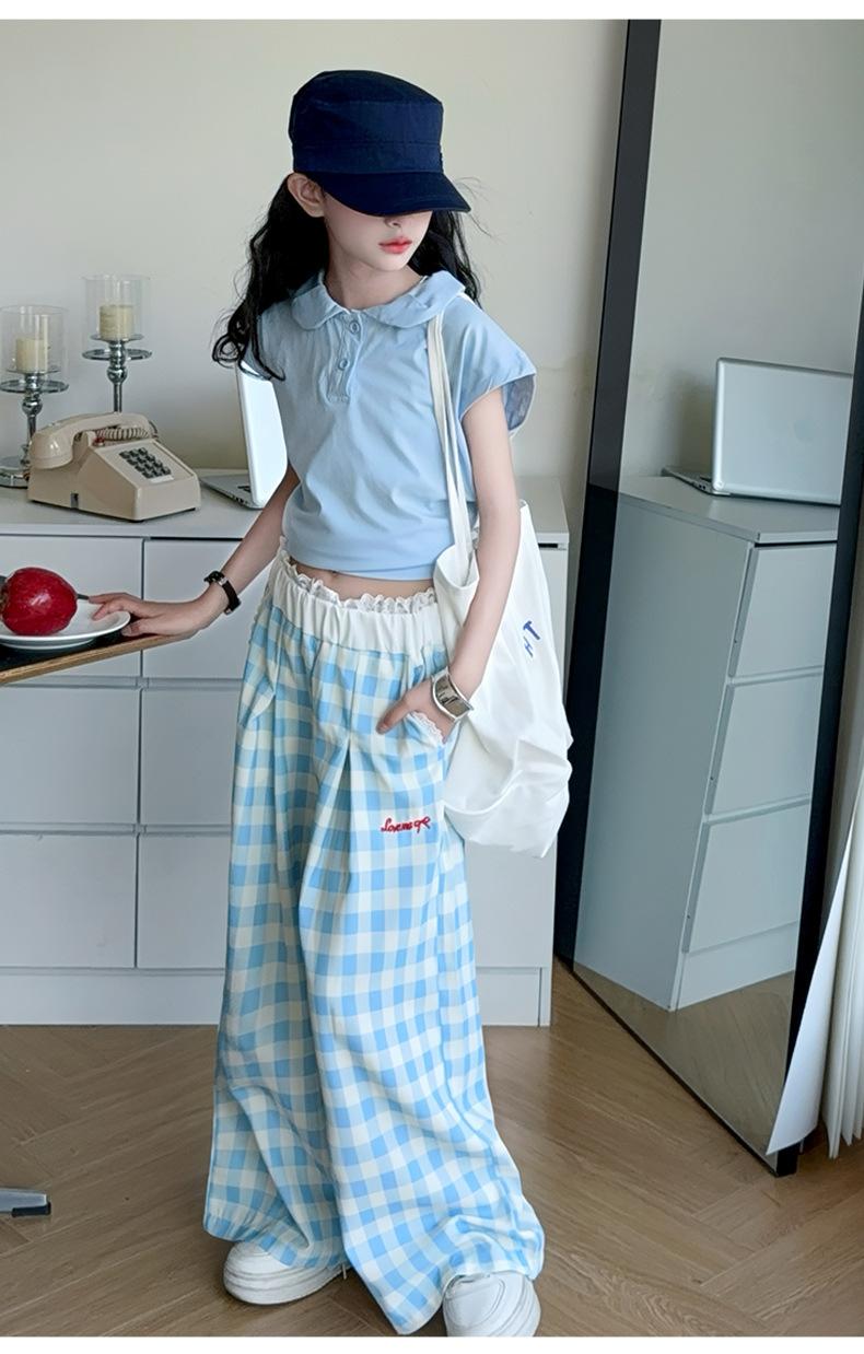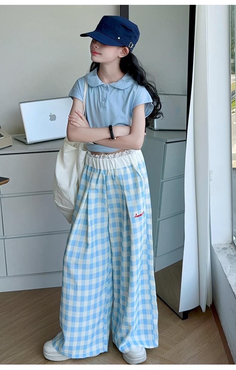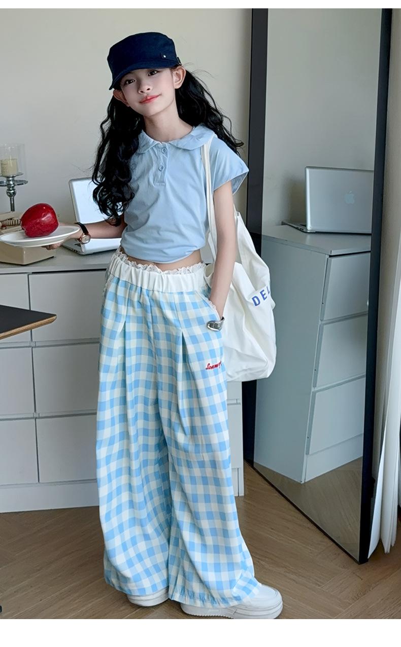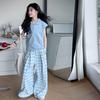 Conjunto de Verano de Moda para Niñas 2025 Nuevo Top Elegante Coreano de Manga Corta y Pantalones de Pierna Ancha Conjunto de Dos Piezas para Niñas Mayores