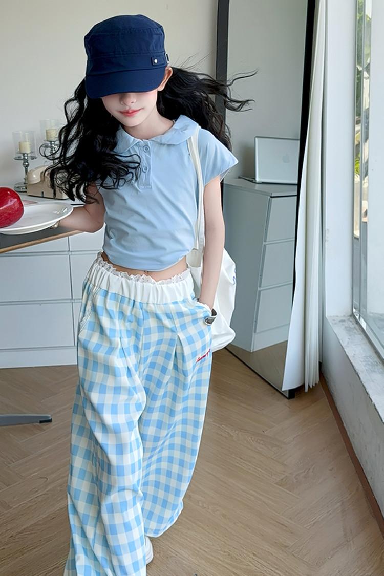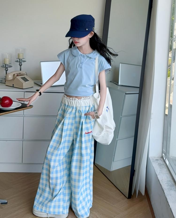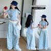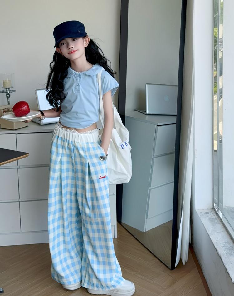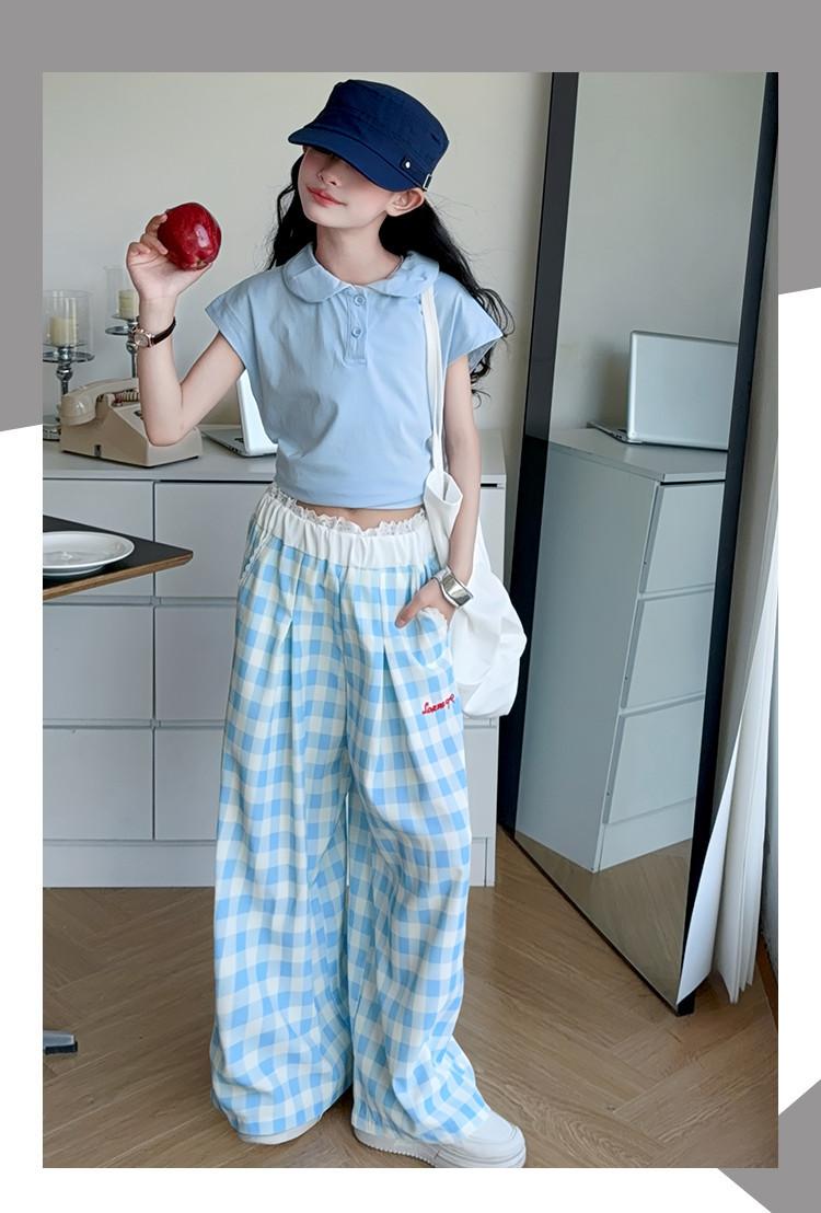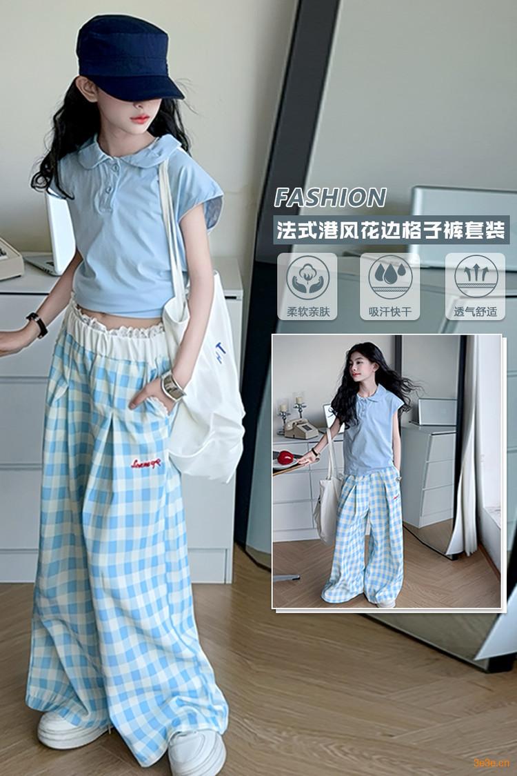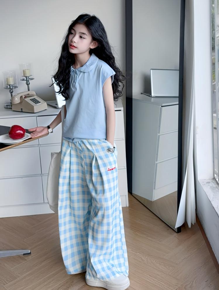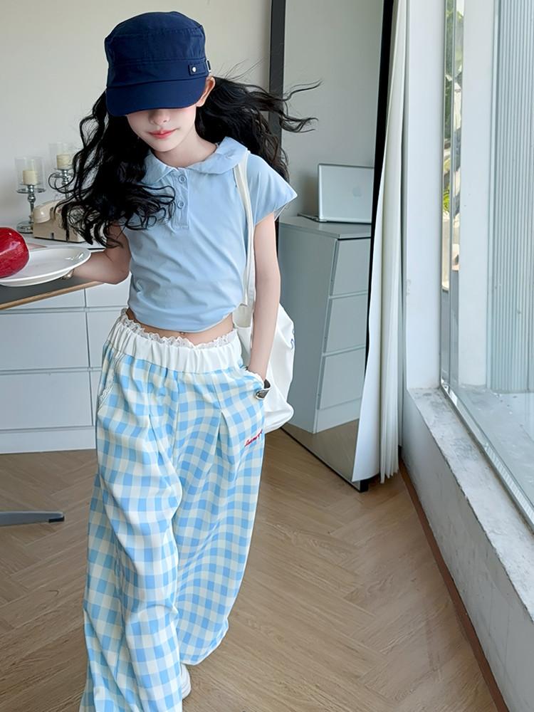 Conjunto de Verano de Moda para Niñas 2025 Nuevo Top Elegante Coreano de Manga Corta y Pantalones de Pierna Ancha Conjunto de Dos Piezas para Niñas Mayores