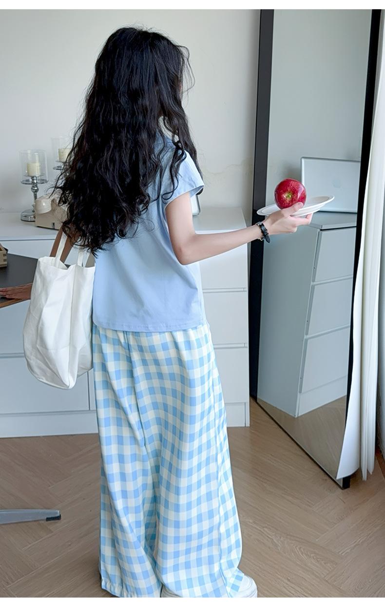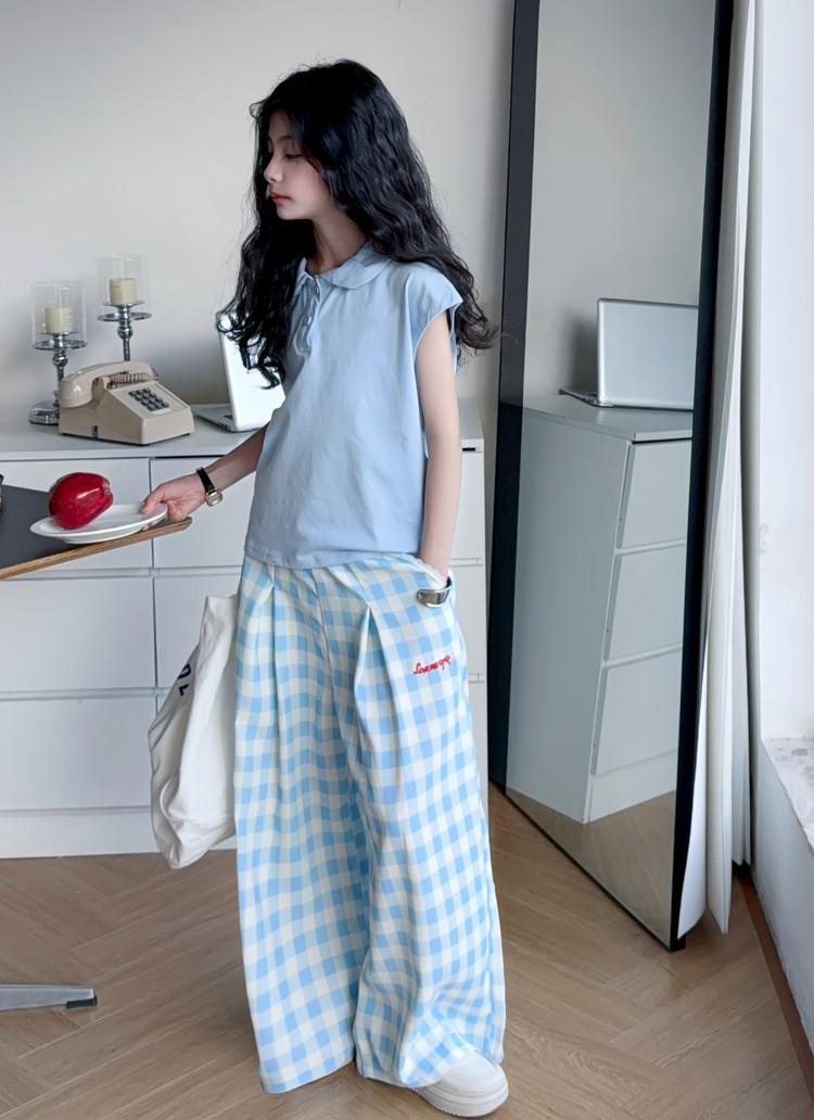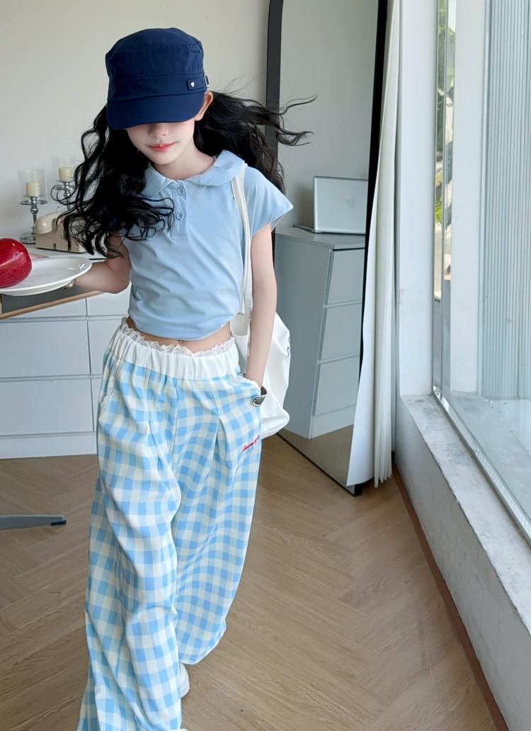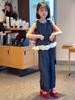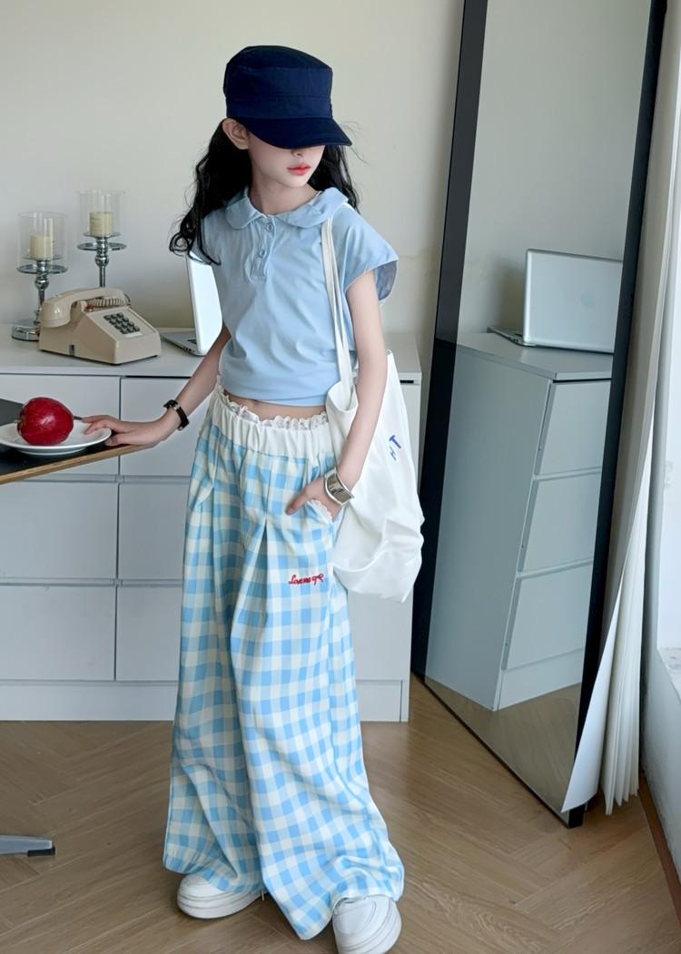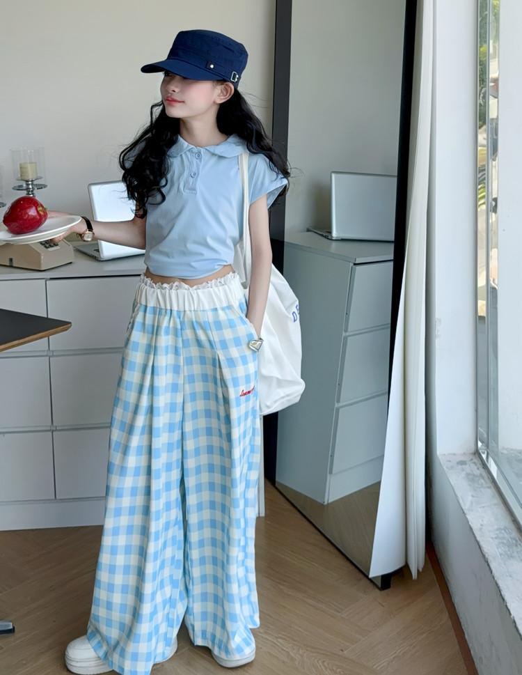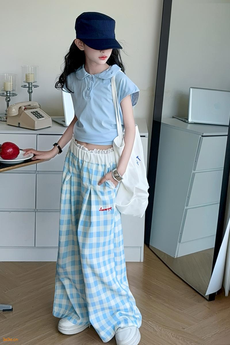 Conjunto de Verano de Moda para Niñas 2025 Nuevo Top Elegante Coreano de Manga Corta y Pantalones de Pierna Ancha Conjunto de Dos Piezas para Niñas Mayores