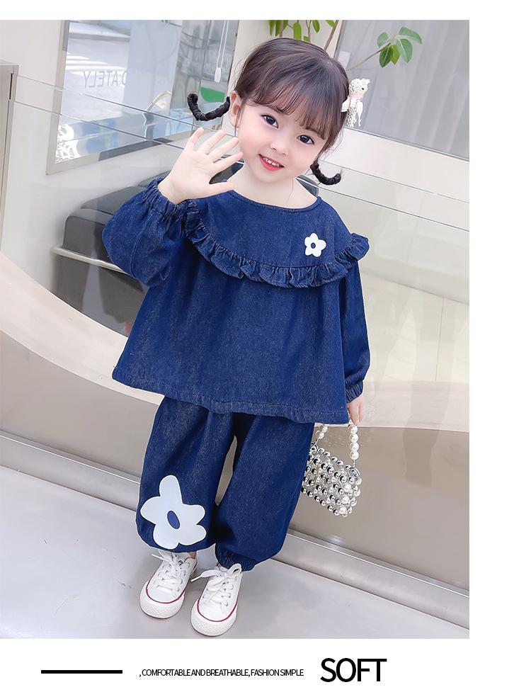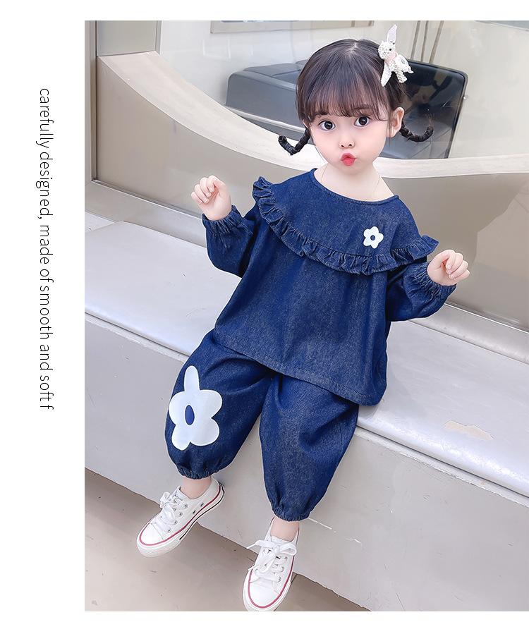 Traje de Primavera para Niñas 2025 Nuevo Estilo de Primavera y Otoño para Bebé Niña Casual Infantil Primavera Denim Manga Larga Conjunto de Dos Piezas