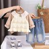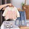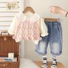Conjunto de Primavera y Otoño para Niñas 2025 Nueva Moda Bebé Otoño Suéter Cereza Conjunto de Tres Piezas Ropa para Niños Ropa para Bebé