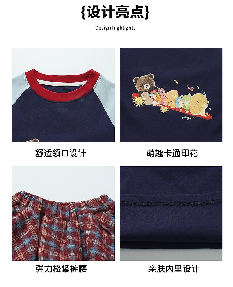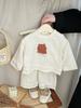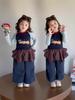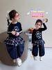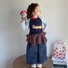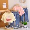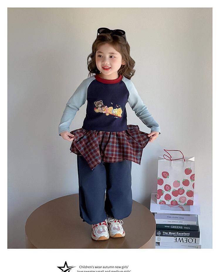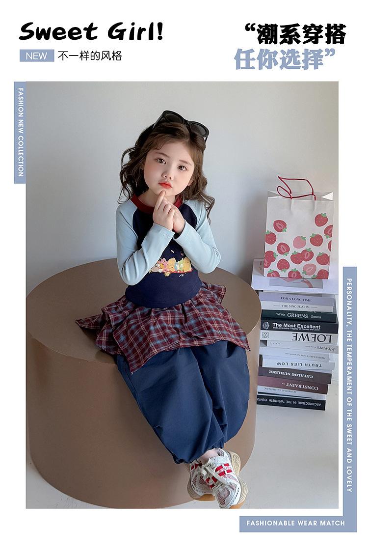 Conjunto para Niñas 2025 Otoño Nuevo Infantil Elegante Moderno Bebé Niña Parche de Dibujos Animados Manga Larga Cuadros Pantalones Bombachos