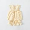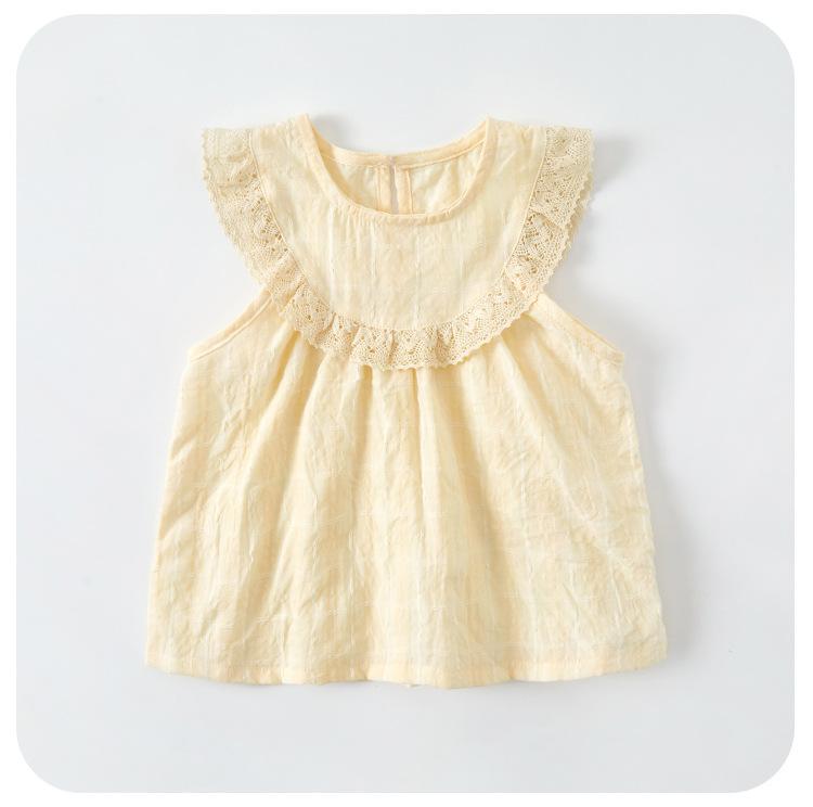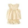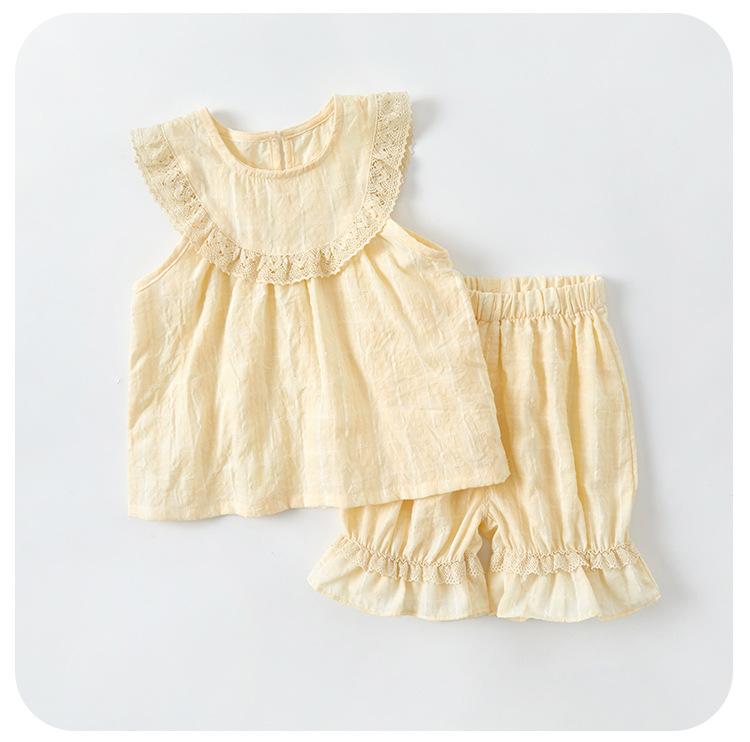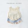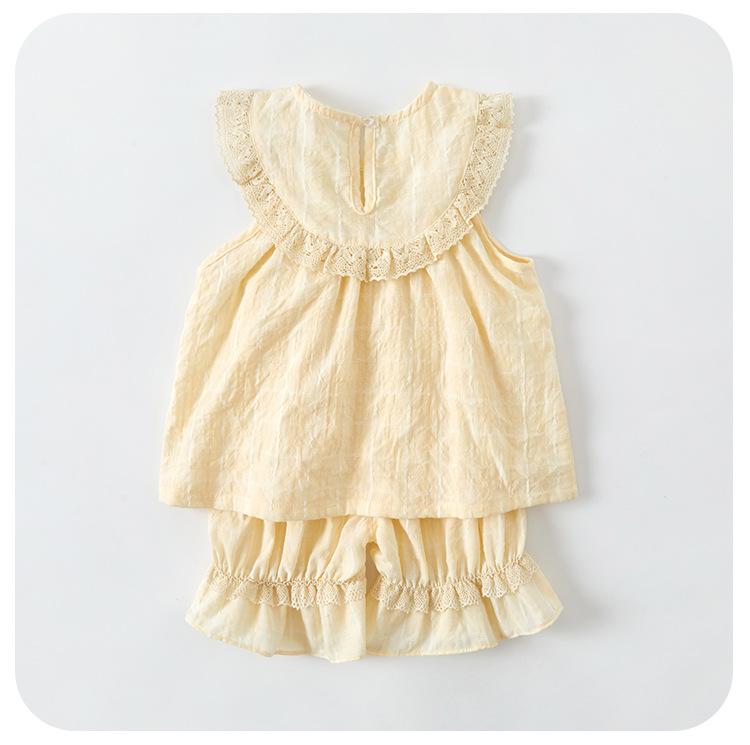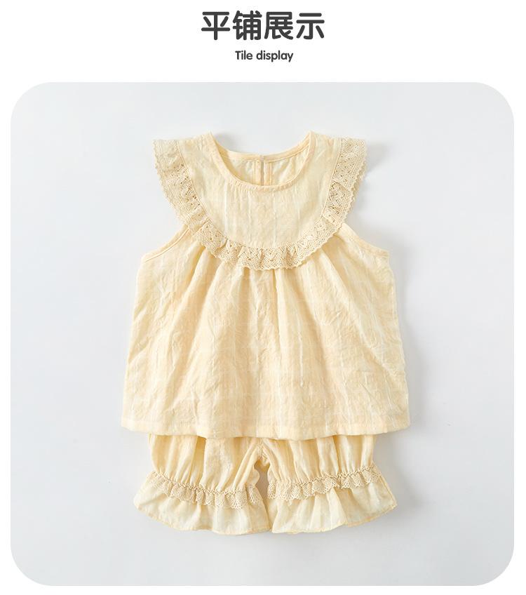 Traje de Encaje Dividido para Niña 2025 Verano Nuevo Bebé Delgada Chaleco Sin Mangas Pantalones de Pierna Ancha Conjunto de Dos Piezas