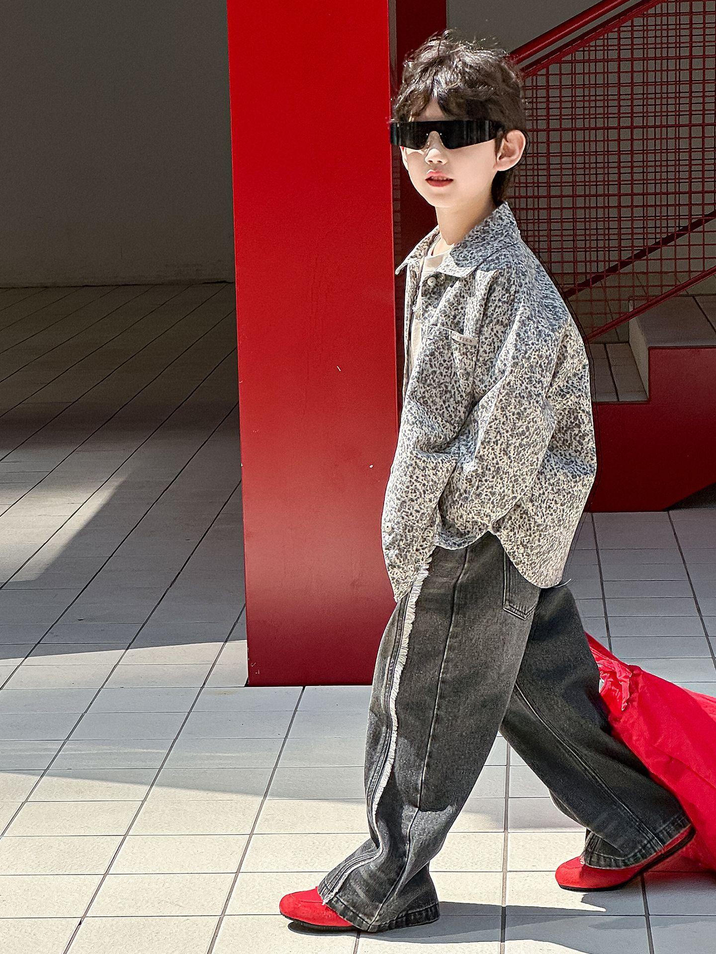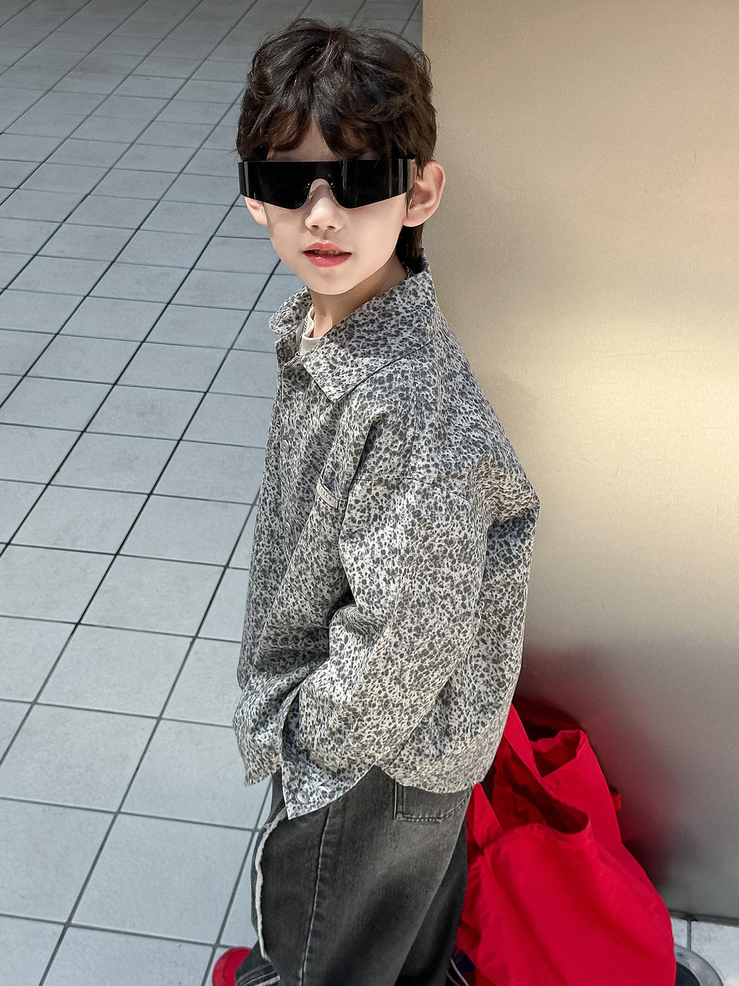 Camisa de Algodón para Tienda para Niños Otoño Estilo Coreano 2025 Ropa Nueva para Niños Camisa con Estampado de Leopardo Trendy Cool Bebé Holgada Casual