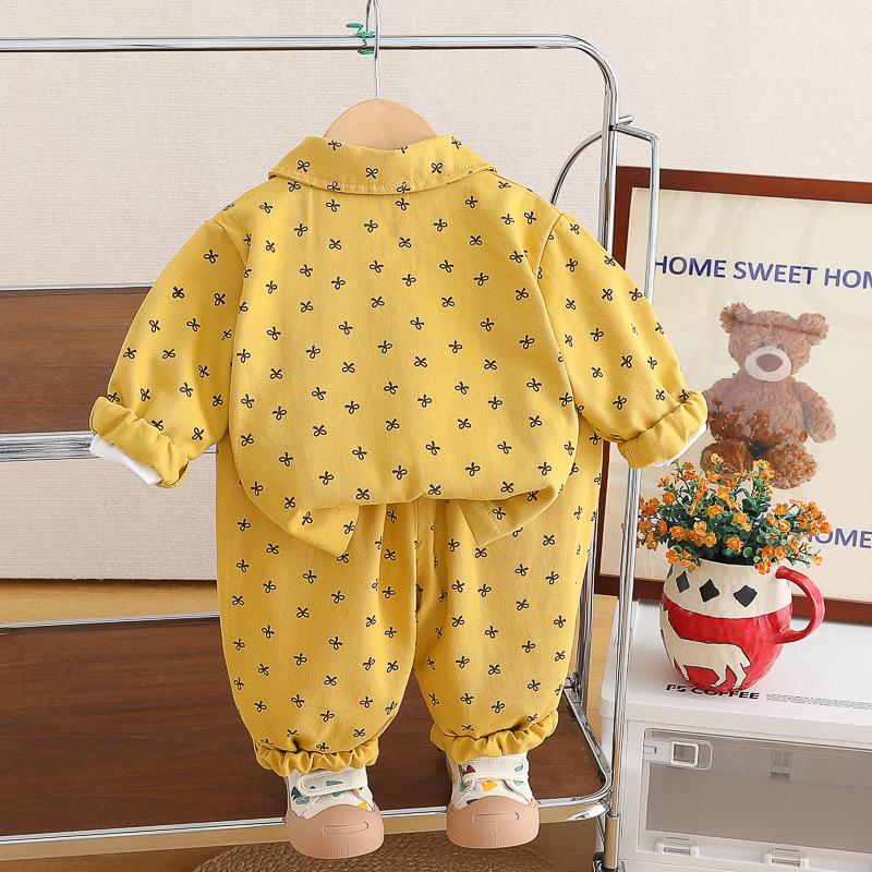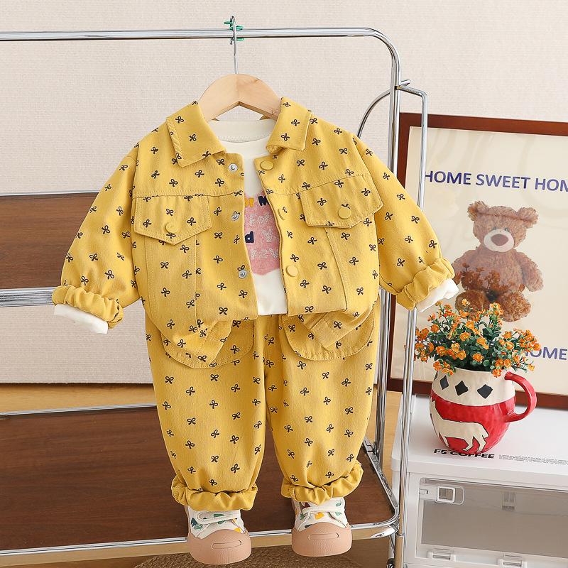 Traje de Otoño para Bebé Niña Nuevo Otoño Traje de Tres Piezas con Lazo para Niños Traje de Estilo para Niños Pequeños y Medianos para Mujer Venta al por Mayor