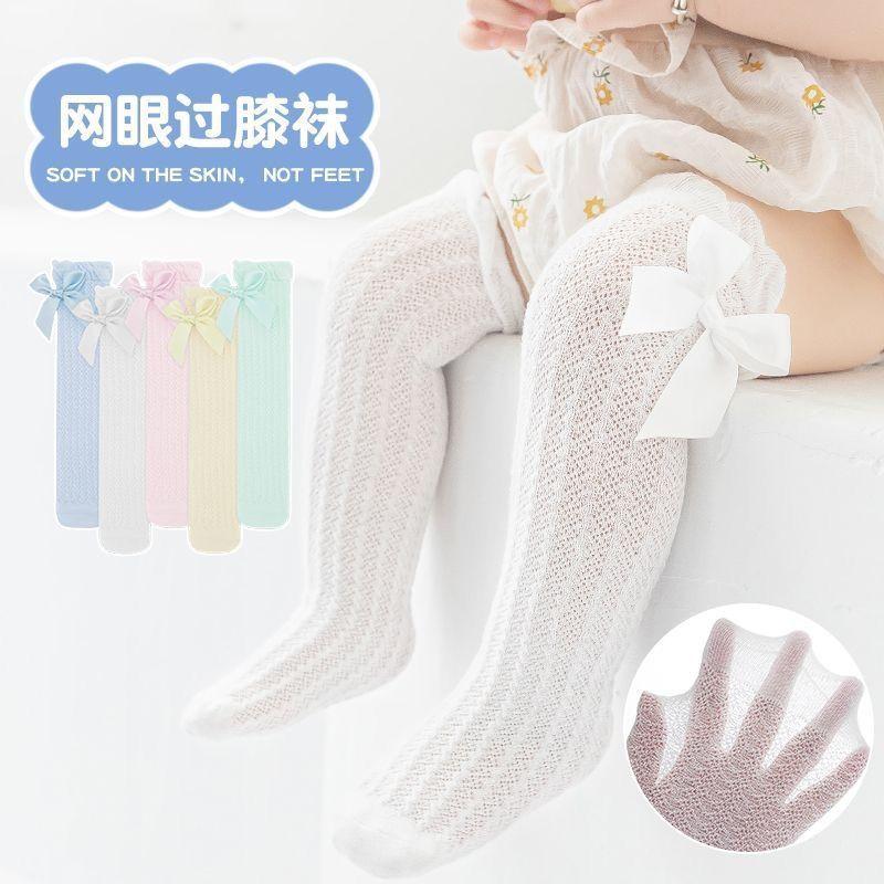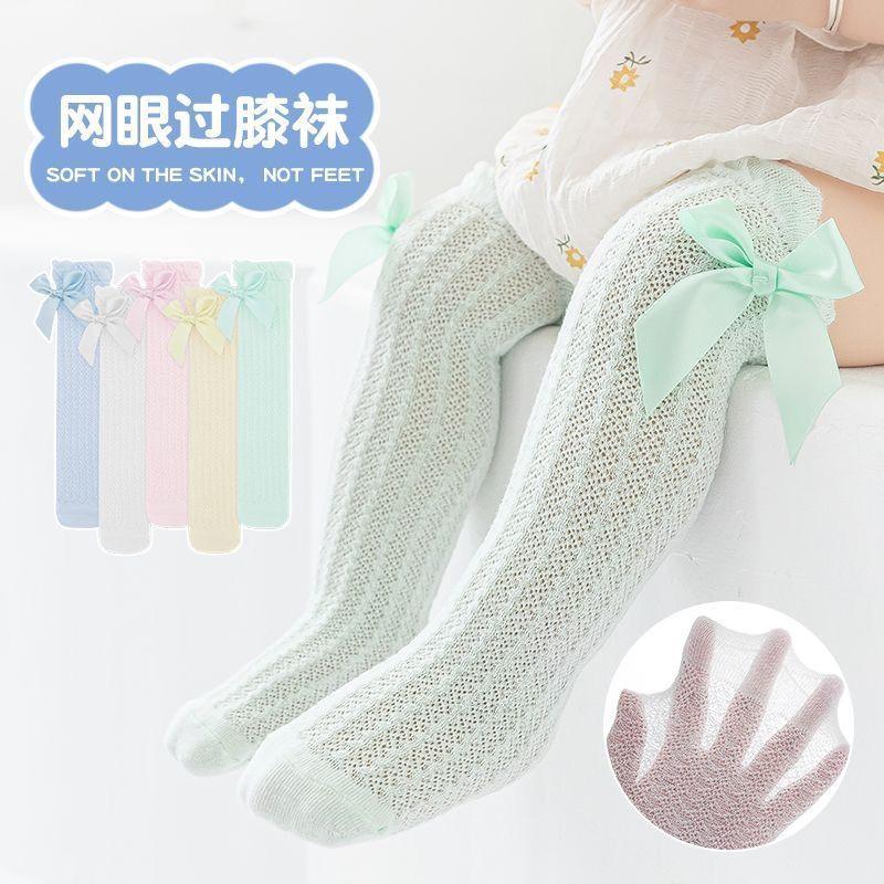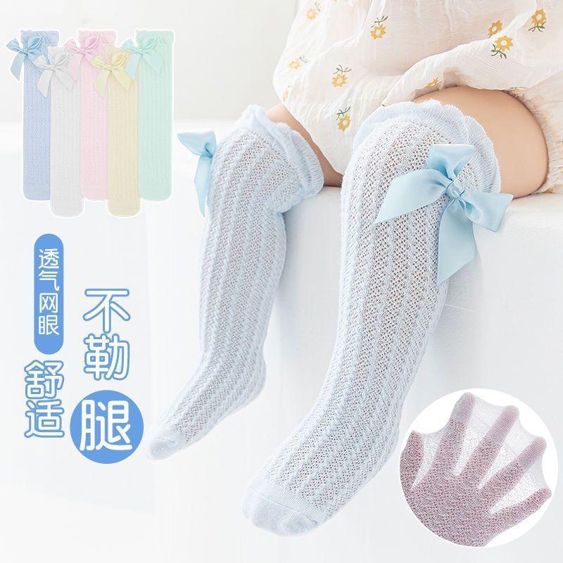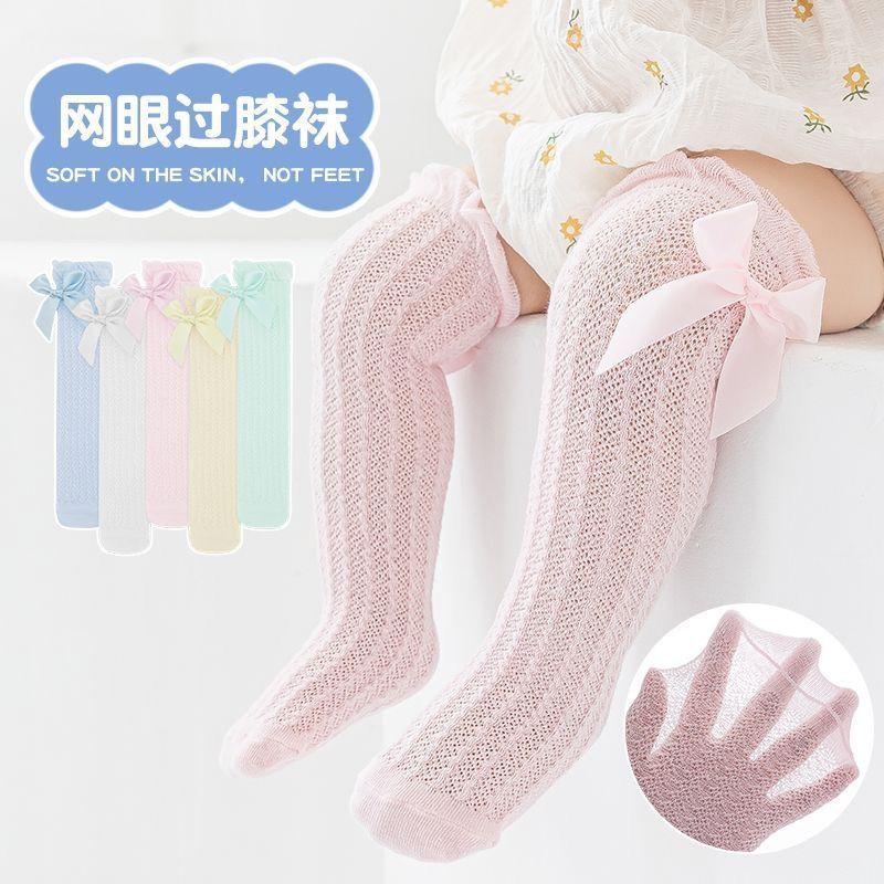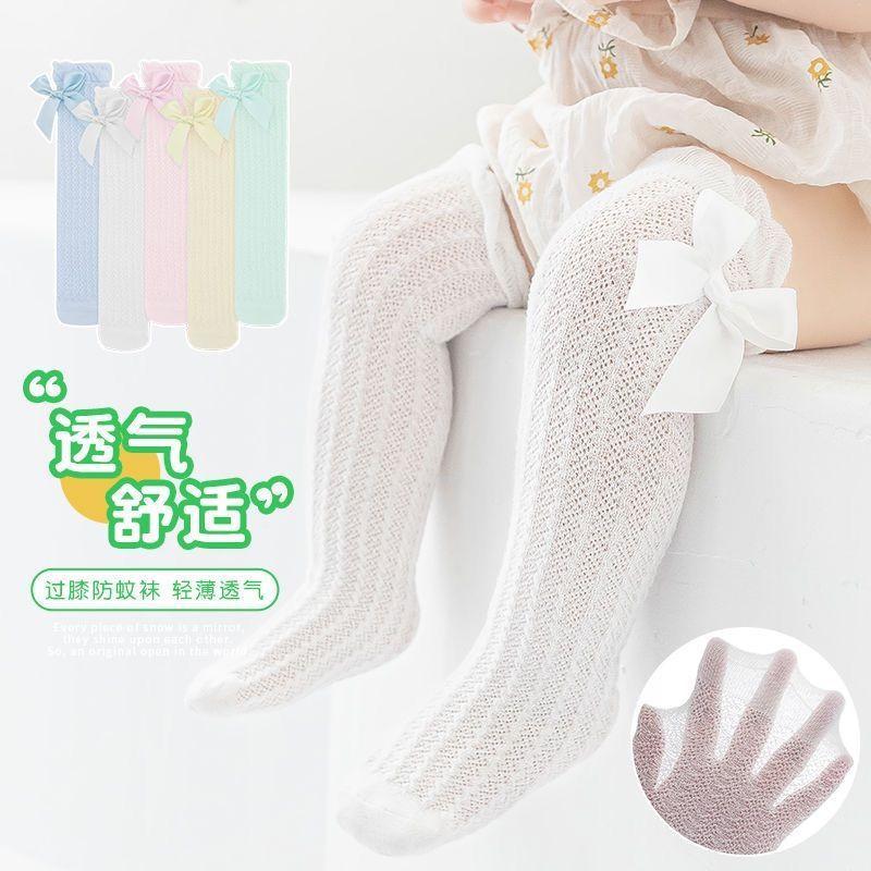Calcetines altos hasta la rodilla de algodón fino de verano para bebé, calcetines altos hasta la rodilla de malla transpirable con lazo para niña, calcetines de princesa para niña, calcetines de cobertura a prueba de mosquitos