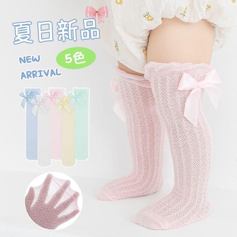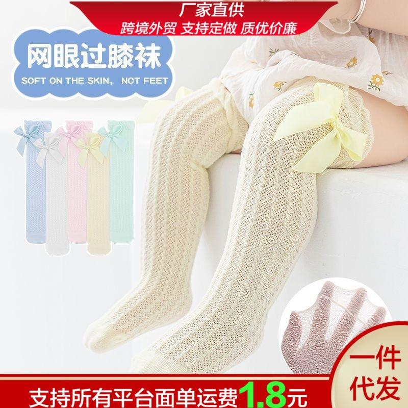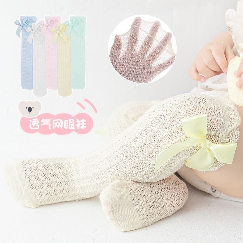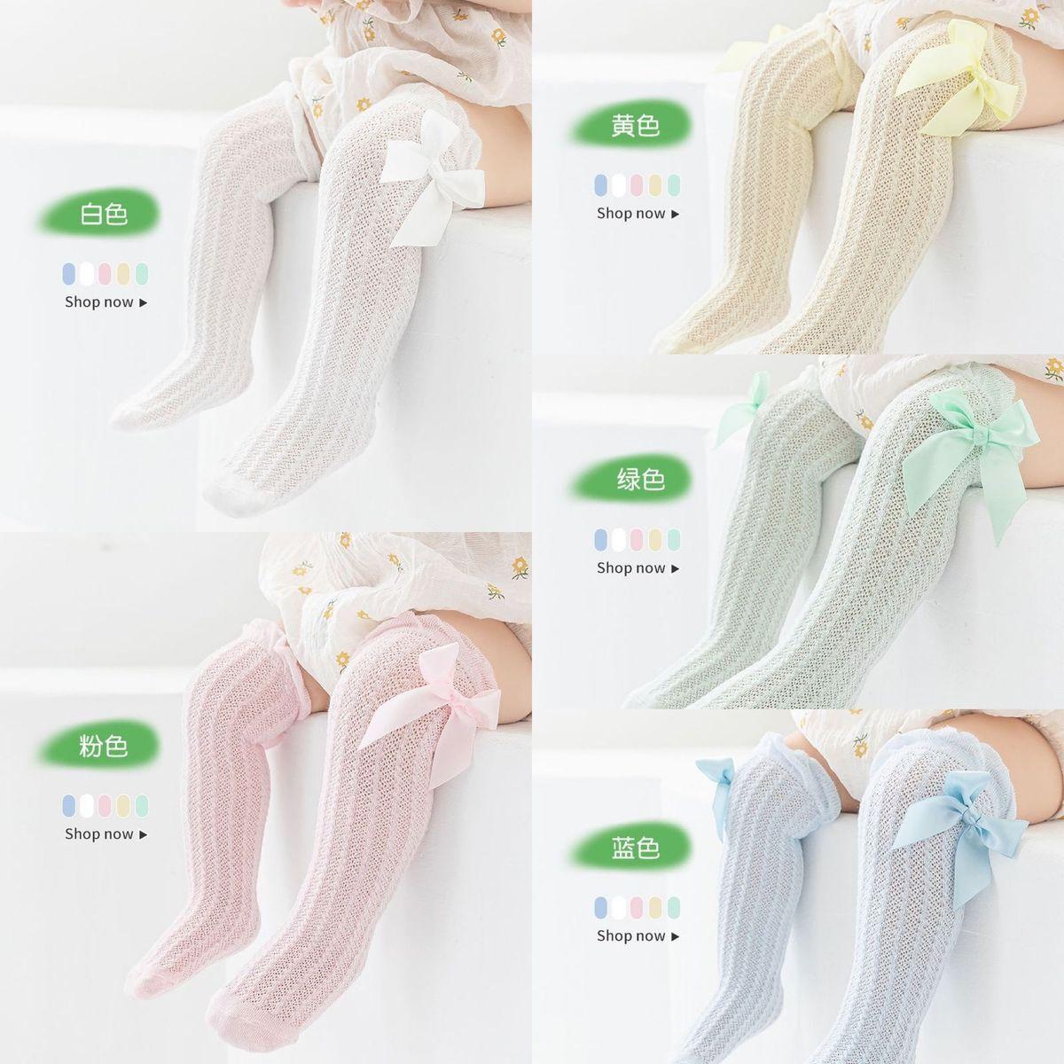 Calcetines altos hasta la rodilla de algodón fino de verano para bebé, calcetines altos hasta la rodilla de malla transpirable con lazo para niña, calcetines de princesa para niña, calcetines de cobertura a prueba de mosquitos