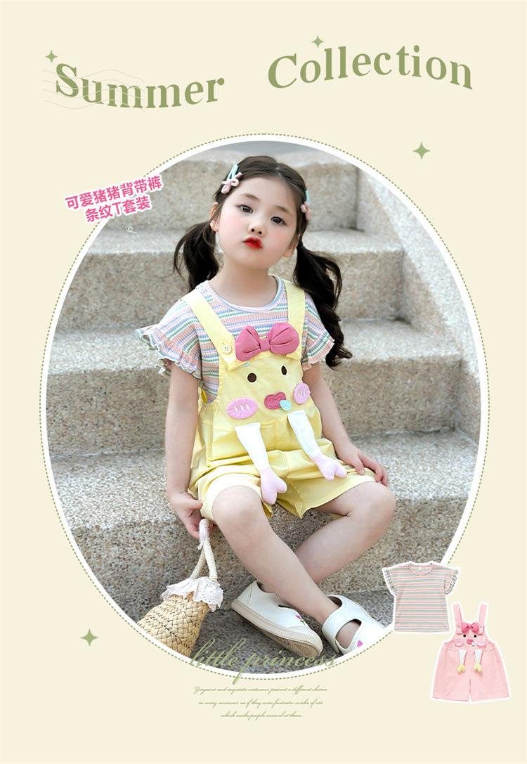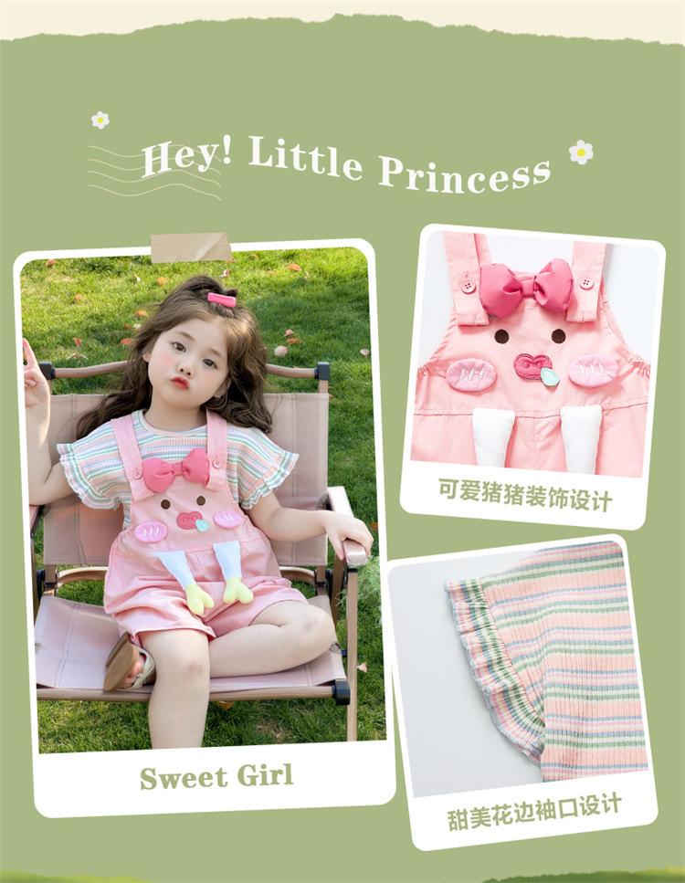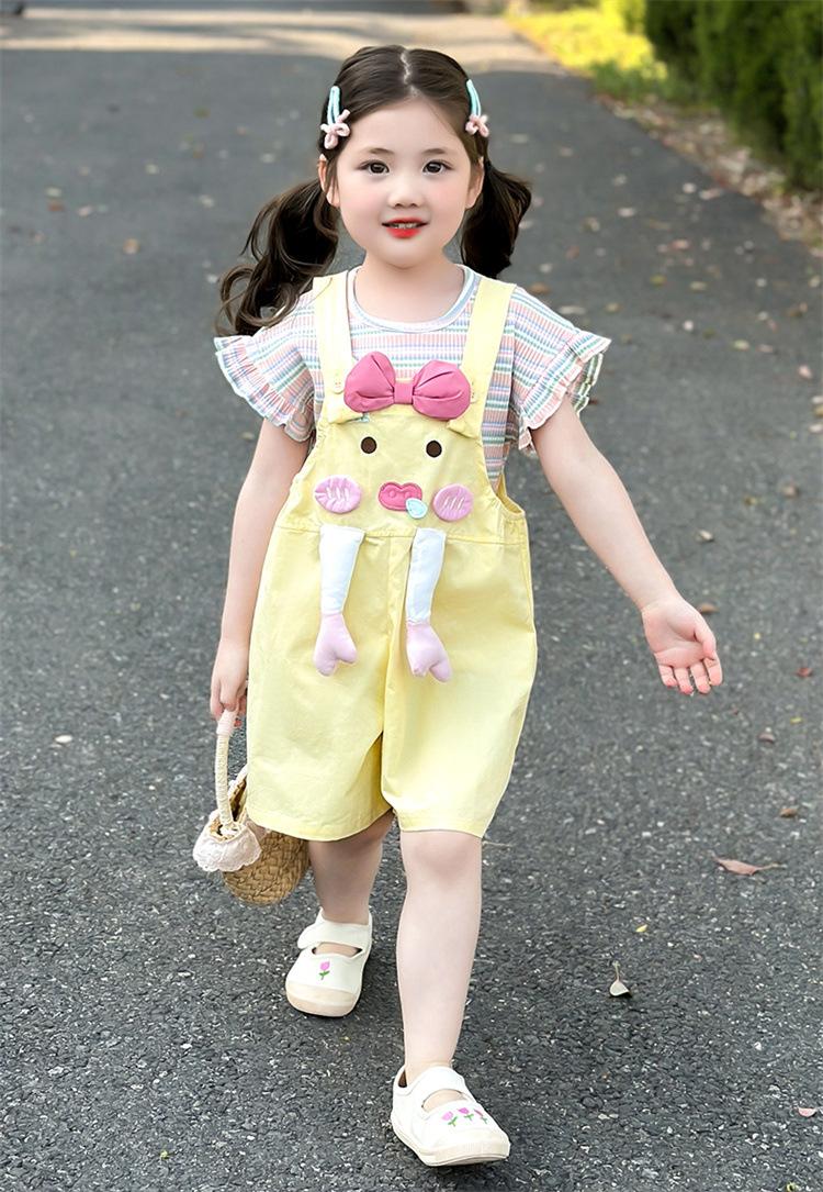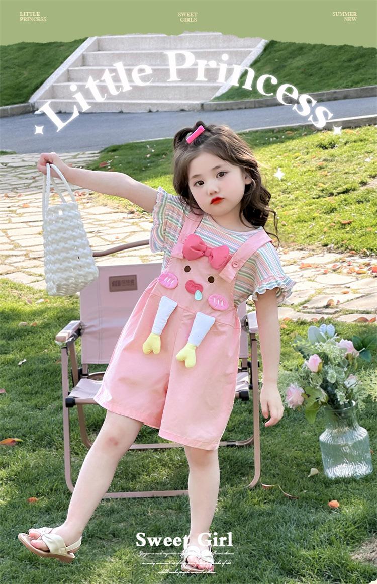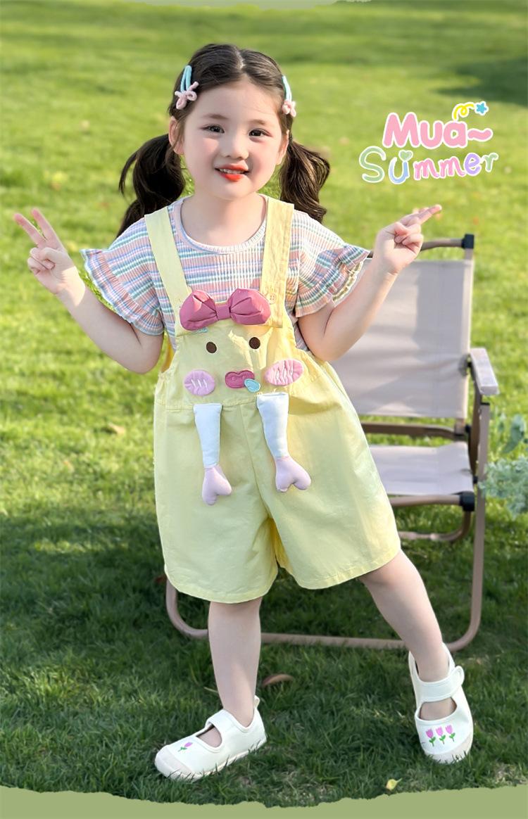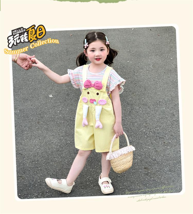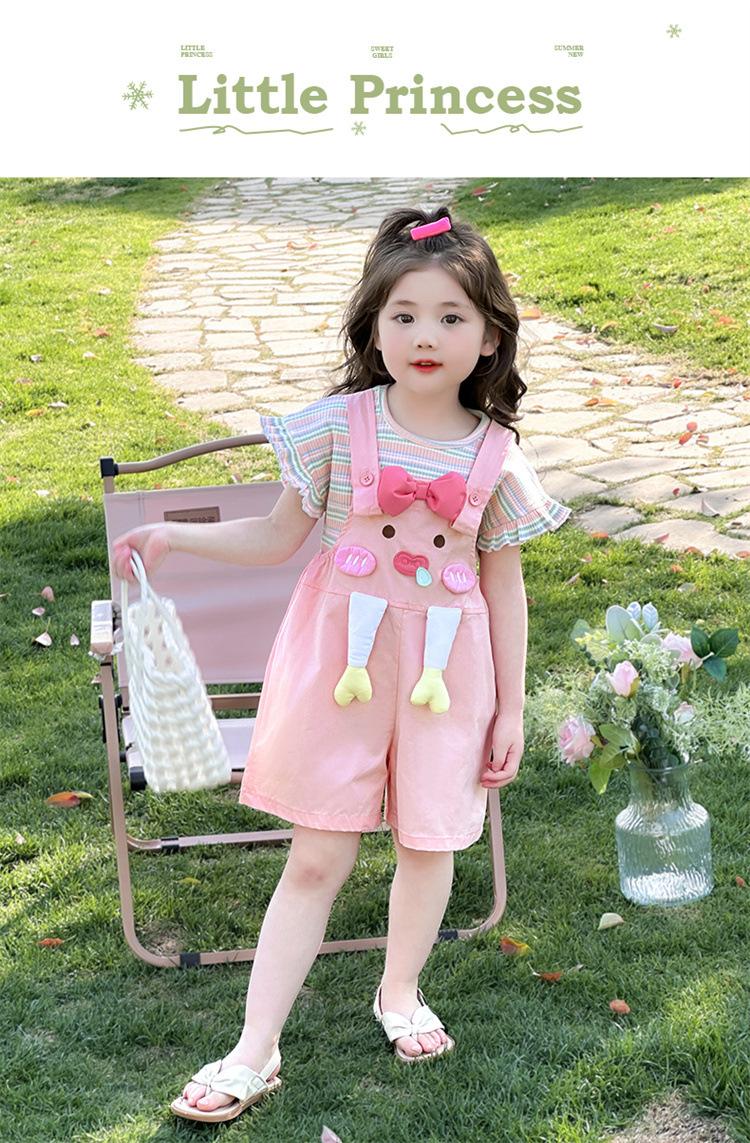 Traje de Overol para Niñas Verano 2025 Nueva Ropa Infantil de Moda de Dibujos Animados Bebé Conjunto de Verano de Dos Piezas
