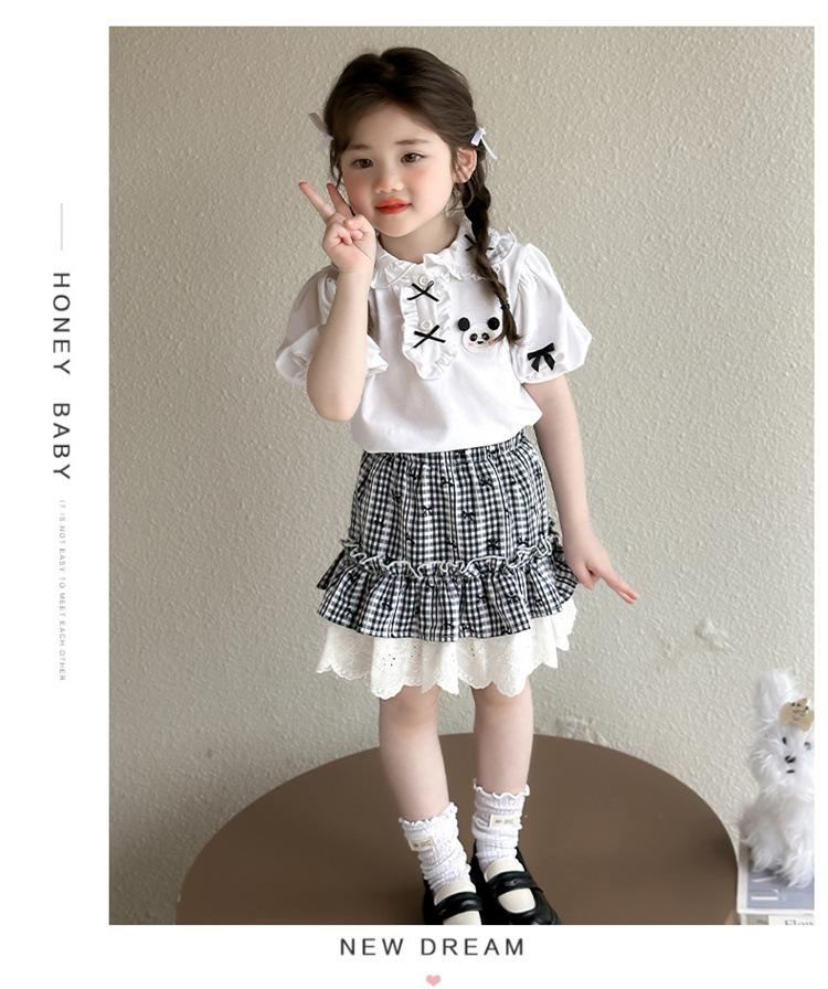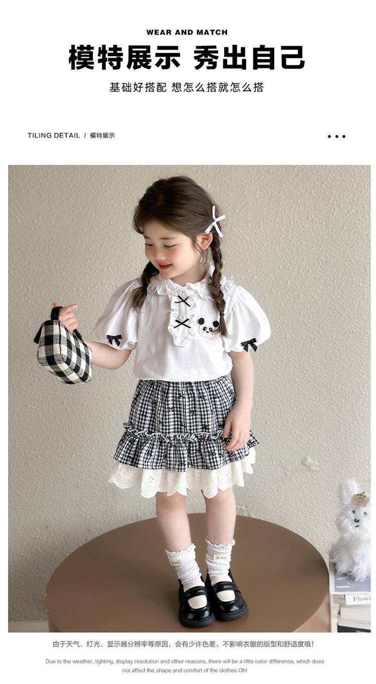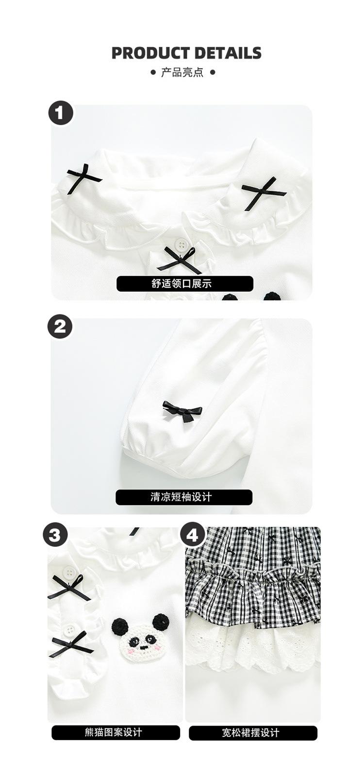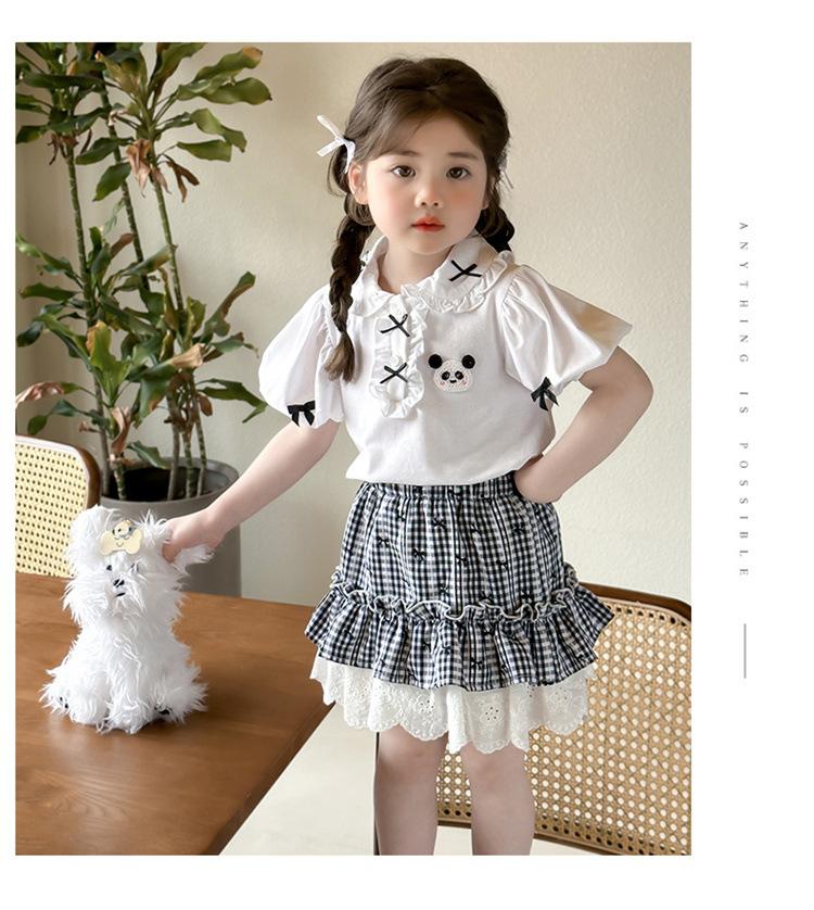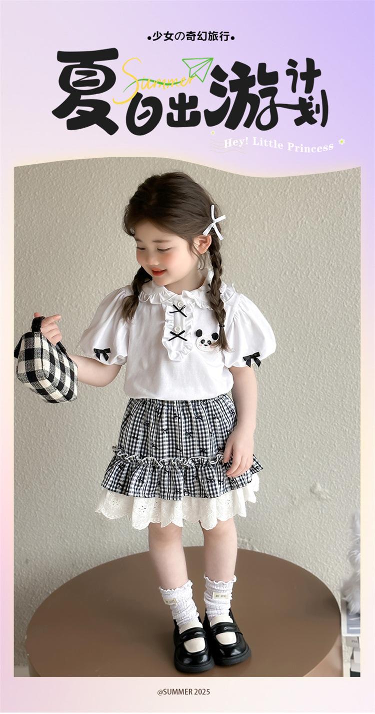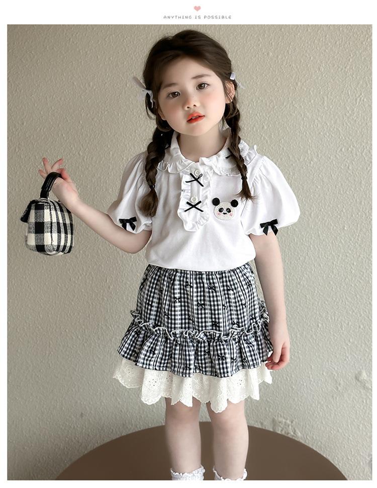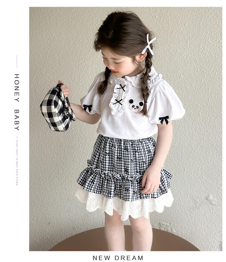 Compra Bebé Niña Verano 2025 Nuevo Estilo Niña Dibujo Animado Panda Lazo Manga Corta Moda Falda a Cuadros Conjunto de Dos Piezas al por mayor en Joom.pro