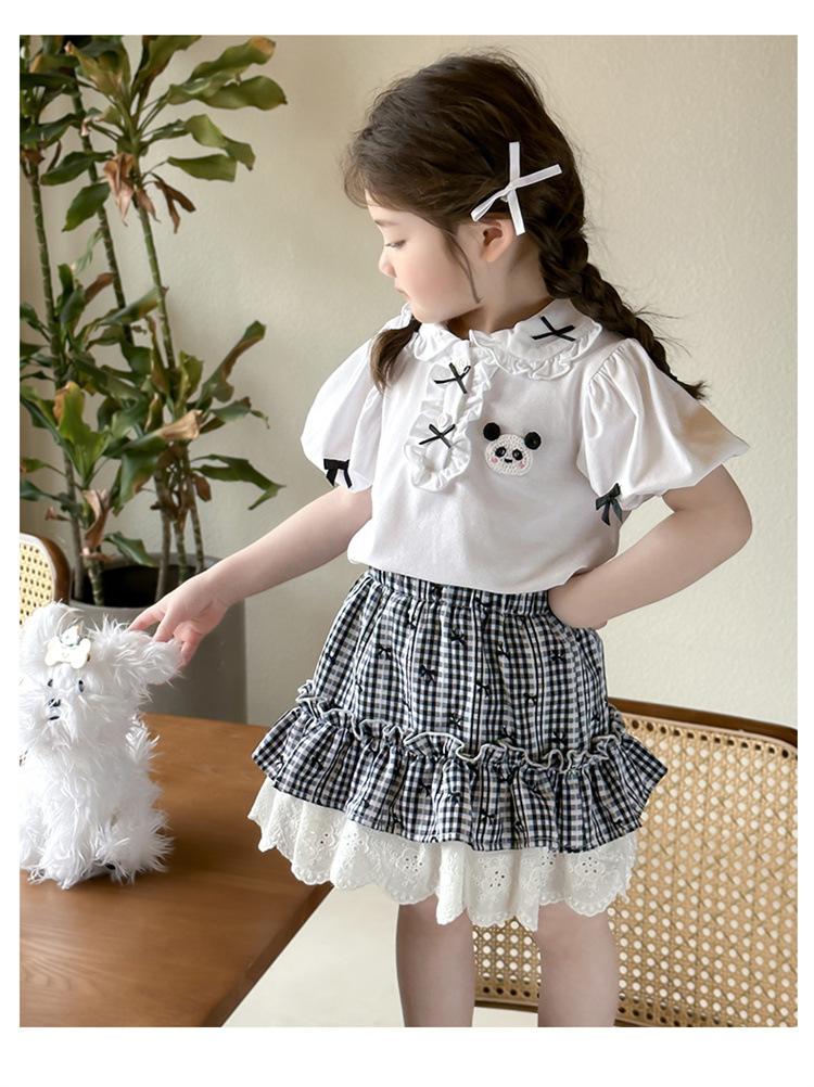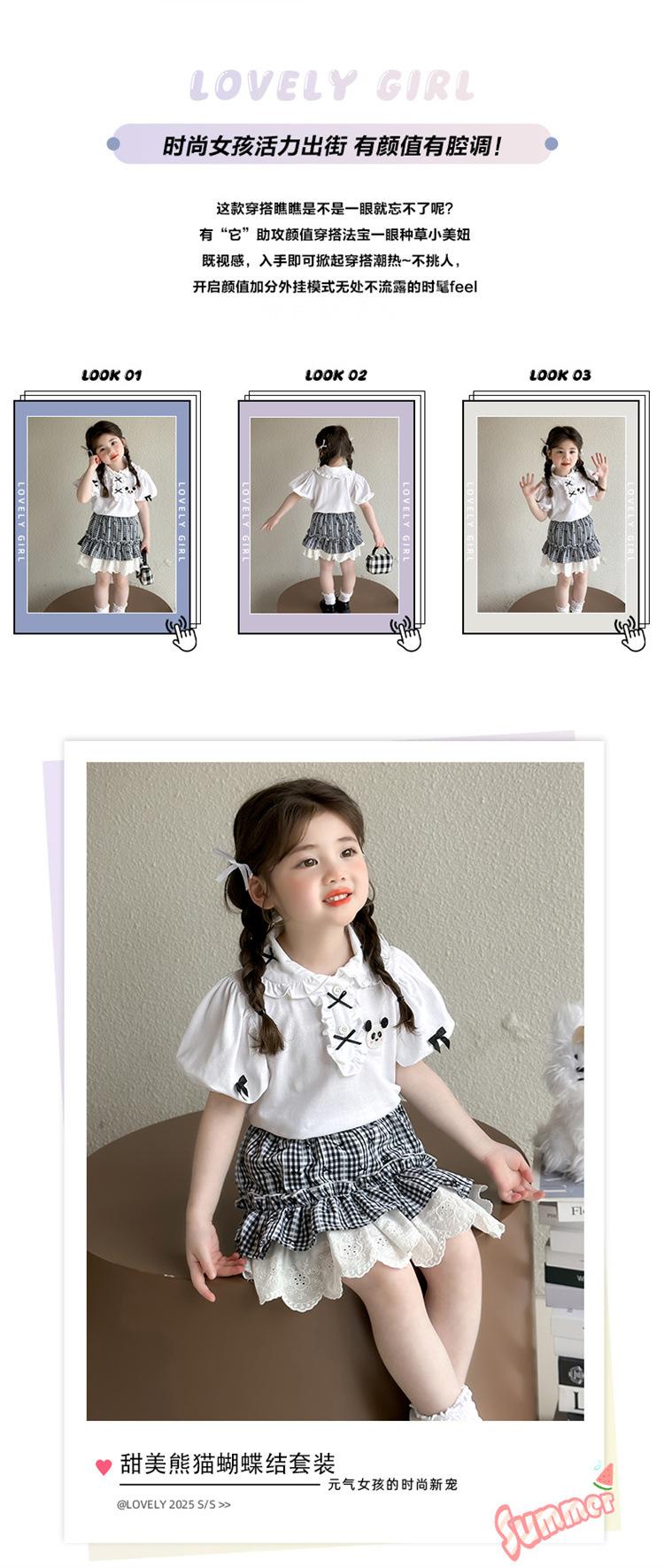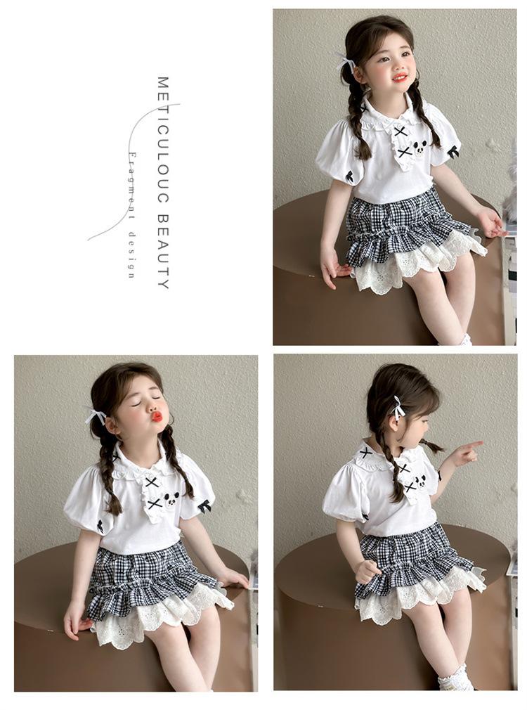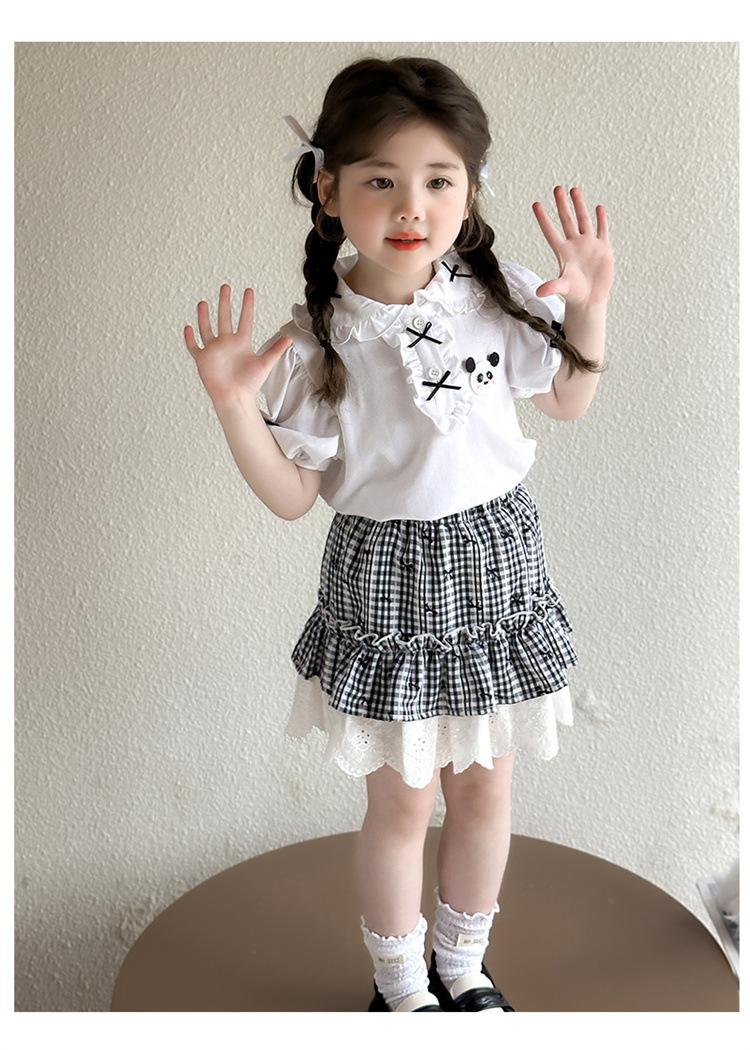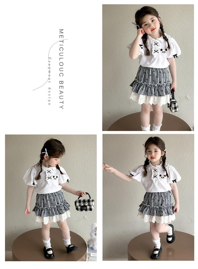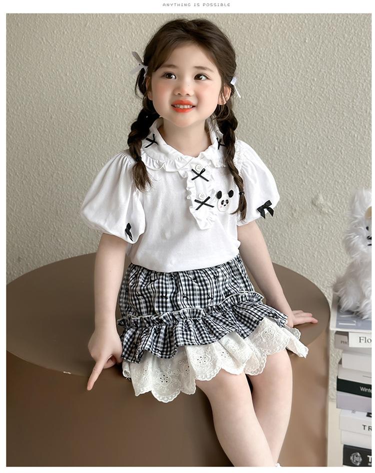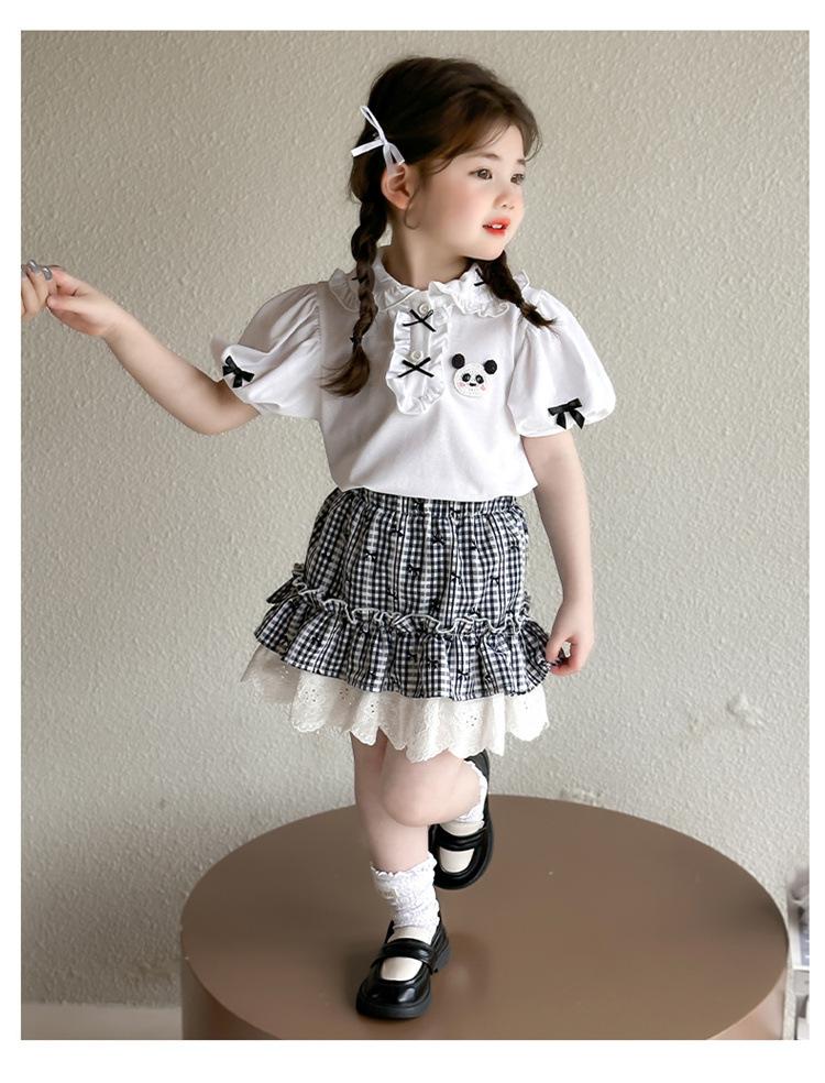 Compra Bebé Niña Verano 2025 Nuevo Estilo Niña Dibujo Animado Panda Lazo Manga Corta Moda Falda a Cuadros Conjunto de Dos Piezas al por mayor en Joom.pro