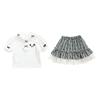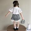 Bebé Niña Verano 2025 Nuevo Estilo Niña Dibujo Animado Panda Lazo Manga Corta Moda Falda a Cuadros Conjunto de Dos Piezas