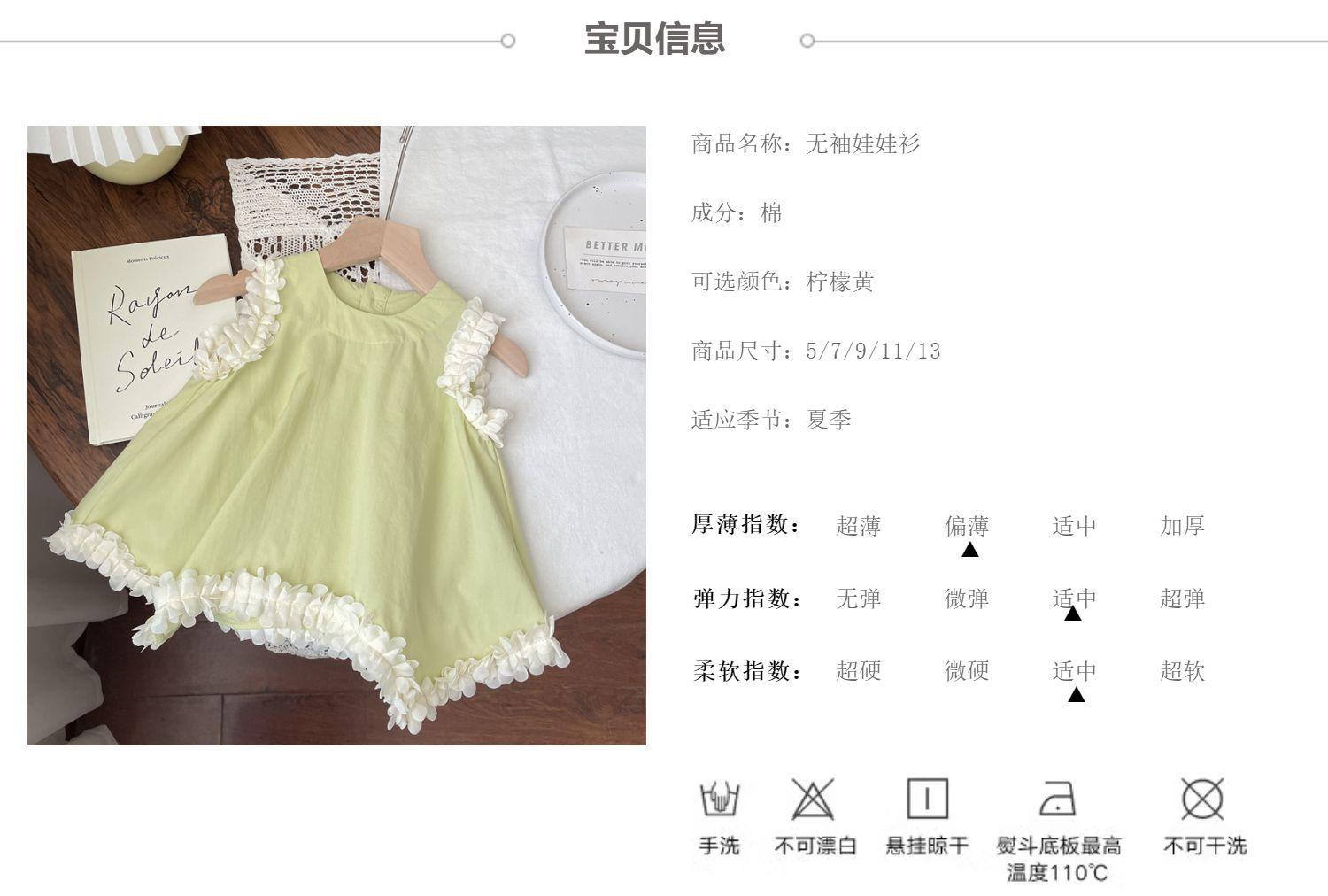 Lemon yellow sleeveless + nine-point pants [suit] 100cm