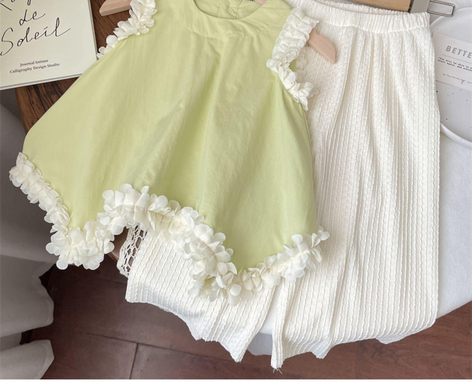 Conjunto de Verano para Niñas 2025 Bebé Estilo Coreano Vestido de Tirantes de Encaje Pantalones de Encaje para Niños Conjunto Irregular de Dos Piezas para Niños Pequeños
