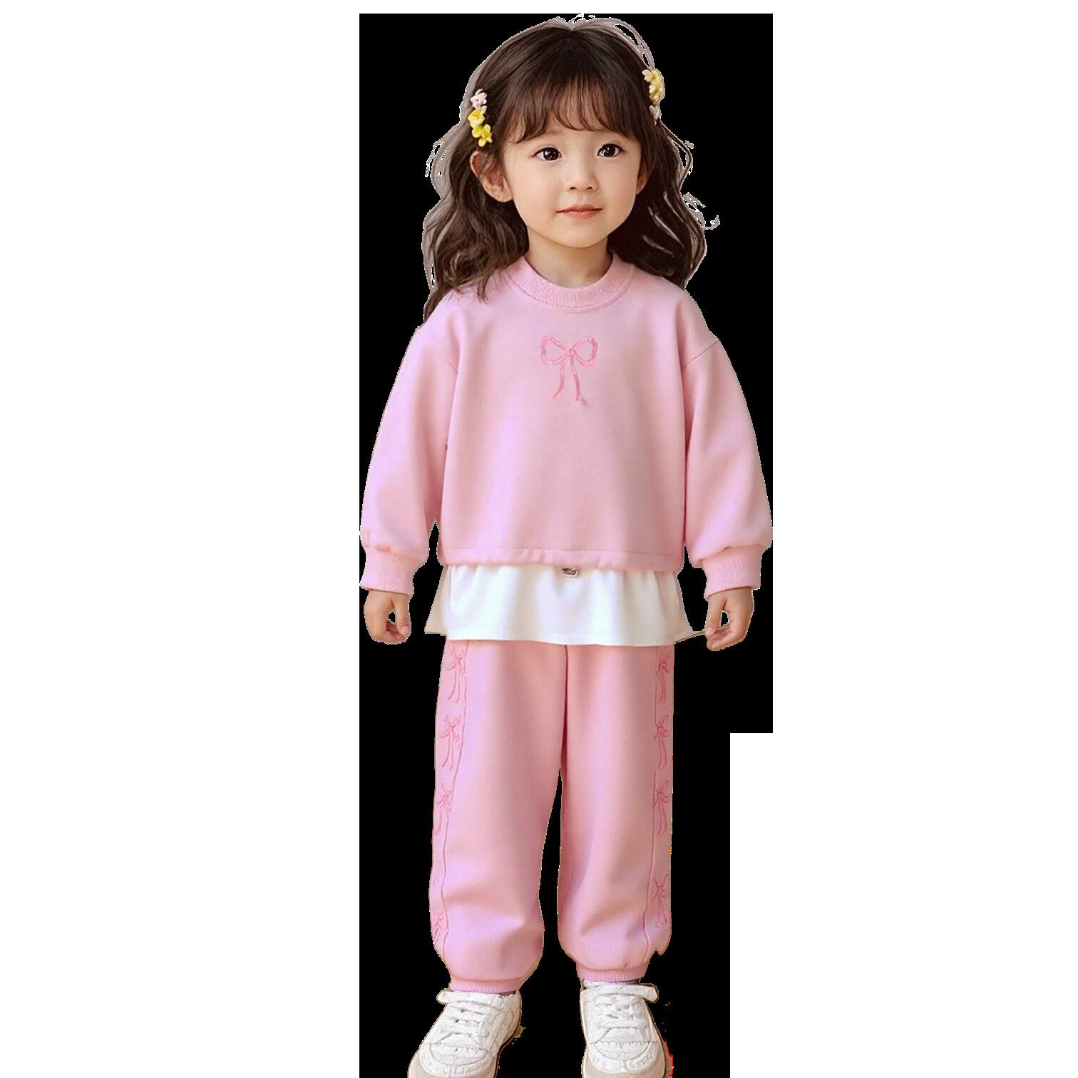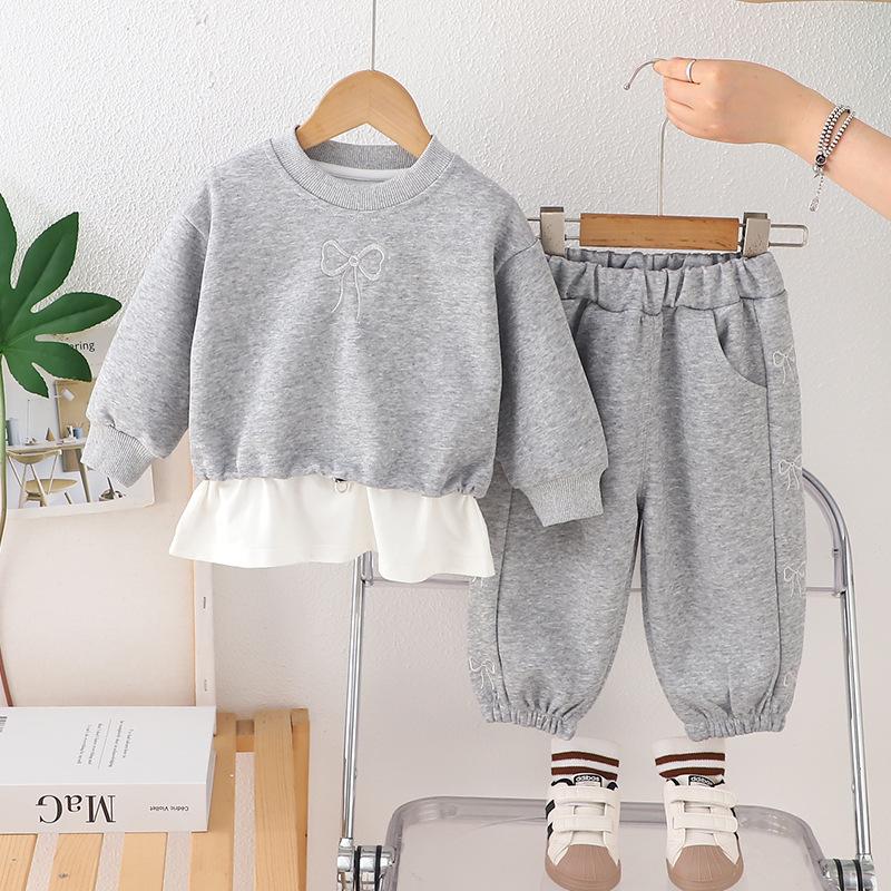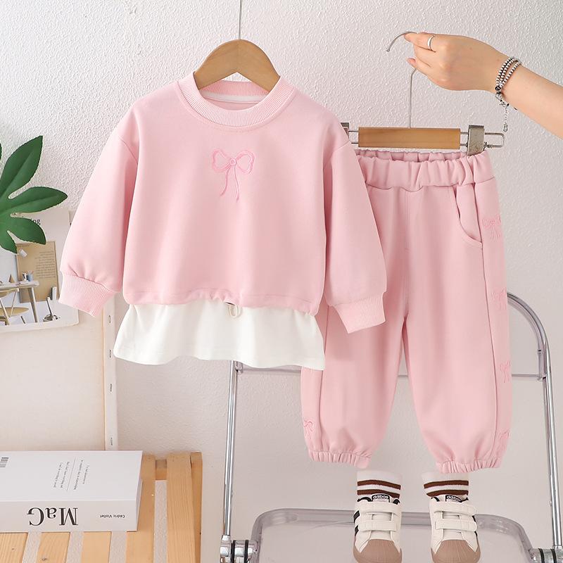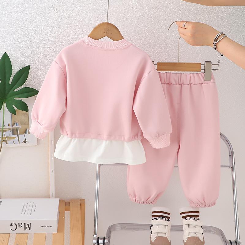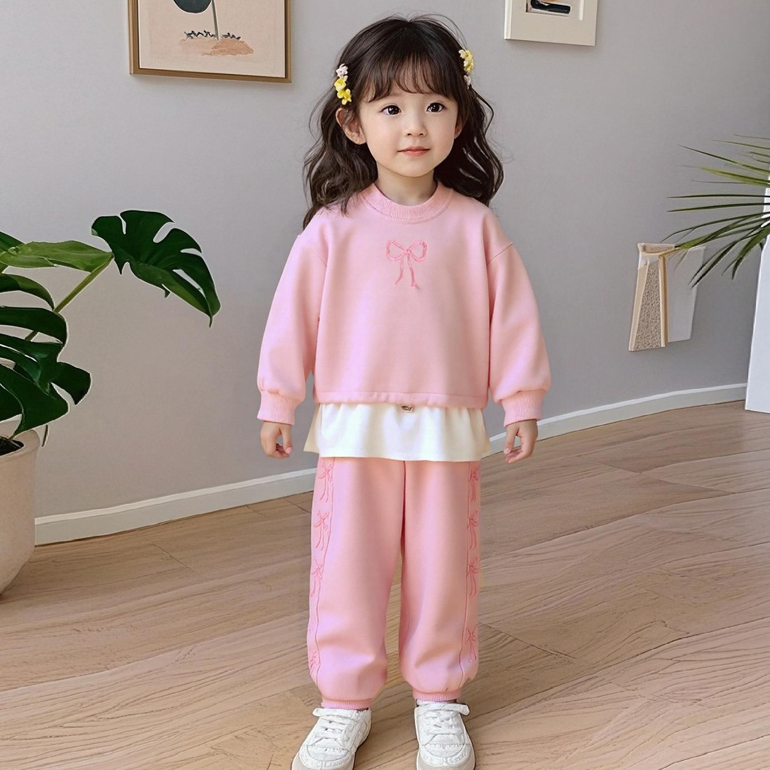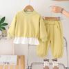 Conjunto de Ropa de Otoño a la Moda para Bebé Niña 2025 Primavera y Otoño Nuevo Estilo Sudadera de Cuello Redondo de Dos Piezas para Bebé Niña Ropa para Niños Pequeños