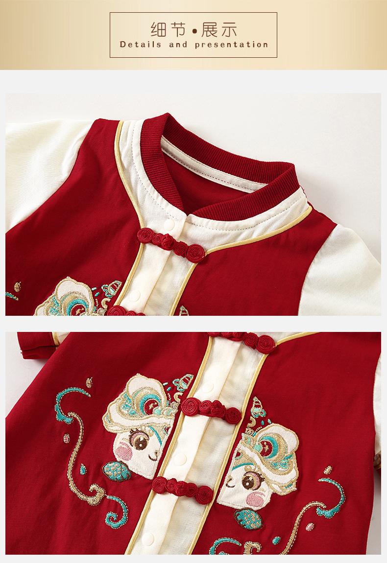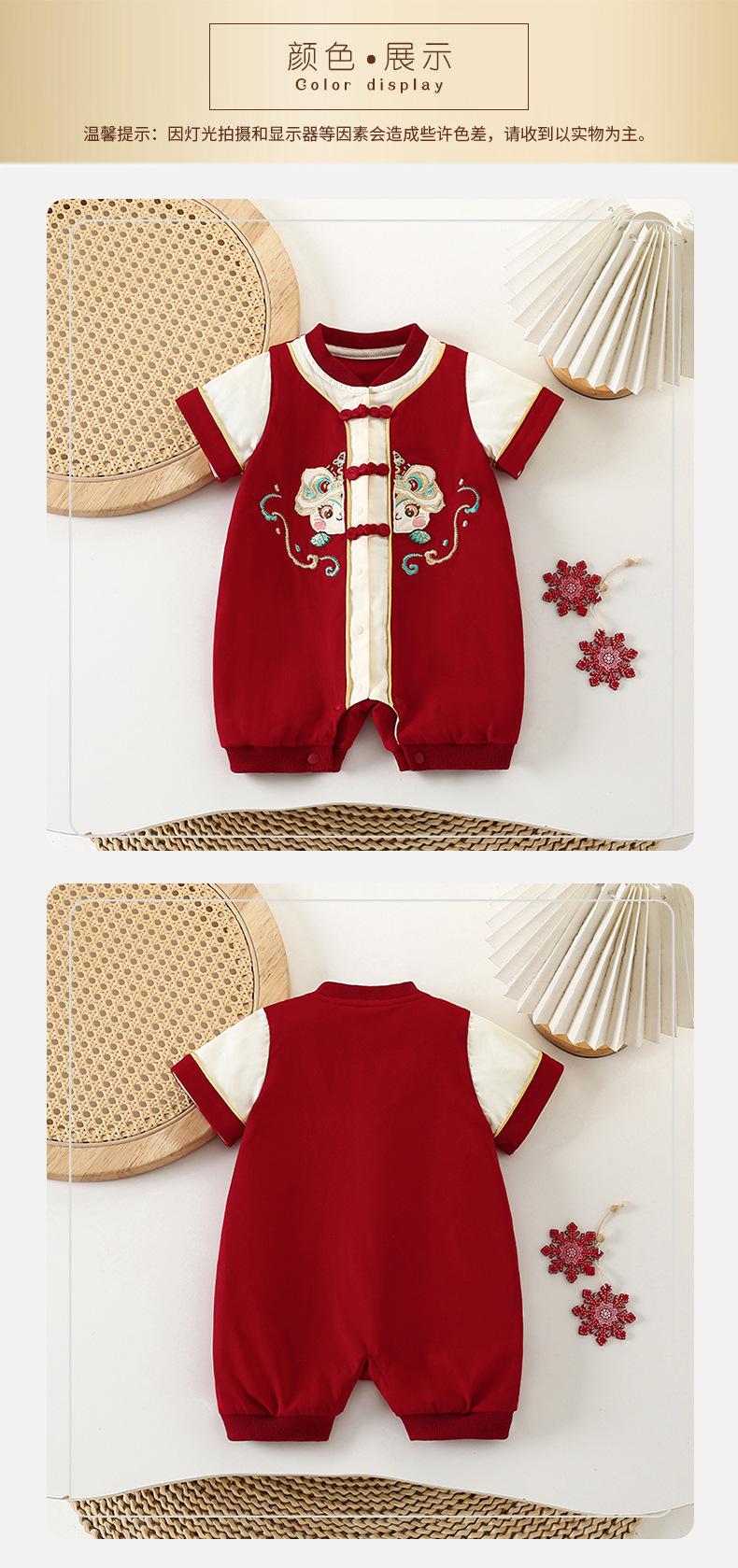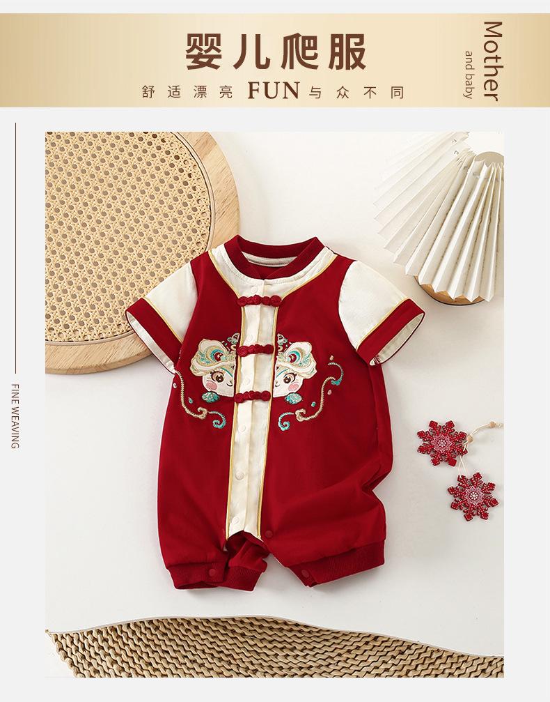 Verano Nuevo Pelele para Bebé Estilo Chino Estilo Nacional Vestido de Luna Llena Cien Días Manga Corta Onesie Traje para Gatear