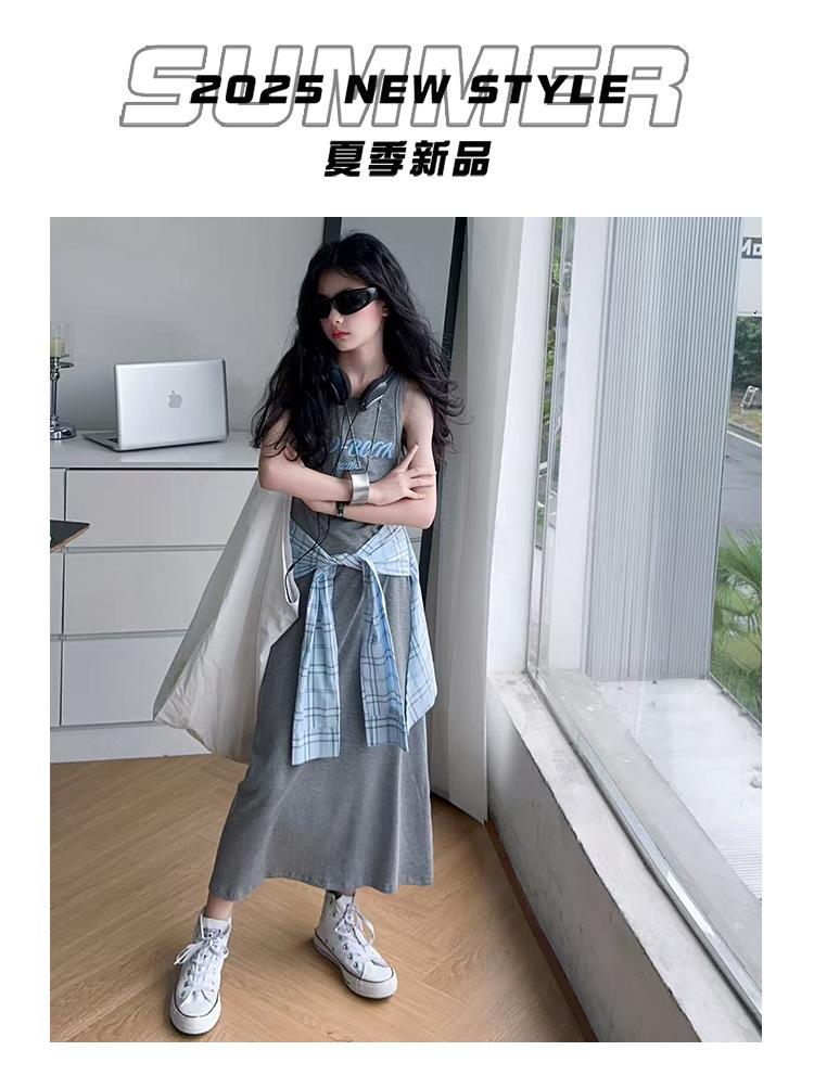Vestido de Verano para Niñas 2025 Nueva Falda de Moda para Niños Falda Chaleco de Vacaciones de Verano para Niñas a la Moda