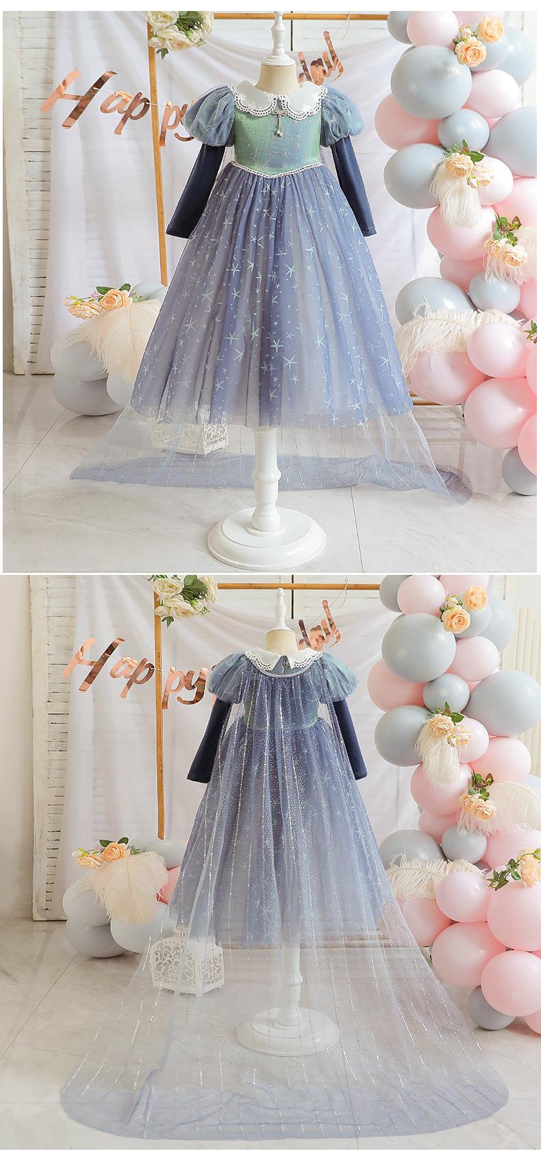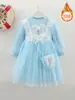 Vestido de Princesa Elsa de Hielo y Nieve Original para Niñas 2022 Otoño e Invierno Vestido de Terciopelo Vestido Elegante para el Primer Cumpleaños de Niña