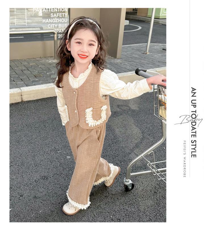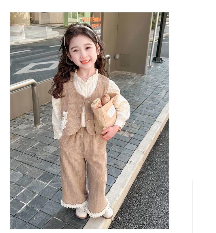 Conjunto de Primavera y Otoño para Niñas 2025 Nuevo Trendy Otoño Moda Infantil Camisa para Bebé Niña Conjunto de Tres Piezas Ropa de Otoño Casual