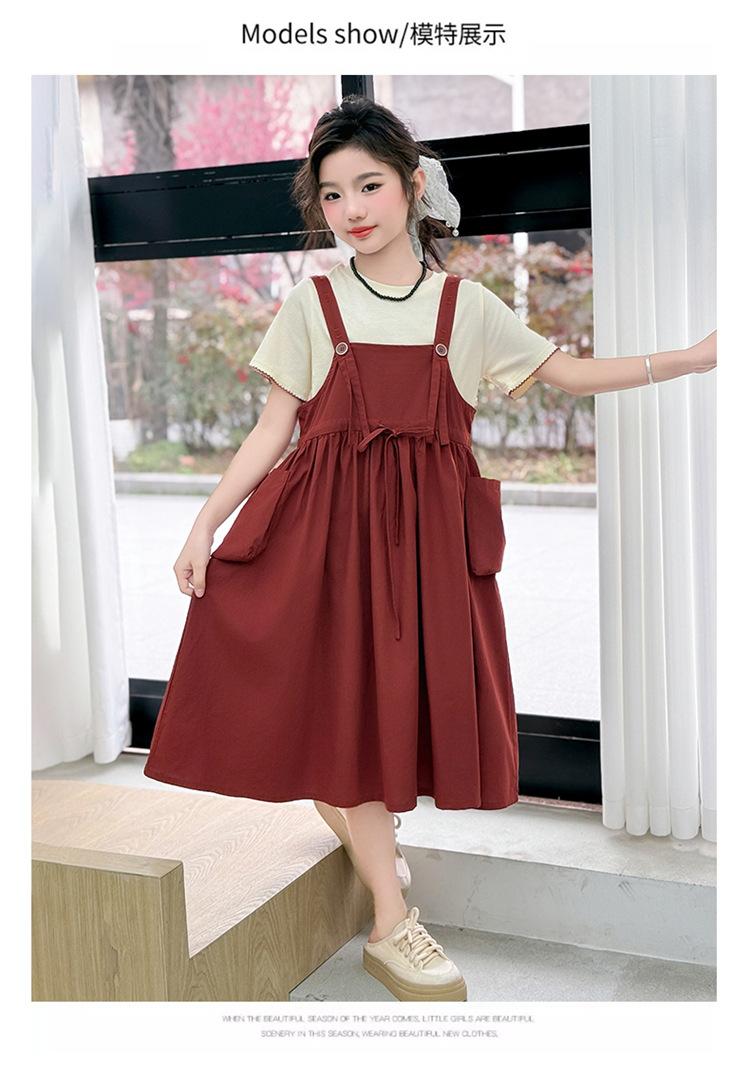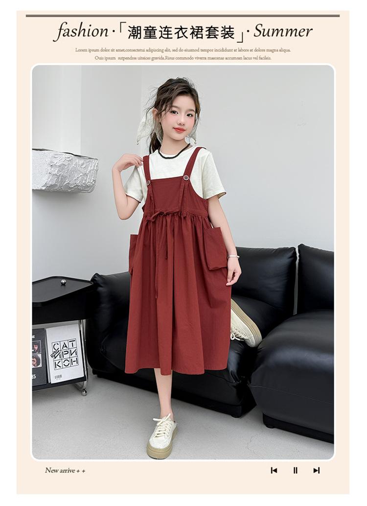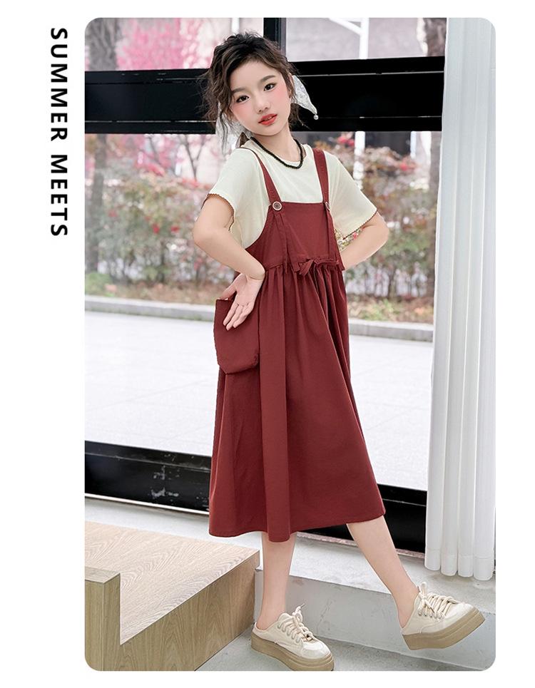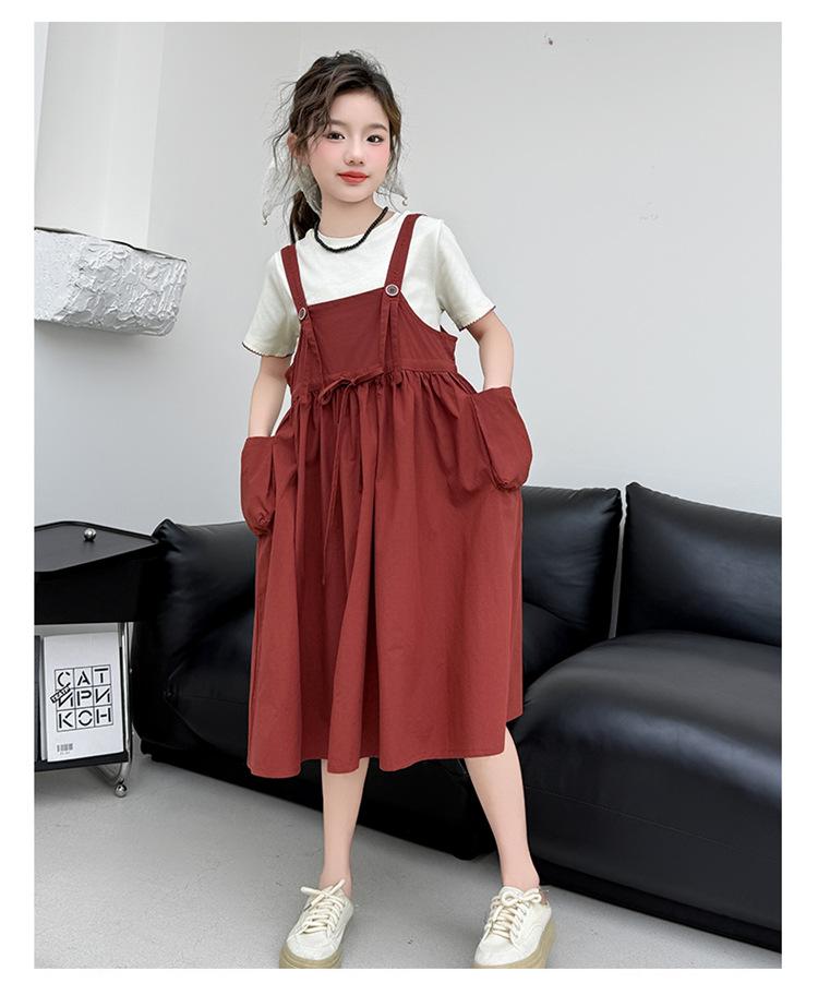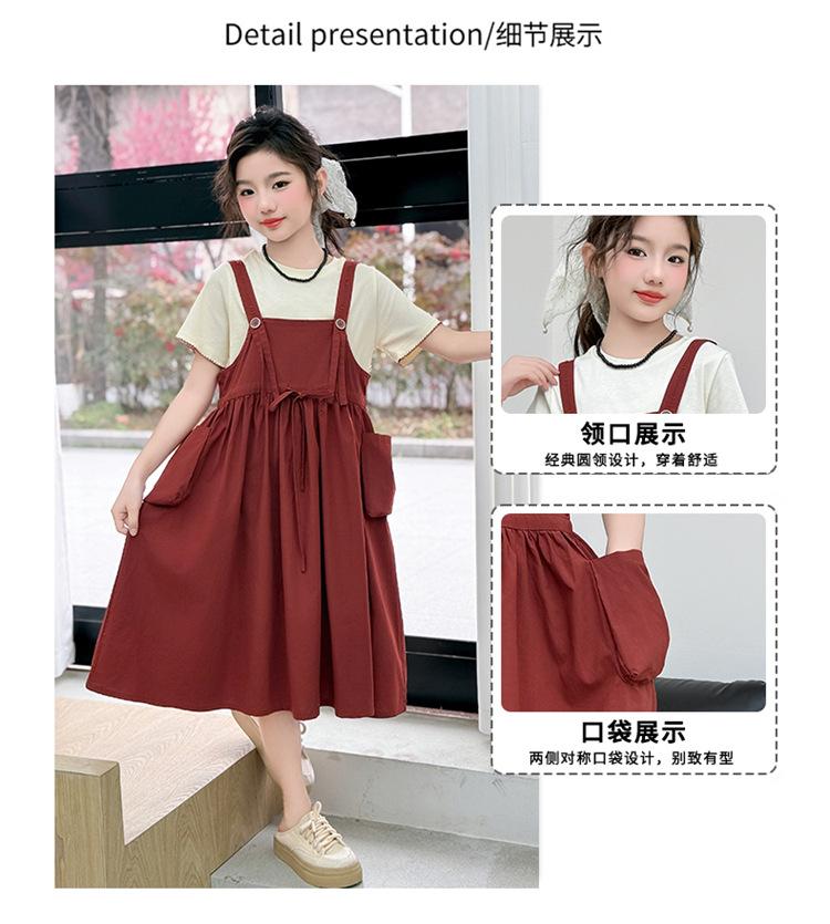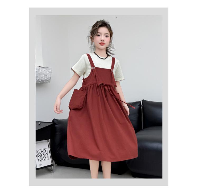 Vestido de niña 2025 Nuevo Verano Niños Elegante Moda Falda de Hebra Traje de Falda Casual para Niños Grandes.