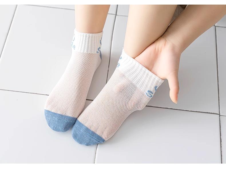 Calcetines de verano finos de algodón para niños, calcetines de malla para niños pequeños y medianos, calcetines de estudiante de dibujos animados para niños, calcetines cortos de algodón de verano para bebé
