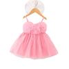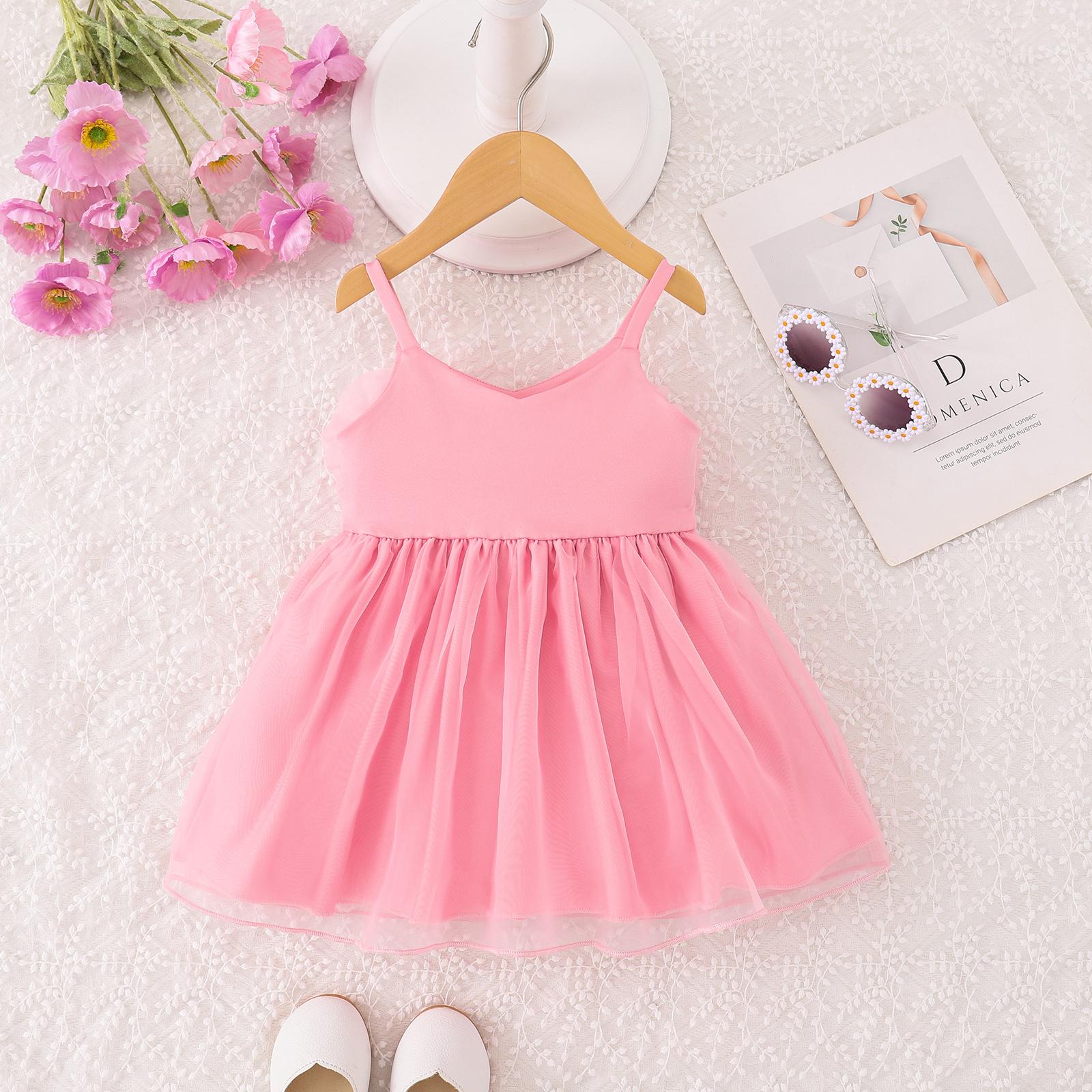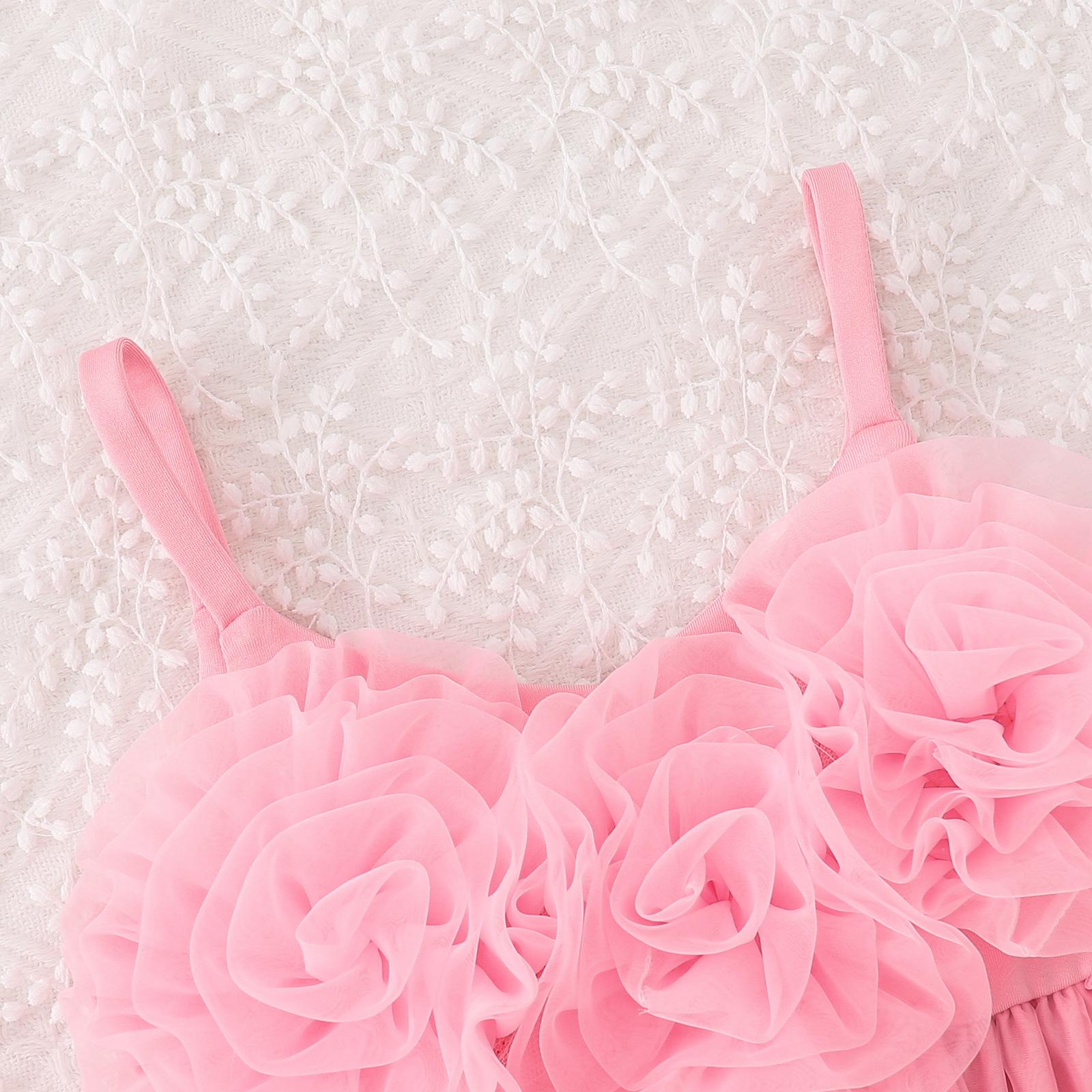 Vestidos de Verano Europeos y Americanos Transfronterizos Lindos Rosados para Niñas Vestido de Malla con Tirantes de Flores para Bebé Vestido de Princesa