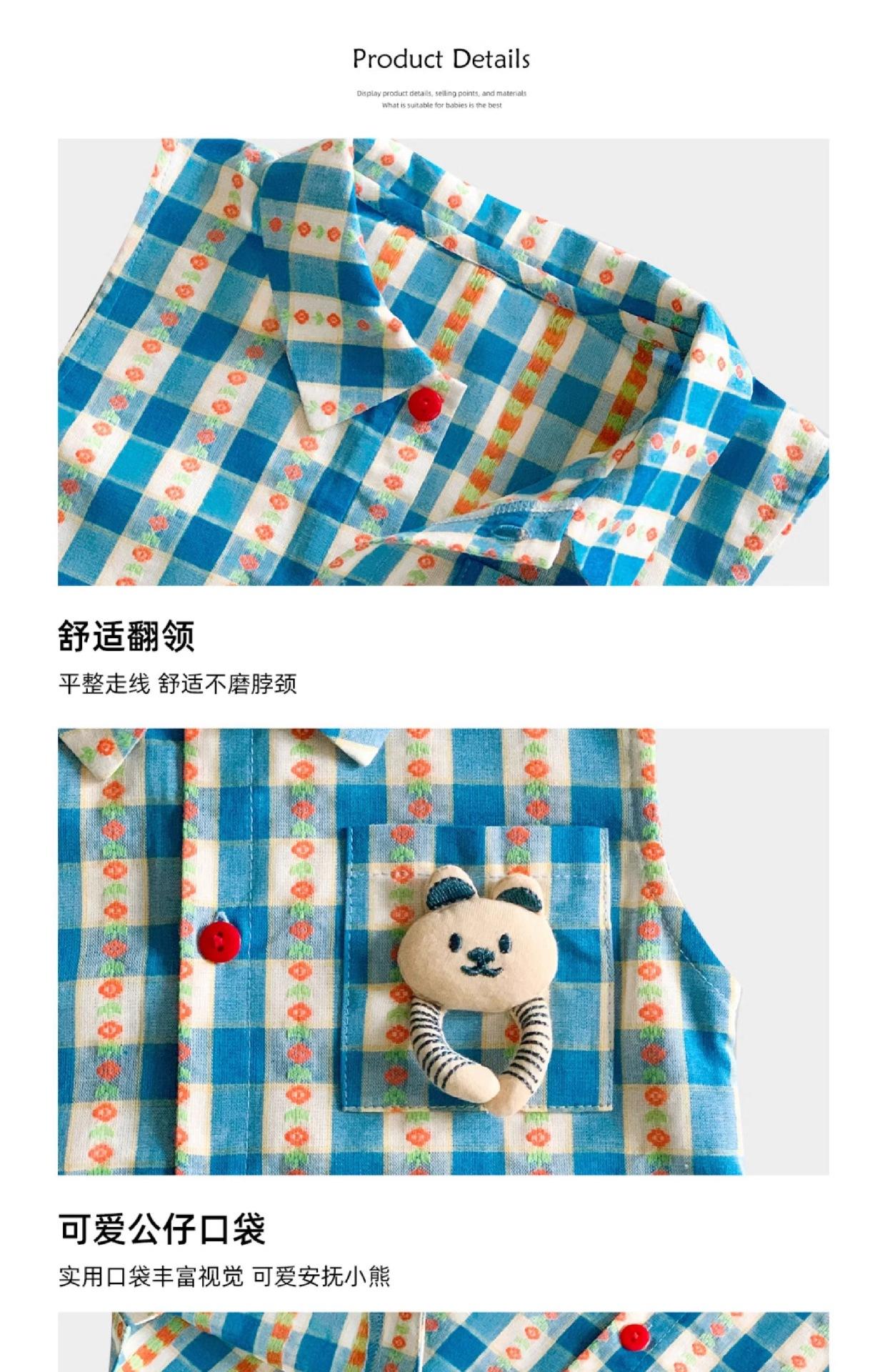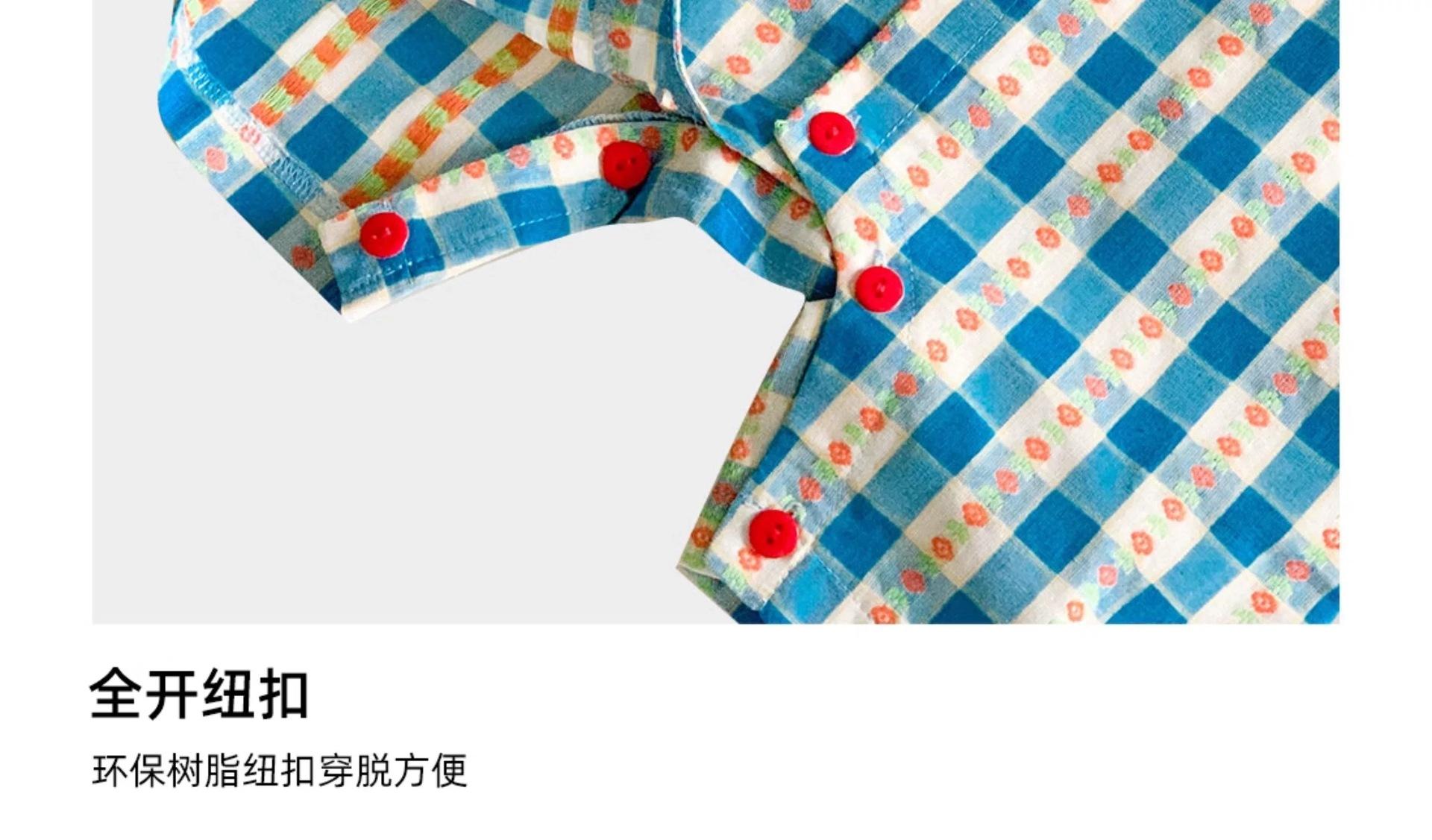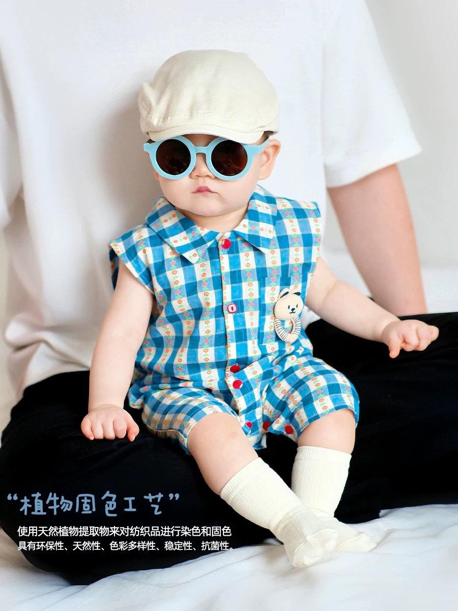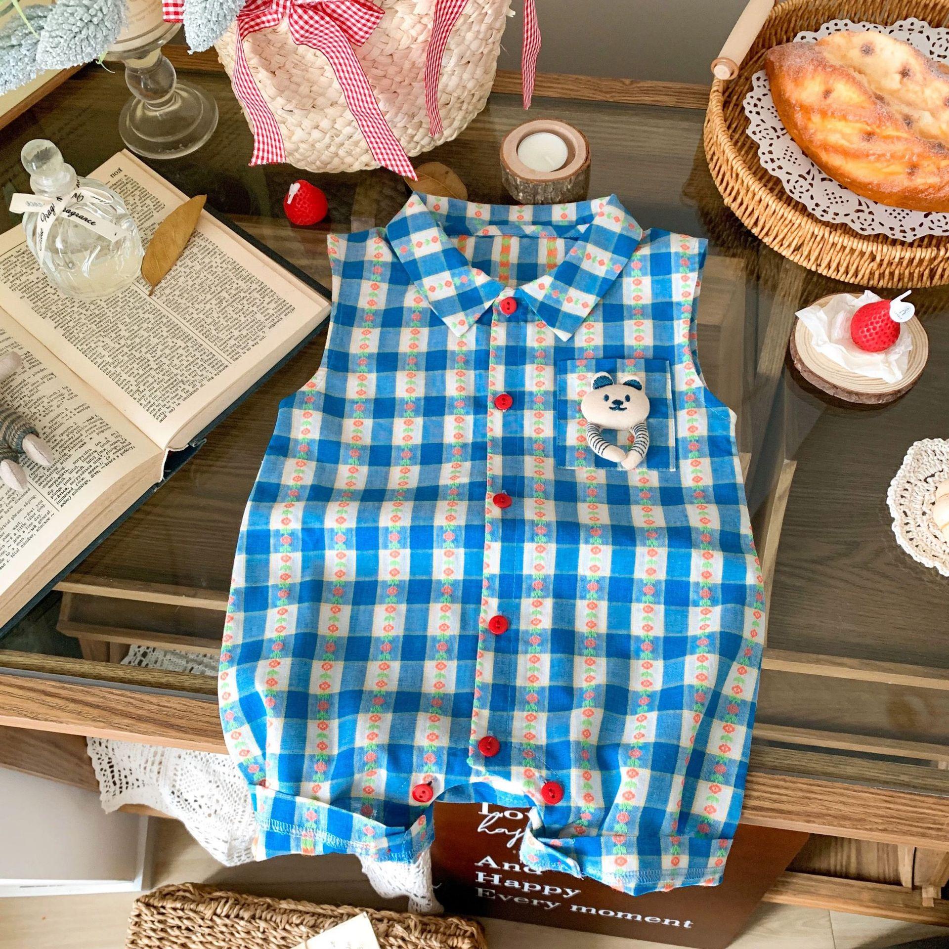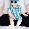 Ropa de Bebé Verano Delgada Cuadros Azules Mameluco Sin Mangas Pelele Infantil Mameluco para Exterior Estilo Coreano