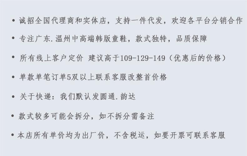 Apoyar el envío directo, centrarse en la venta al por mayor de zapatos para niños en Guangdong y Wenzhou, y proporcionar suministro para plataformas de comercio electrónico como Taobao y Tmall;