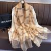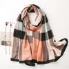 Bufanda Coreana Bufanda de Seda Mujer Otoño Invierno Cálida Bufanda de Cuadros Británicos Versión Coreana Bufanda de Gasa Doble Uso Protector Solar Toalla de Playa Chal