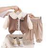Conjunto de Otoño para Niñas 2025 Nuevo Trendy Ropa para Niños Chaleco de Encaje Suéter Bebé Primavera Otoño Conjunto de Tres Piezas