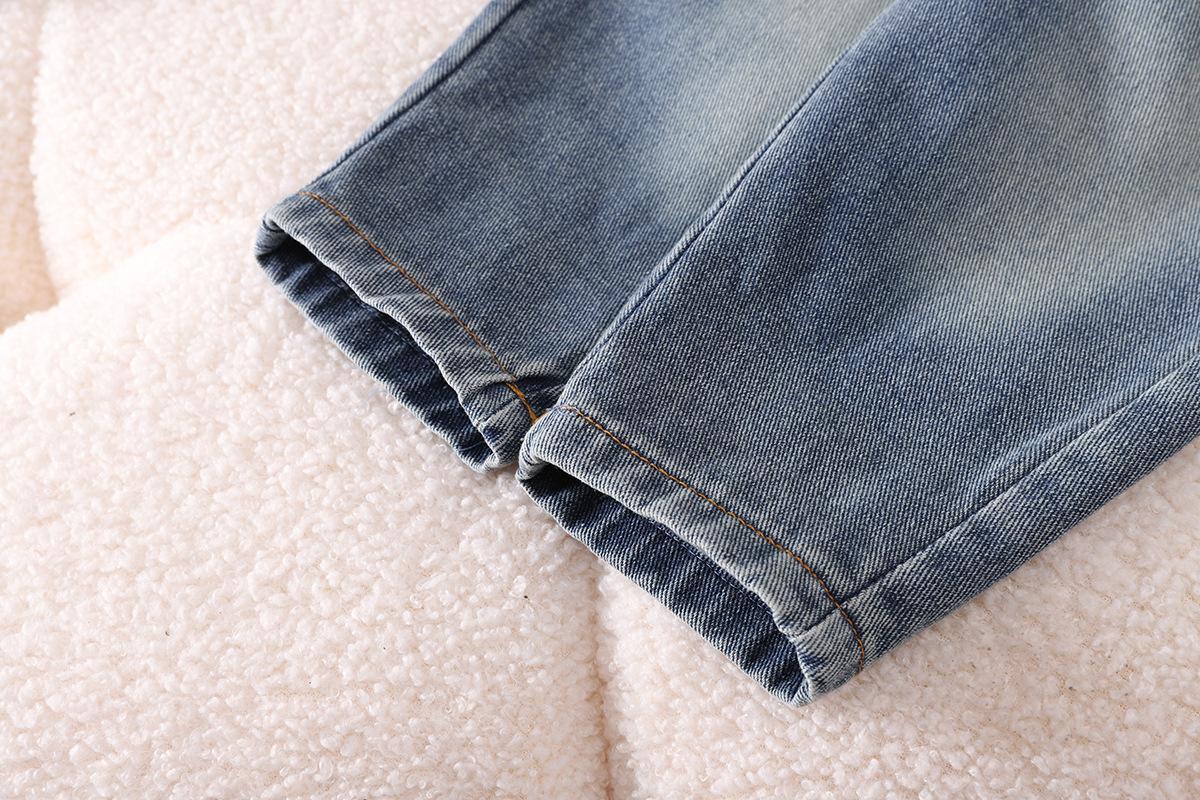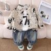 Light khaki color all-over printed a letter denim shirt long-sleeved three-piece set