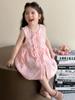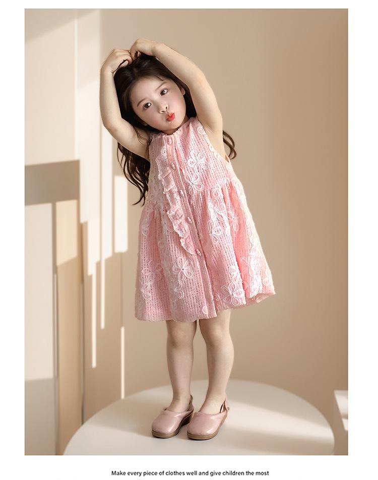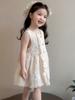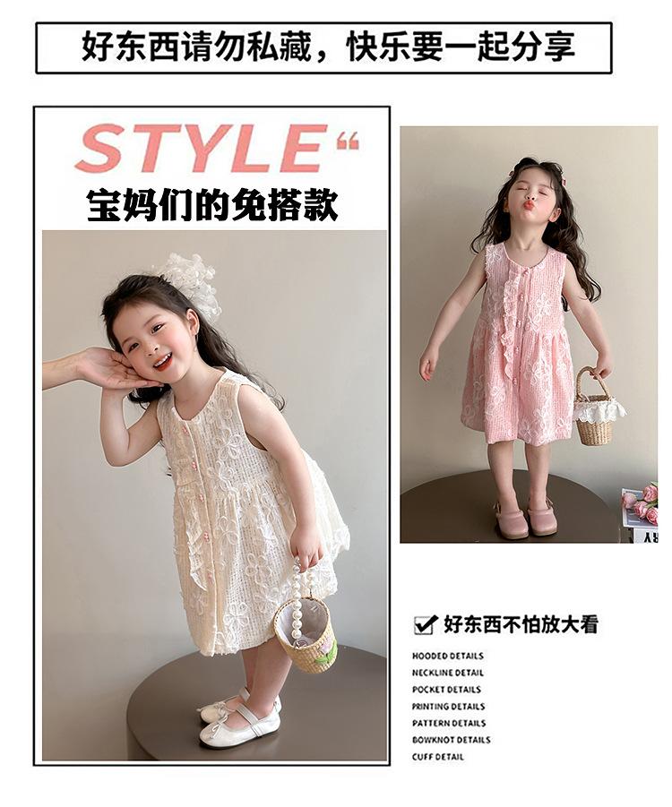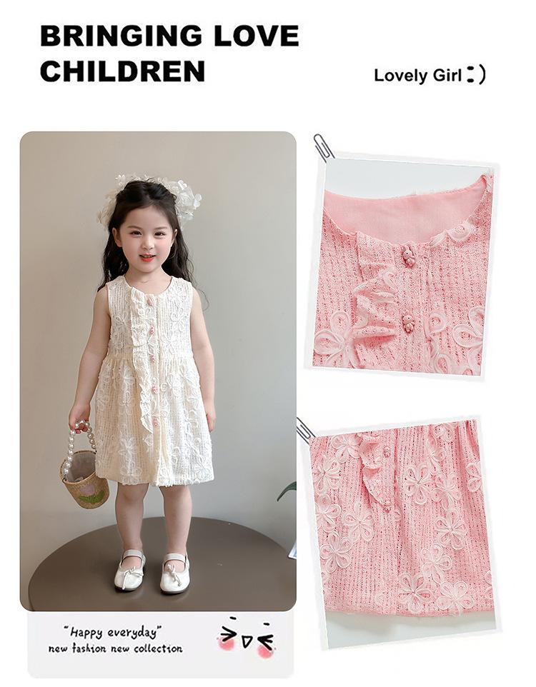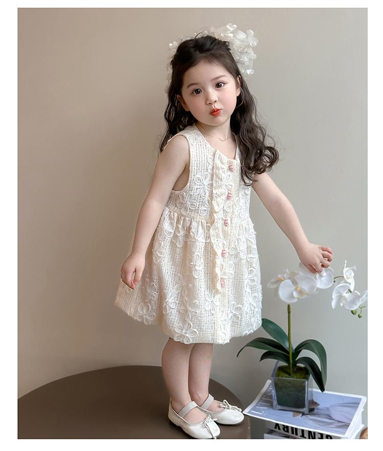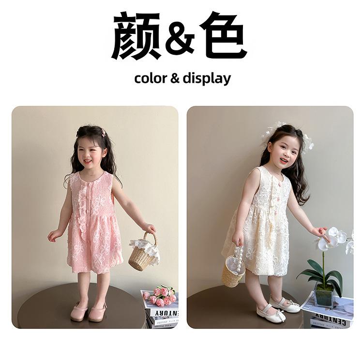 Vestido de encaje crochet para niña 2025 Verano Nuevo Vestido sin mangas para niños Vestido línea A Vestido Vipper para niña