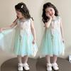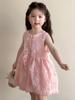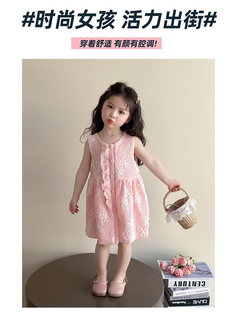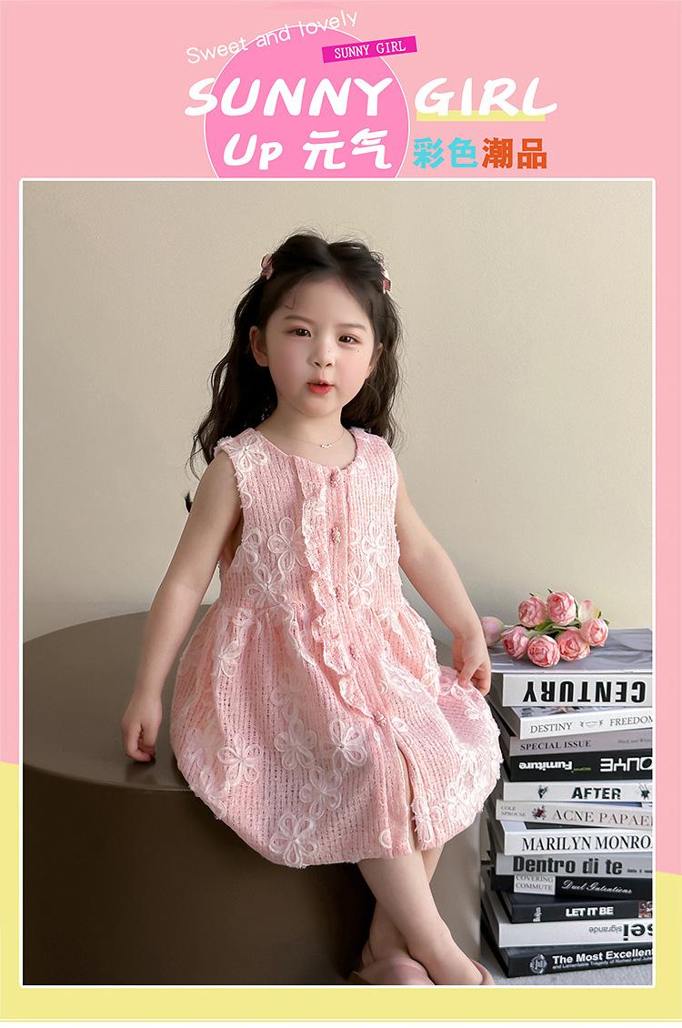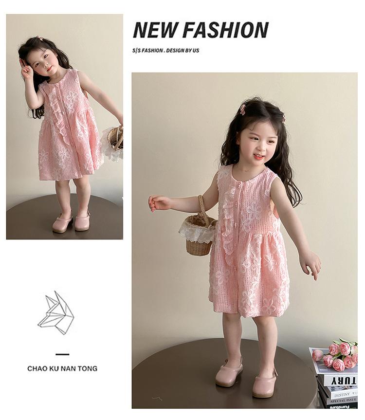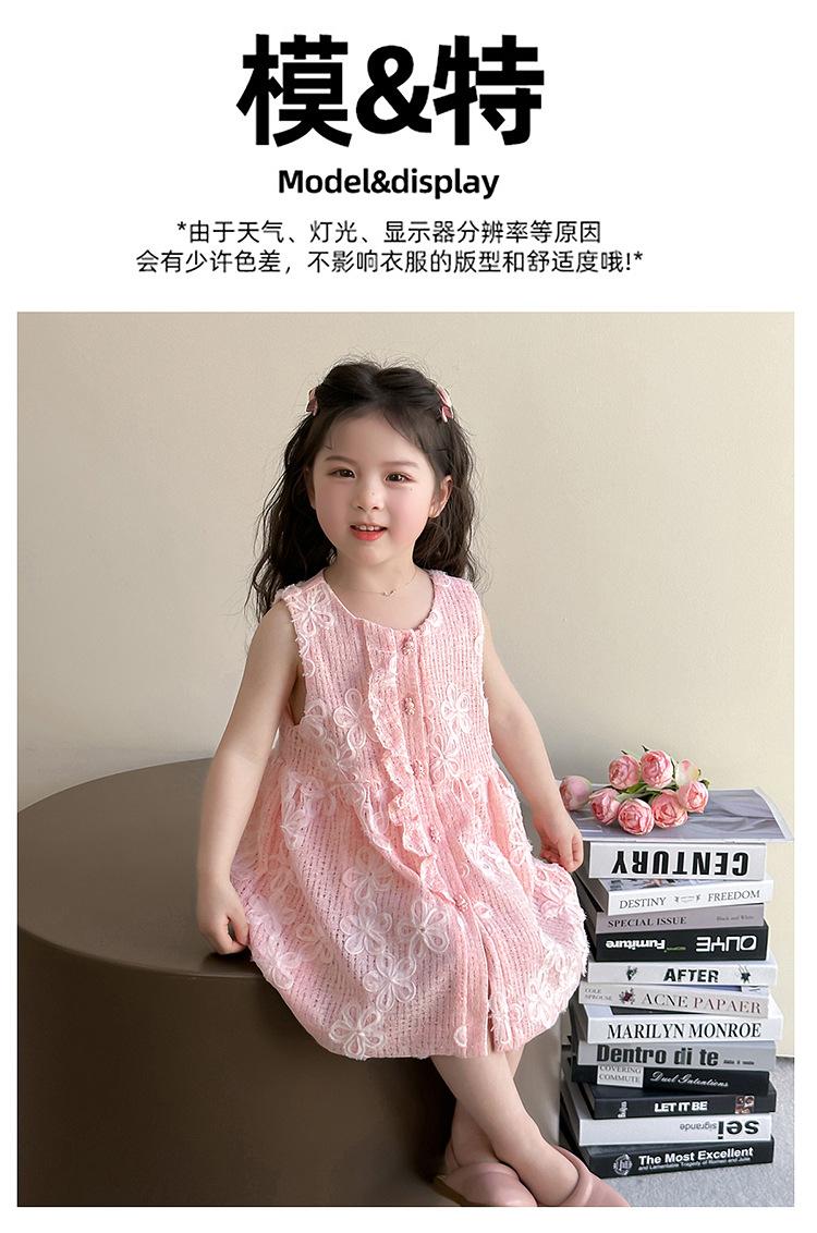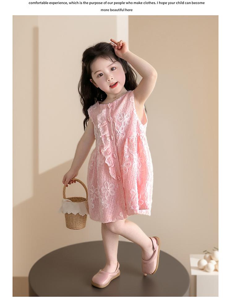Vestido de encaje crochet para niña 2025 Verano Nuevo Vestido sin mangas para niños Vestido línea A Vestido Vipper para niña