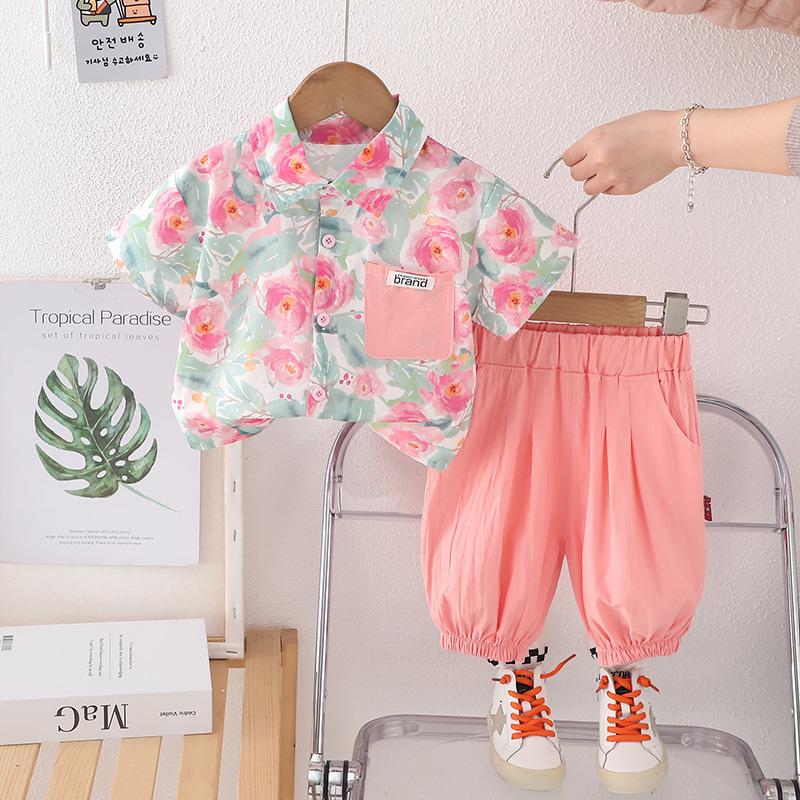 Camisa Floral de Verano para Niños 2025, Traje de Moda de Manga Corta para Bebé Niña, Conjunto Moderno de Dos Piezas de Ropa de Verano para Niños