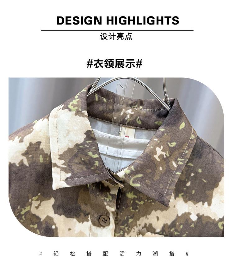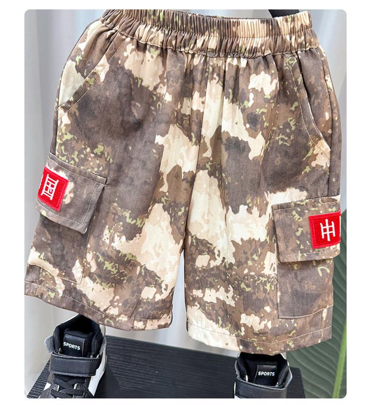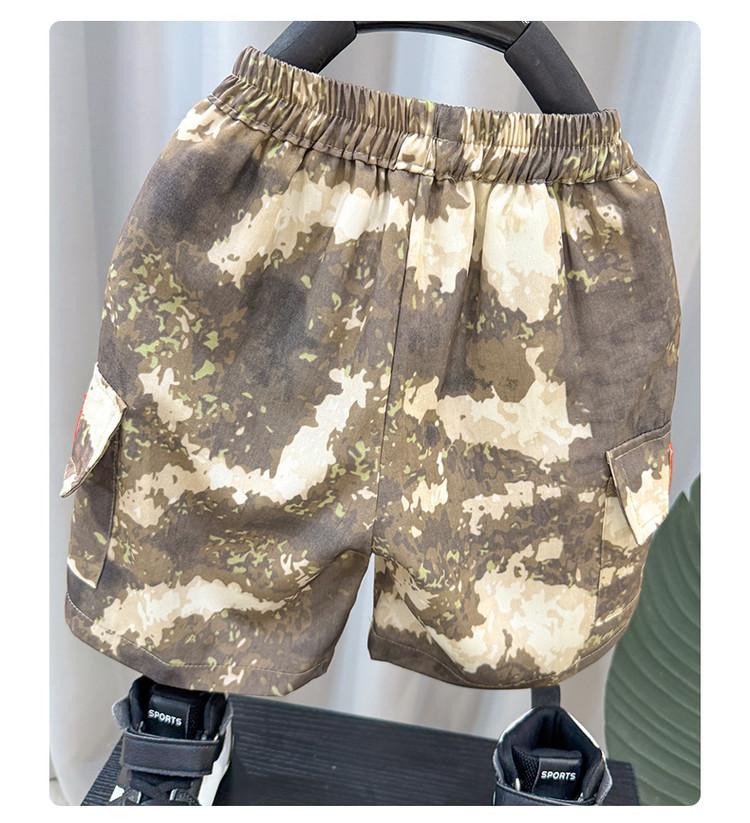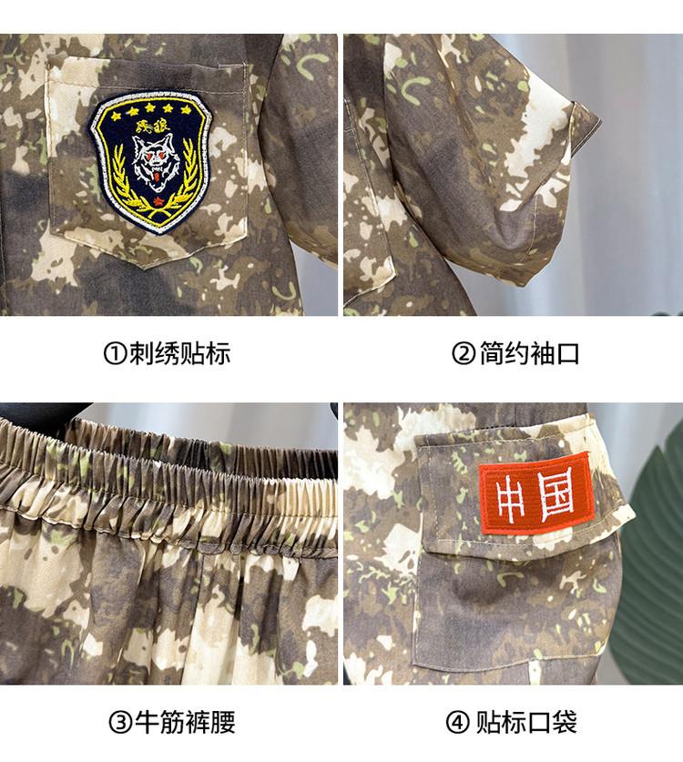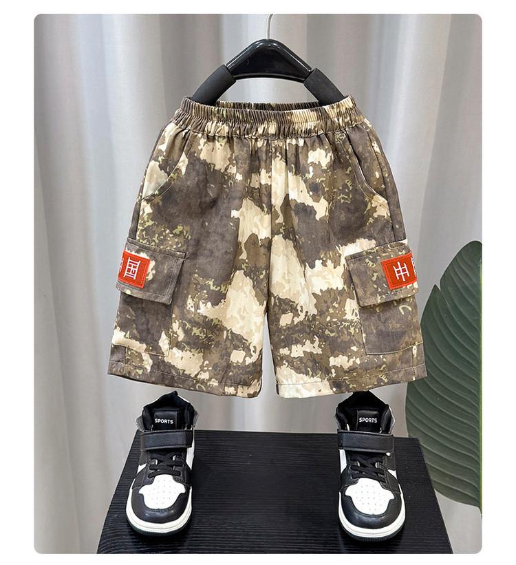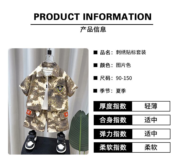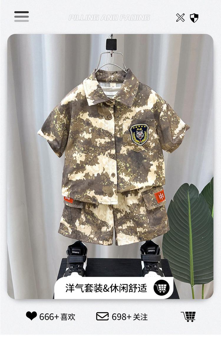 Traje para niño Verano 2025 Nuevo Fresco Guapo Camuflaje para niños Conjunto de dos piezas de manga corta Ropa de camisa de verano para niño