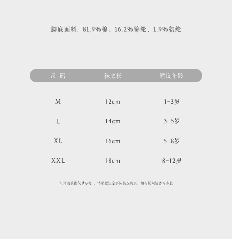 M suitable for socks for 1-3 years old (bottom length 12cm)