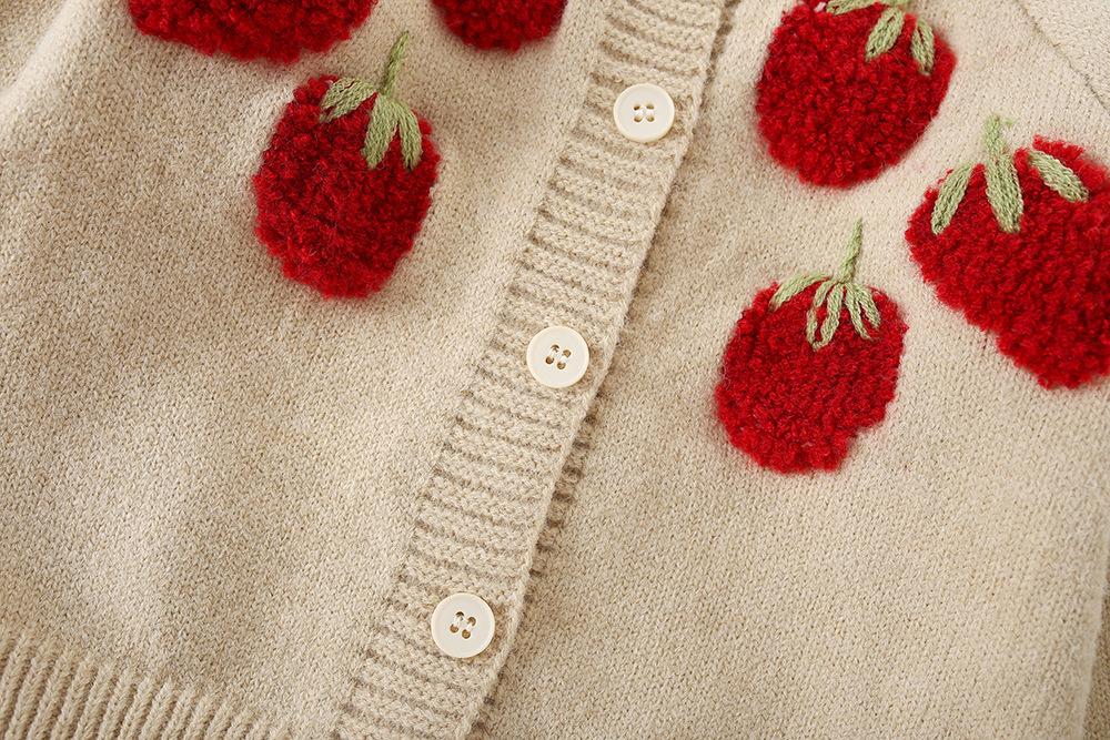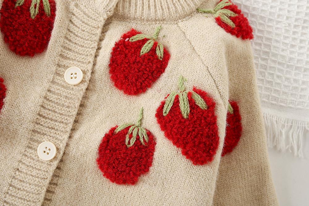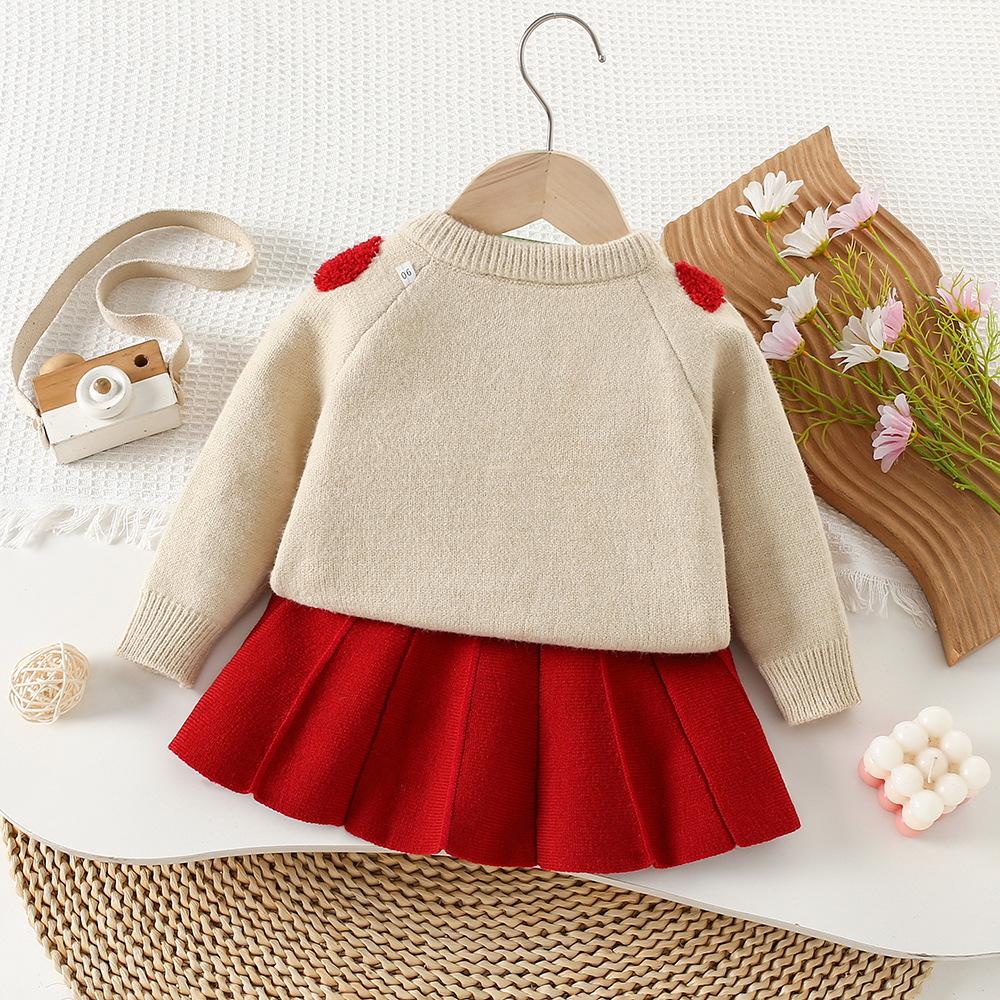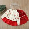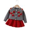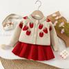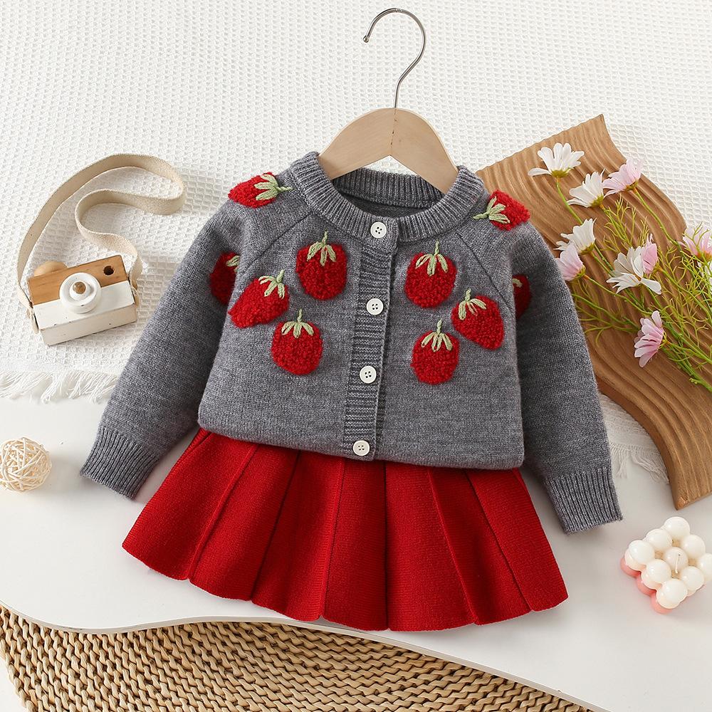 Conjunto de Suéter para Niñas Otoño e Invierno Nuevo Estilo Bebé Niña Fresa Tejido Traje de Falda Estilo Coreano Moderno Cárdigan de Manga Larga Tendencia Infantil