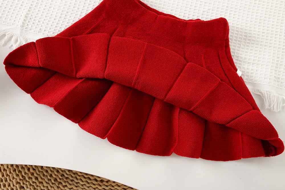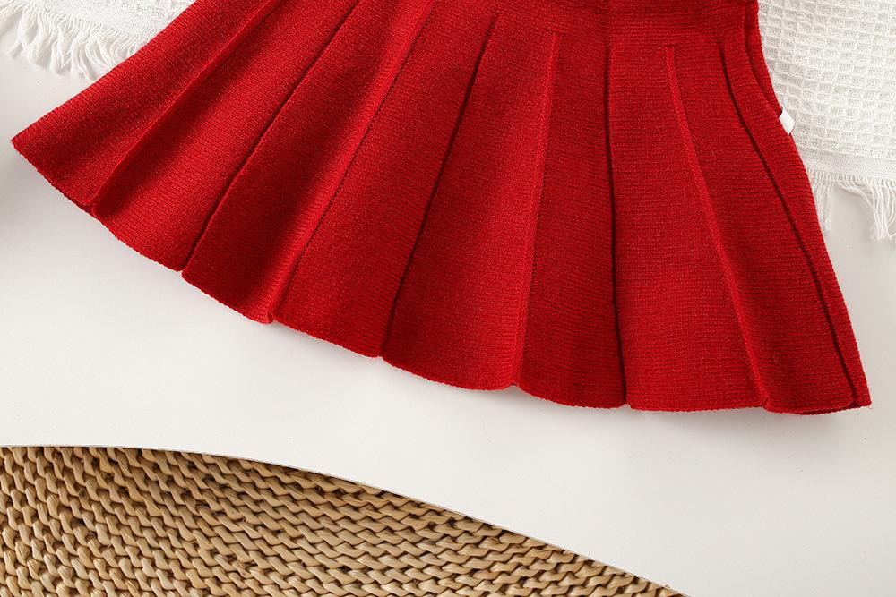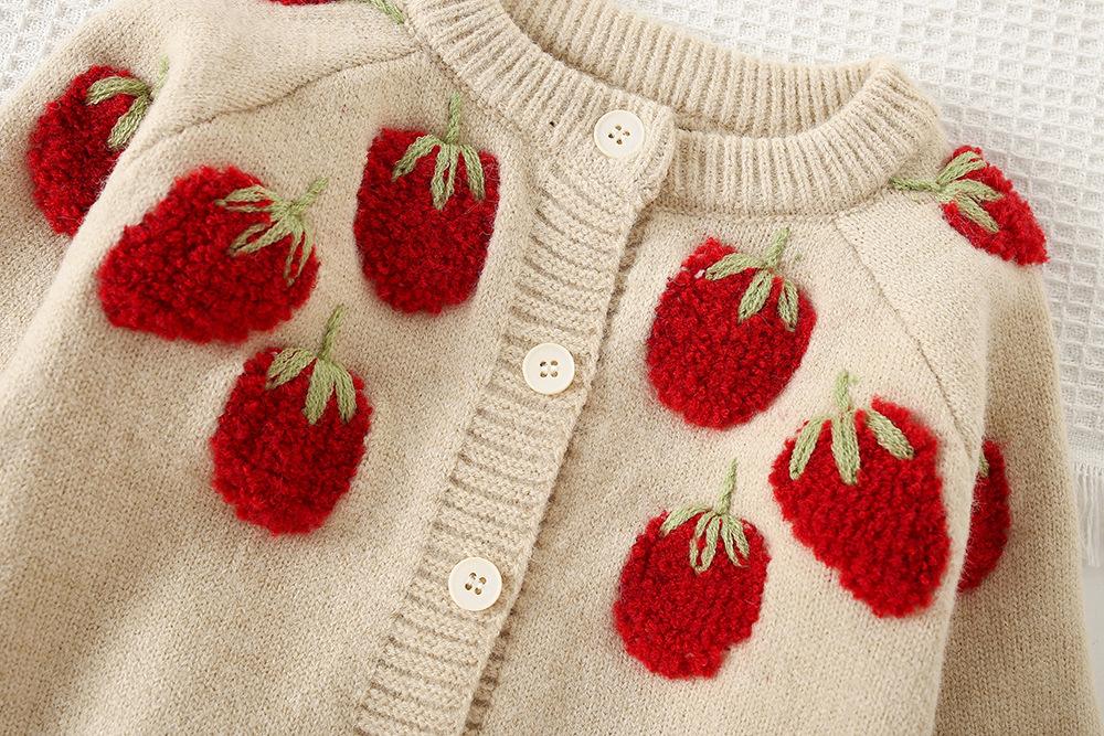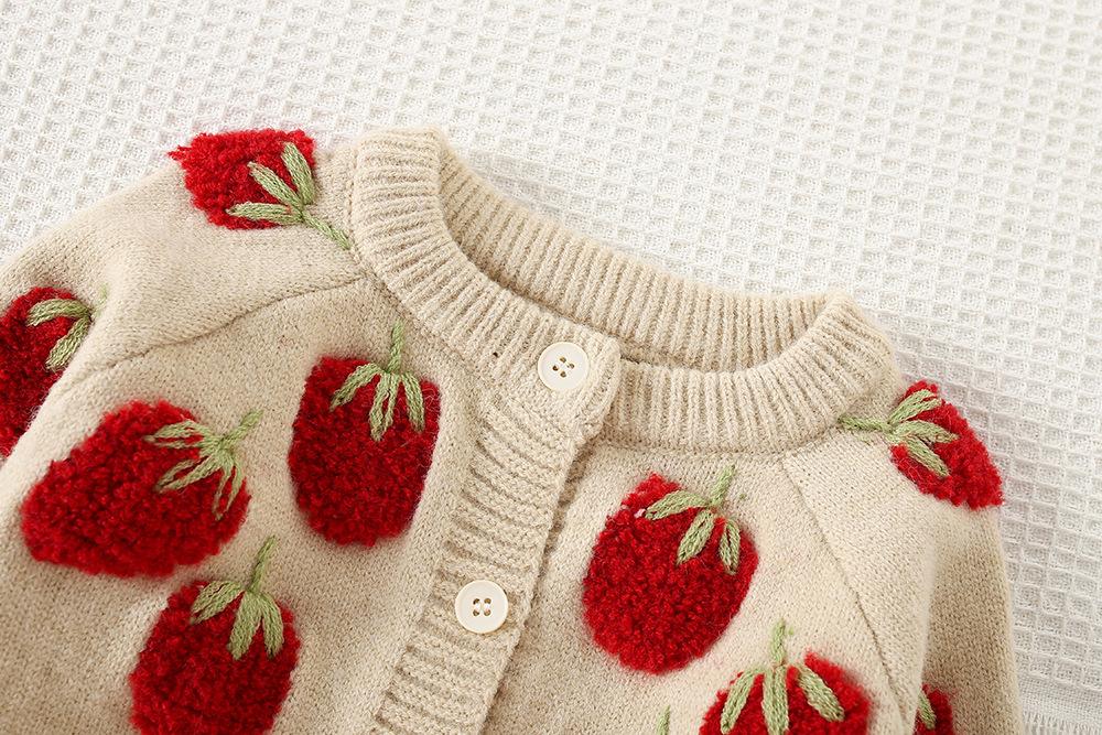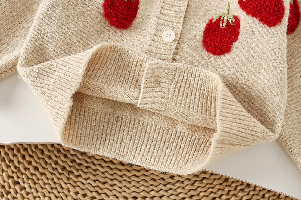 Conjunto de Suéter para Niñas Otoño e Invierno Nuevo Estilo Bebé Niña Fresa Tejido Traje de Falda Estilo Coreano Moderno Cárdigan de Manga Larga Tendencia Infantil