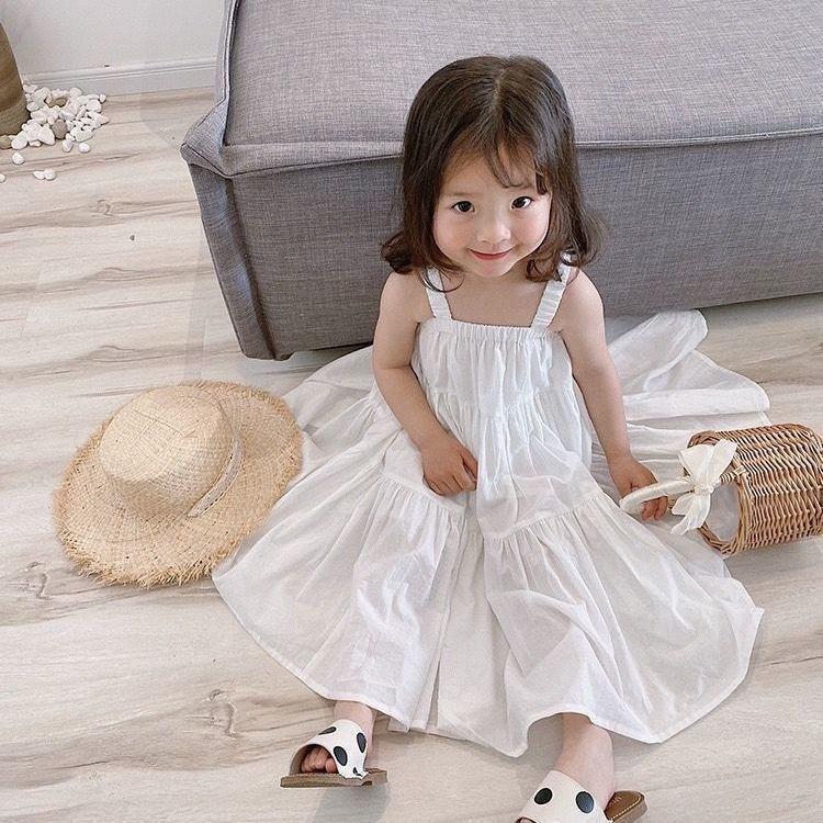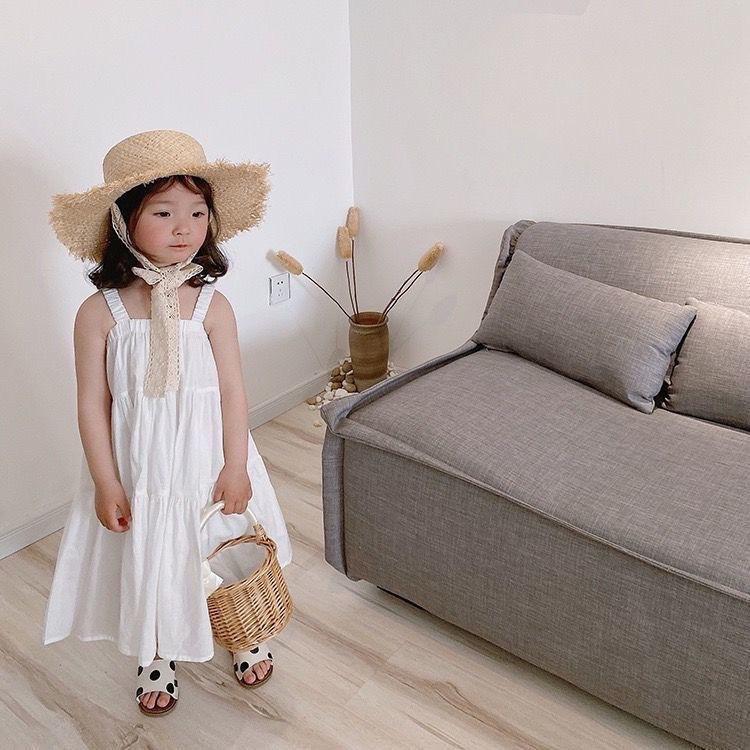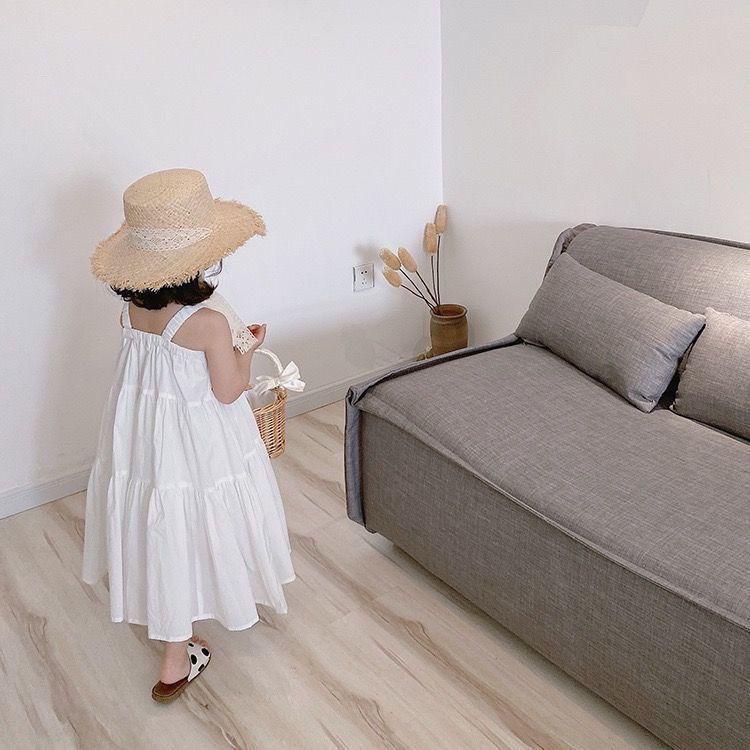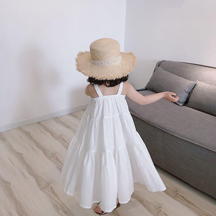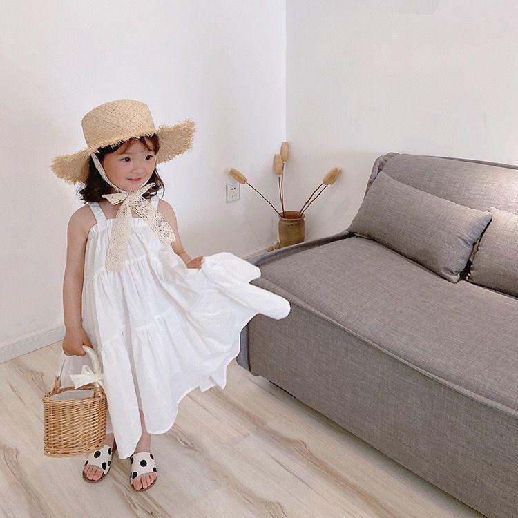 Vestido de Verano para Niñas Moda Infantil Marca de Tendencia Individual Estilo Coreano Blanco Playa Dulce Princesa Vestido de Tirantes