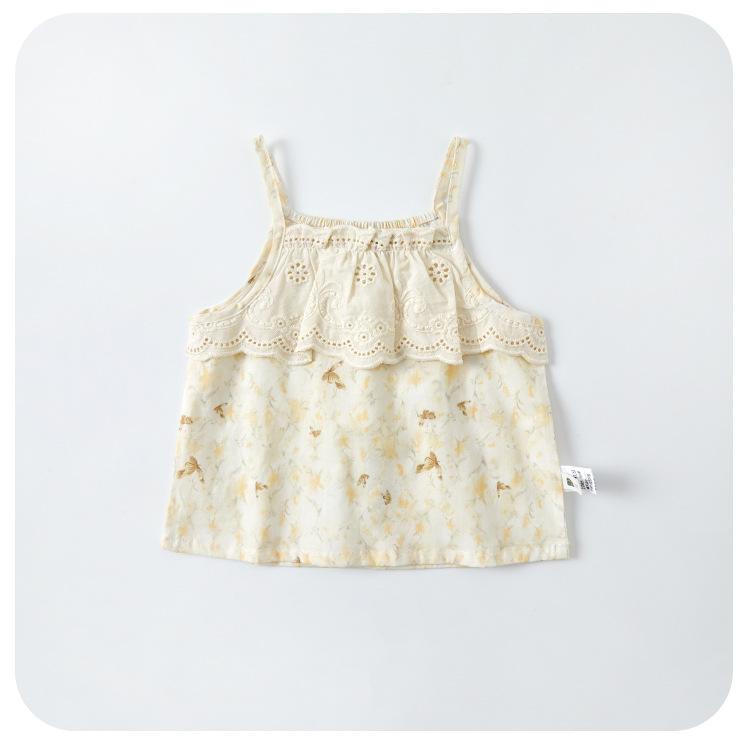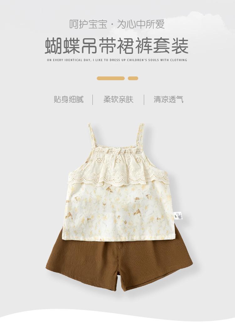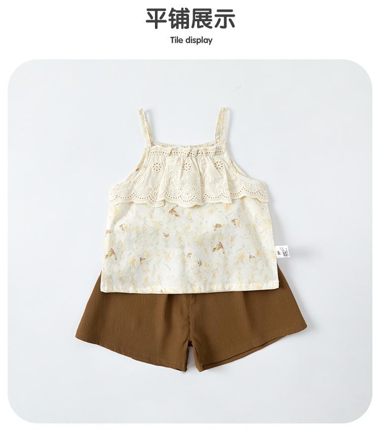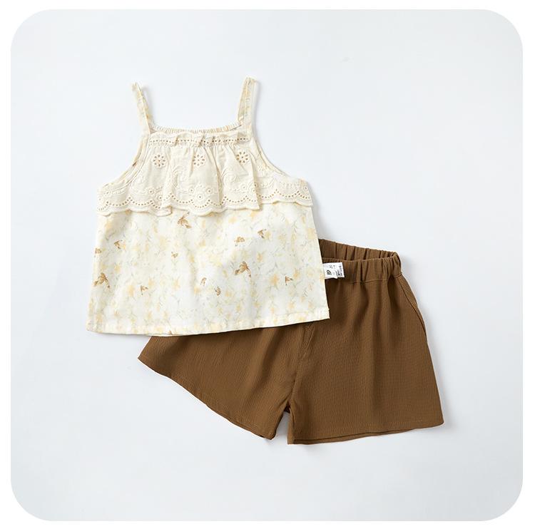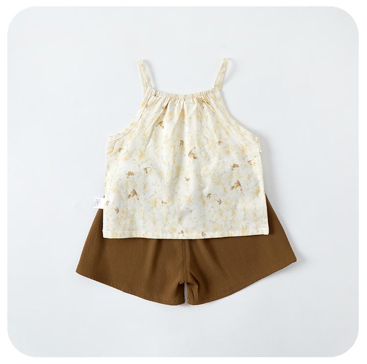 Traje de tirantes floral para niña, verano 2025, nuevo, chaleco delgado para bebé, shorts, conjunto de dos piezas moderno
