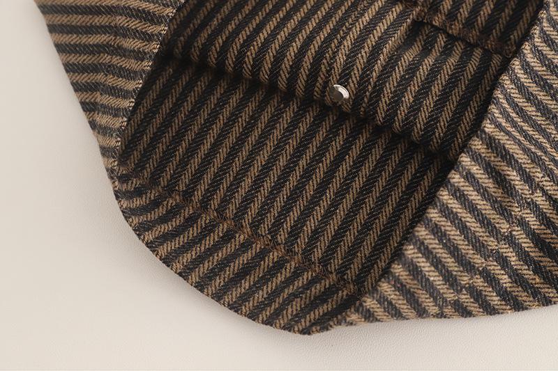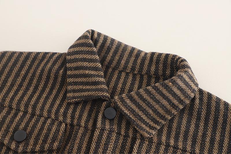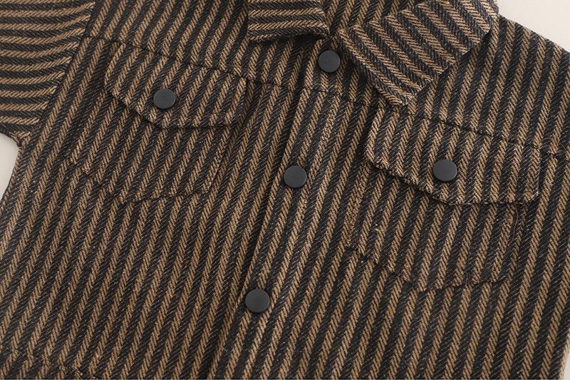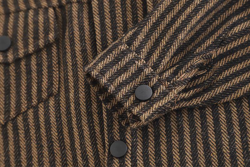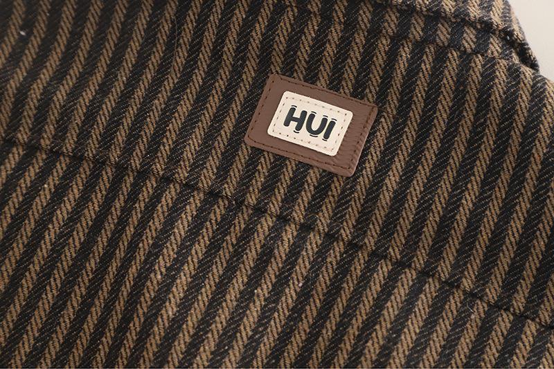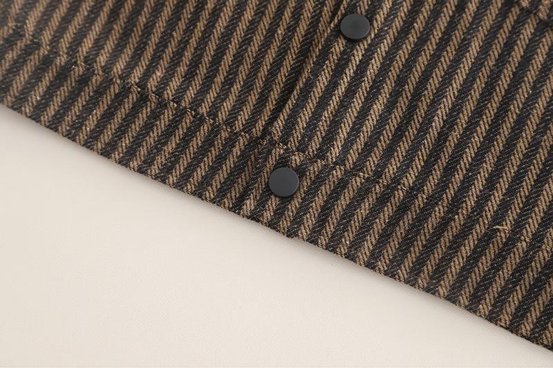 Vertical Stripe Workwear Three-Piece Set Brown