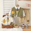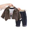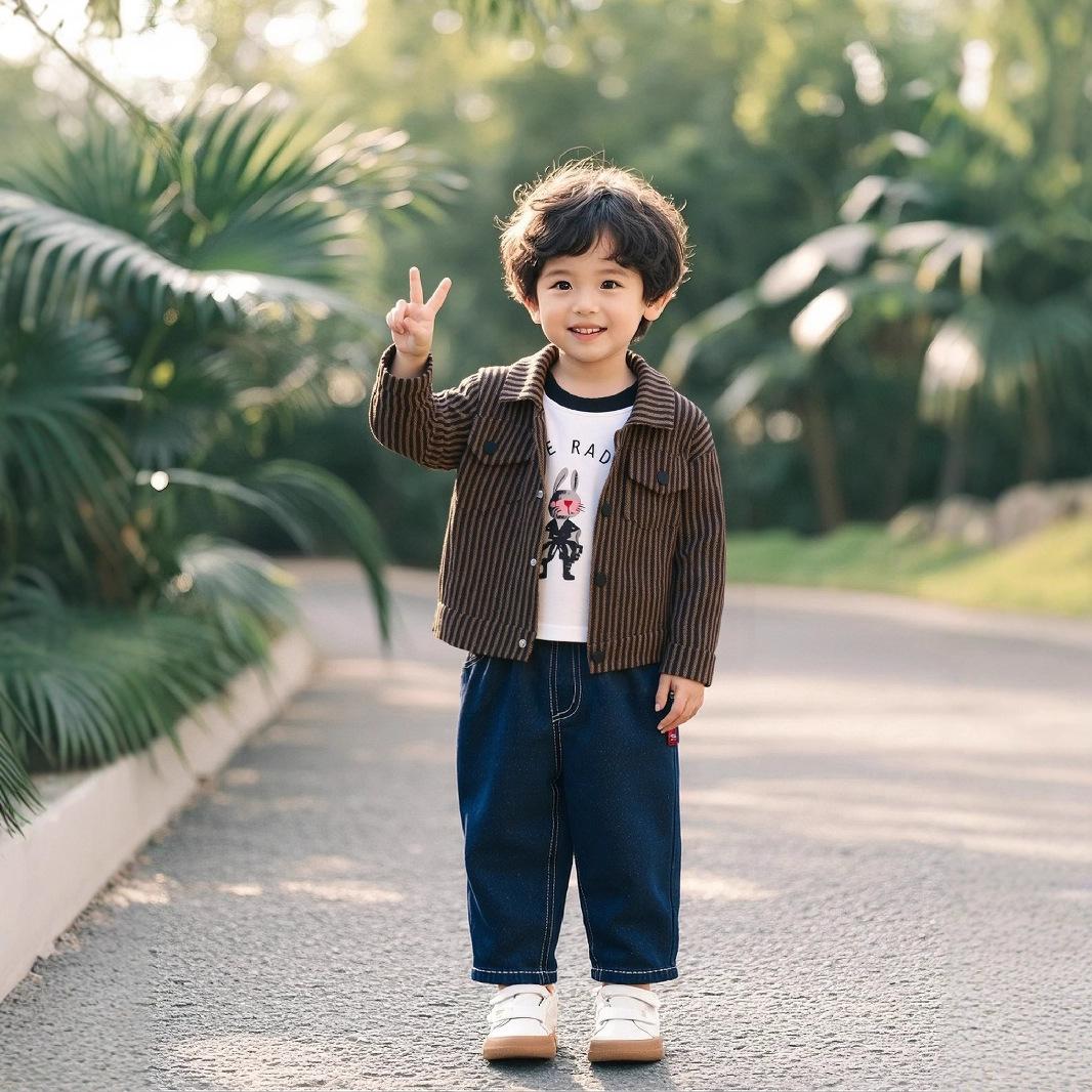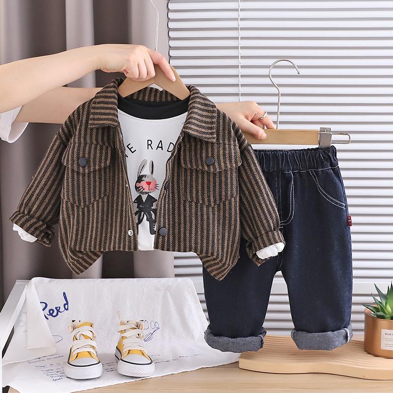 Conjunto de Otoño para Niño 2025 Nueva Ropa de Otoño para Niños 1-3 Años Bebé Raya Vertical Ropa de Trabajo Conjunto de Tres Piezas