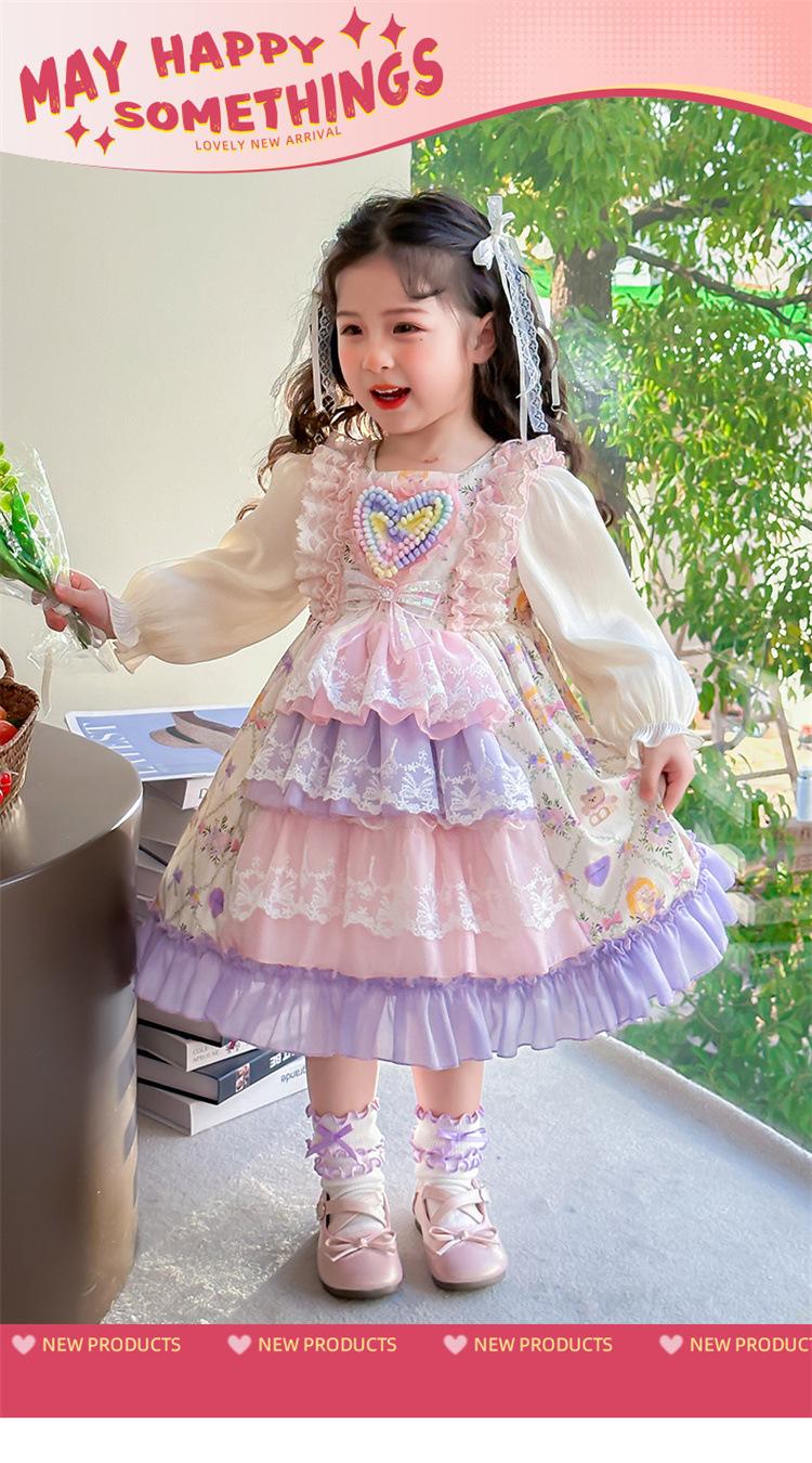Vestido de Princesa Lolita para Niñas Primavera y Otoño 2025 Nuevo Vestido de Cumpleaños para Niños vestido Elegante a la Moda Vestido Ponte