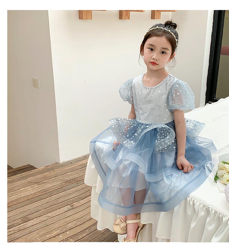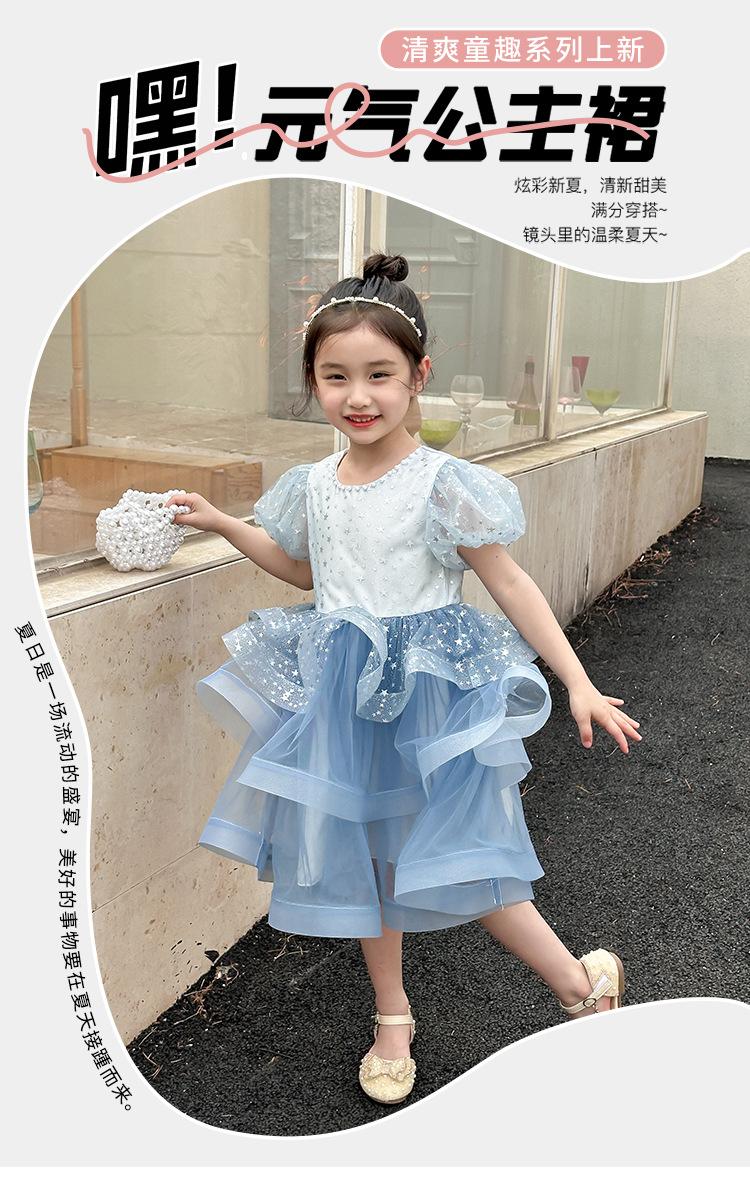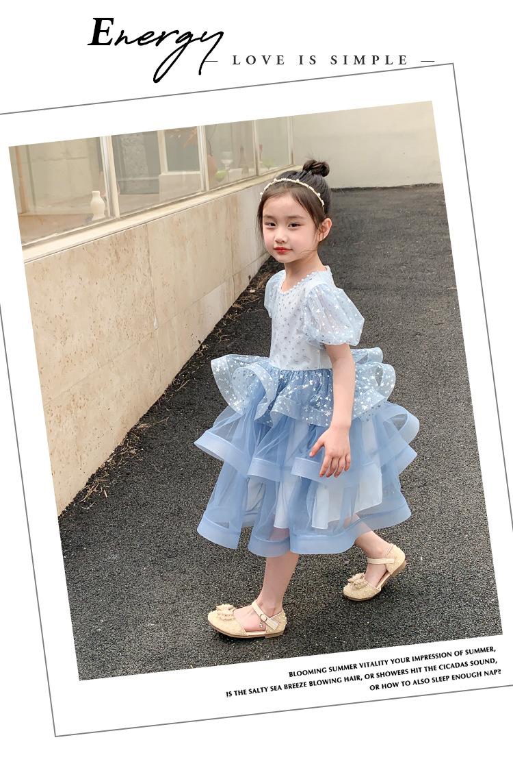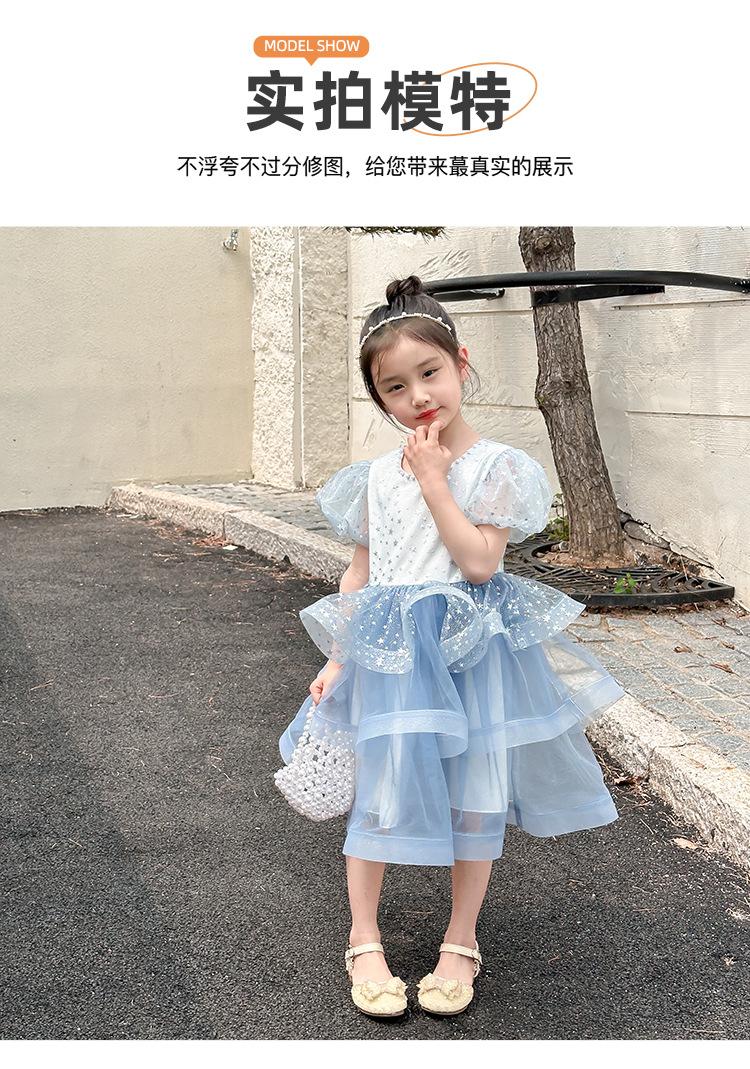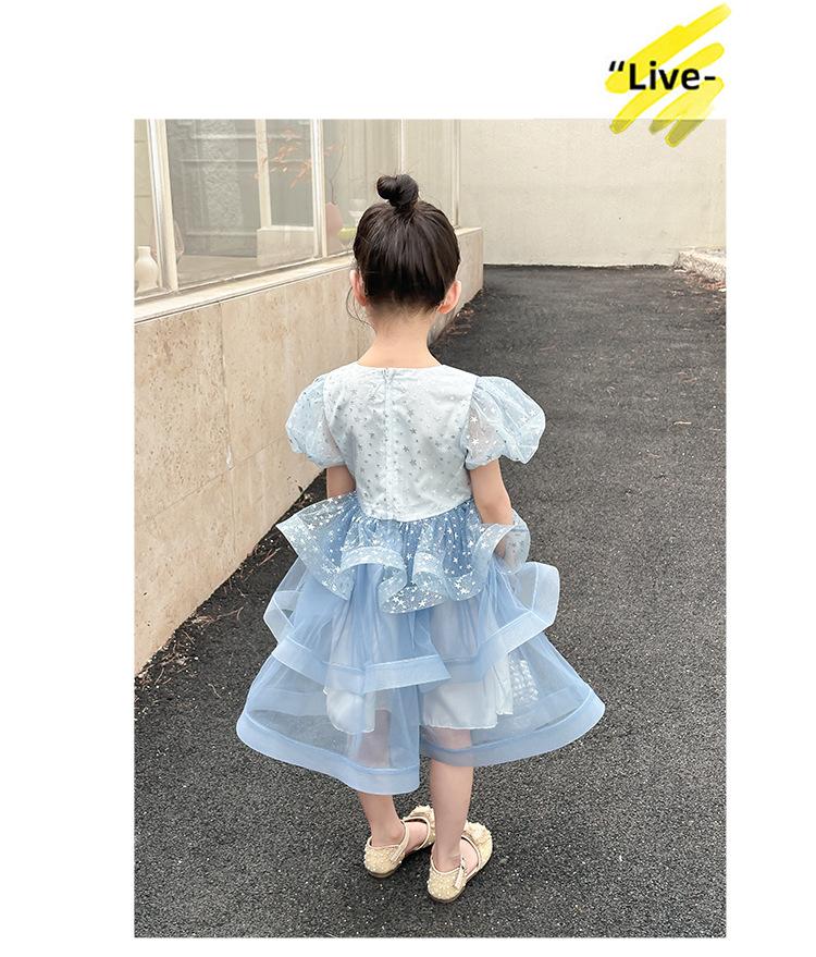 Vestido de Niña Verano 2025 Nuevo Vestido de Gasa Abullonado para Niños Vestido Infantil Vestido de Princesa Vestido de Niña a la Moda