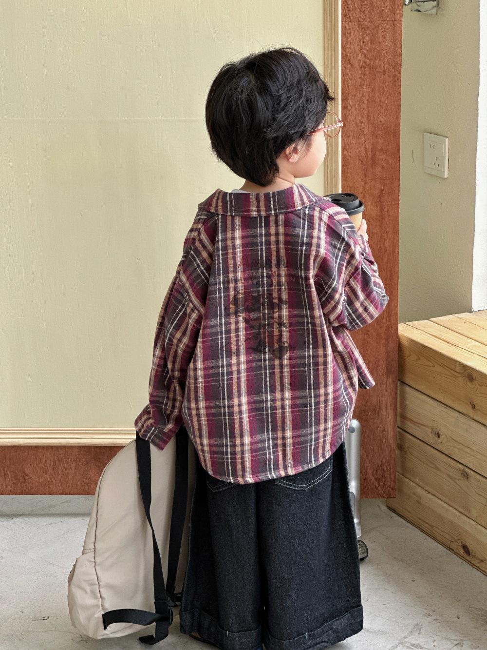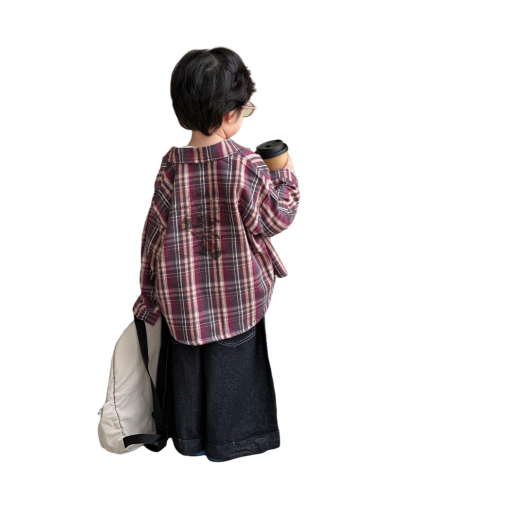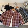 Camisa para Niños 2025 Otoño Nuevo Producto Niños y Niñas Estampado Tela a Cuadros Camisa de Bebé Versátil Camisa Chaqueta