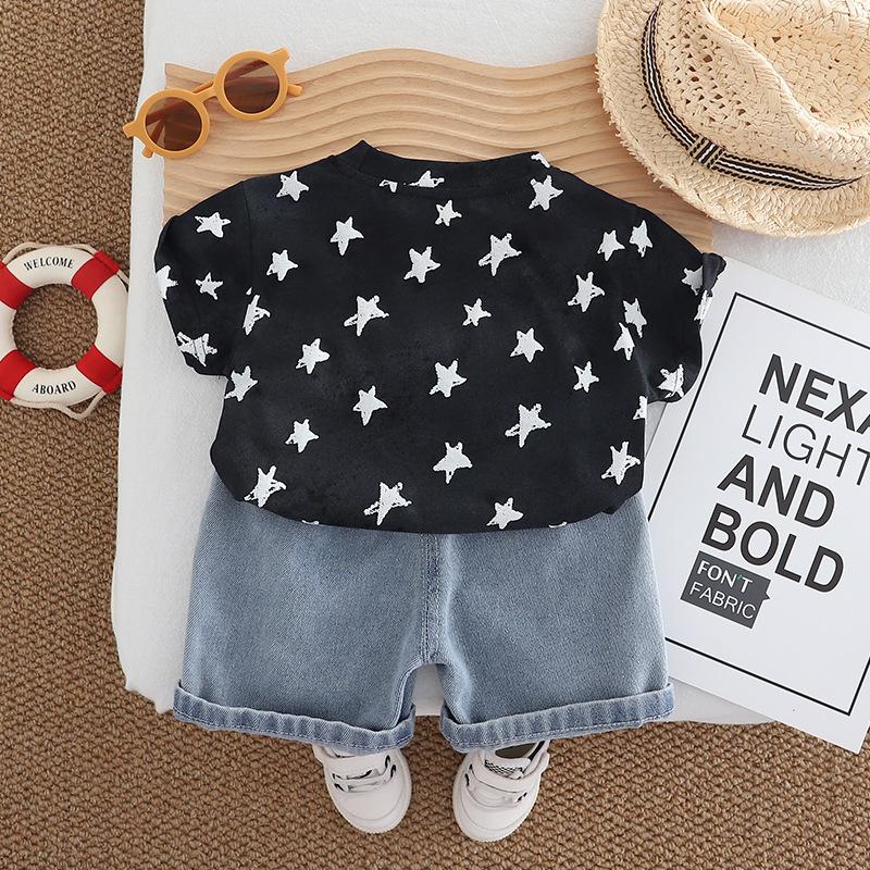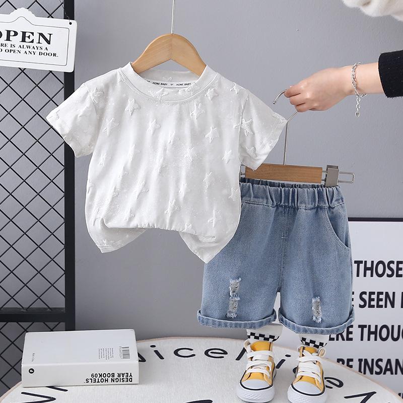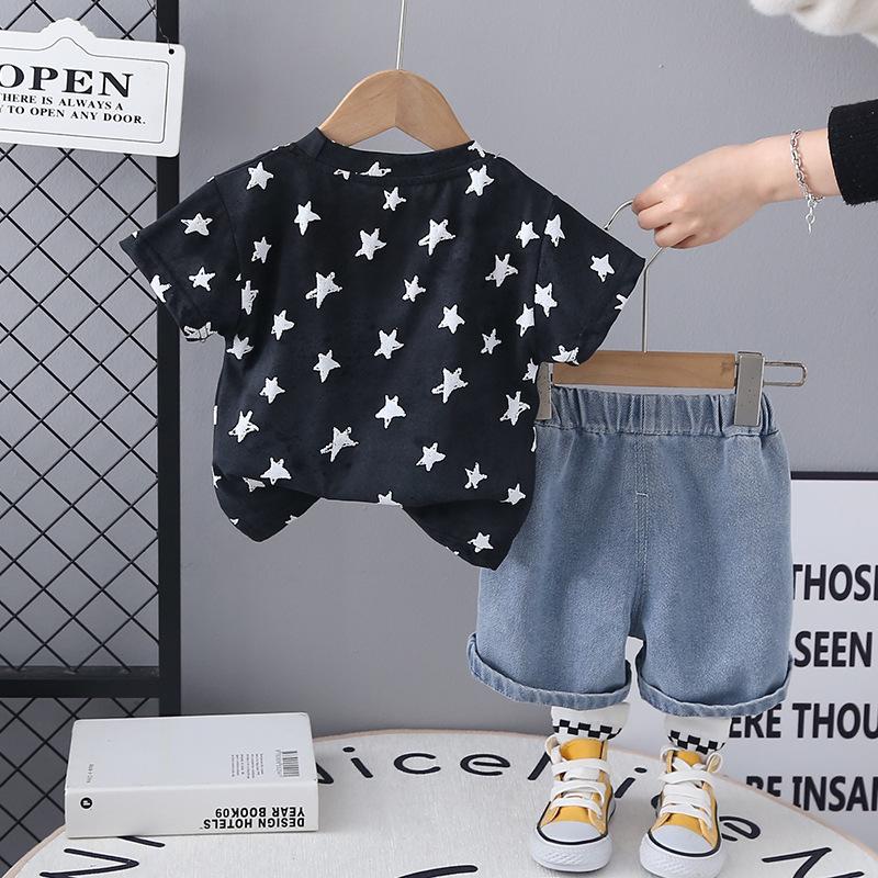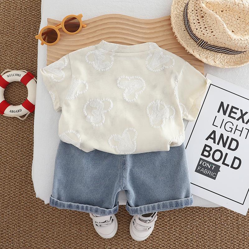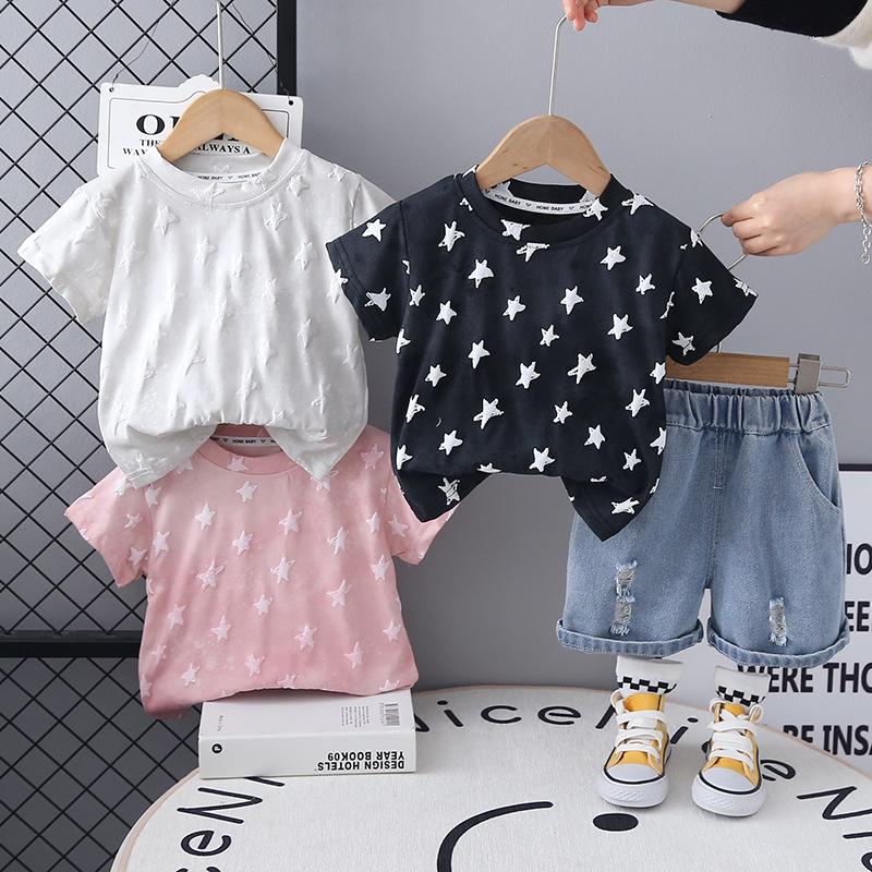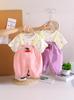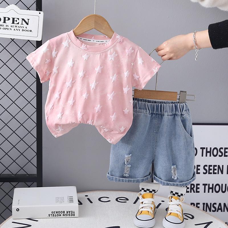Traje de Verano para Niñas 2025 Nuevo Estilo Ropa de Moda de Dos Piezas para Bebé Infantil con Peto de Manga Corta