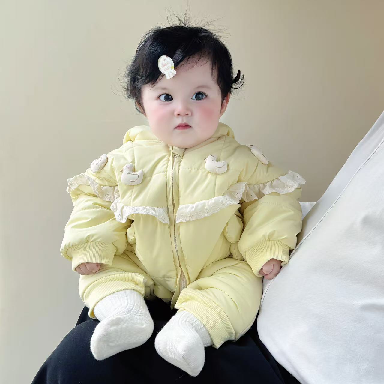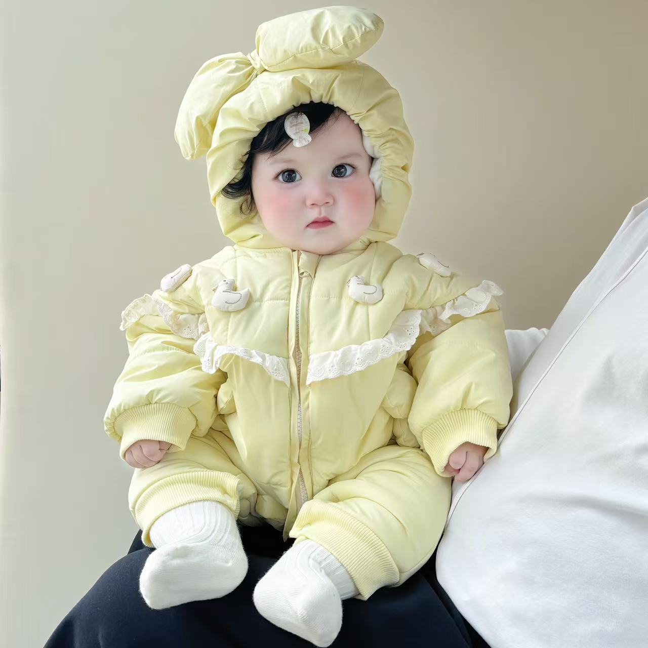 Yellow-A-5【Cute Duckling Plus Cotton Thickened】Onesie