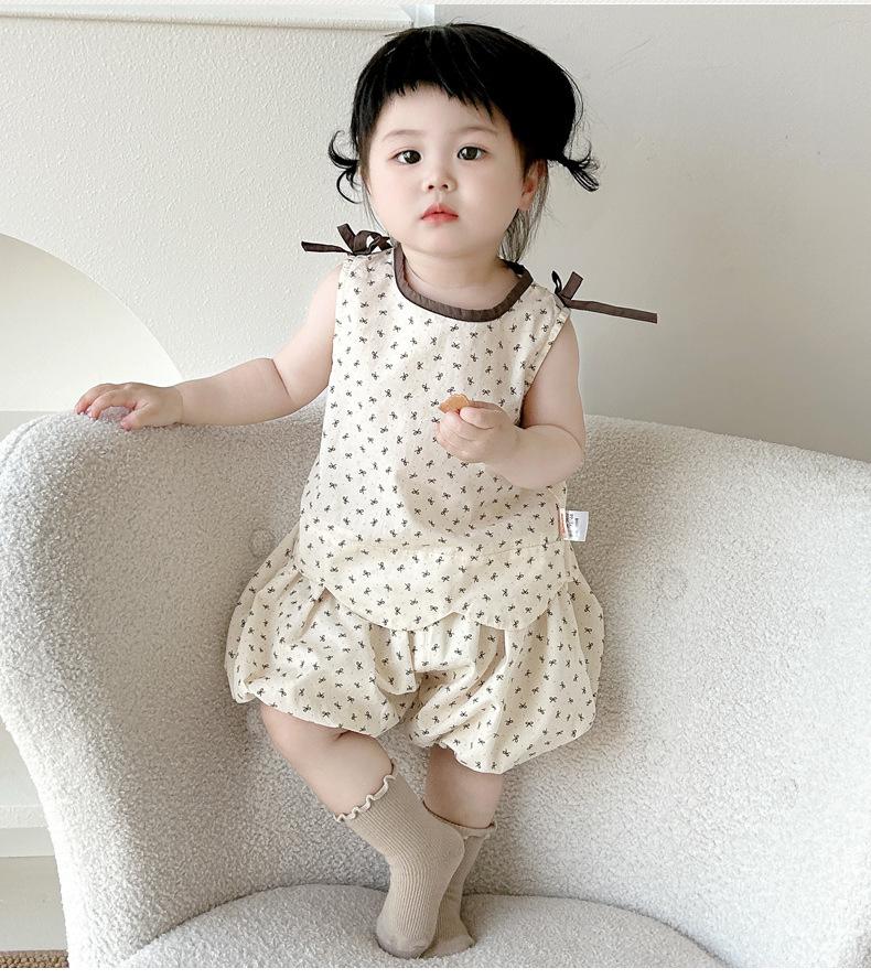 Ropa de Bebé Ropa para Niños Ropa de Verano de Dos Piezas para Niñas Ropa Floral Linda Traje de Verano para Bebé Niña Traje a la Moda
