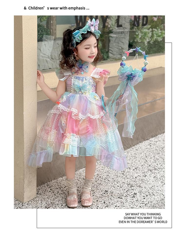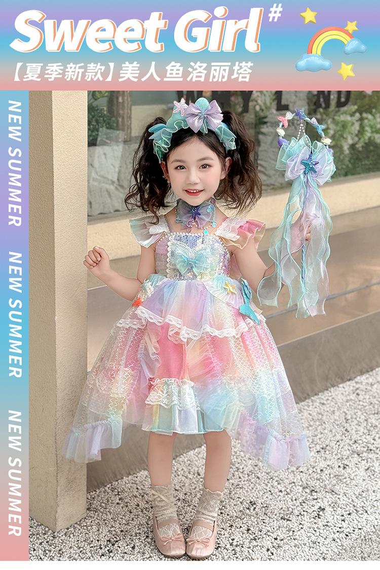 Vestido de Niña Vestido de Verano 2025 Nuevo Estilo Vestido de Princesa Sirena para Niños Vestido de Cumpleaños de Niña Vestido Lolita