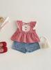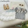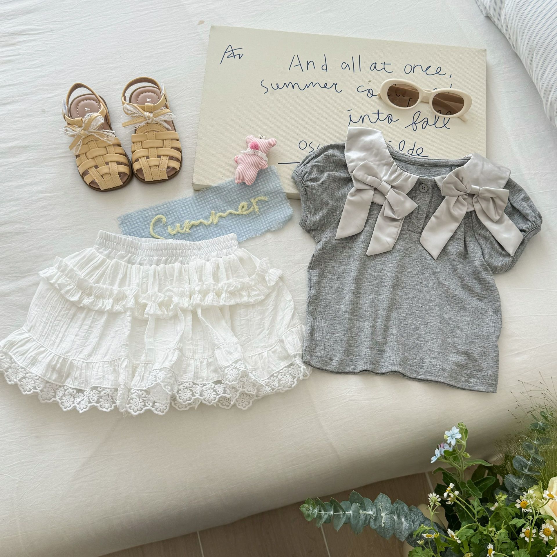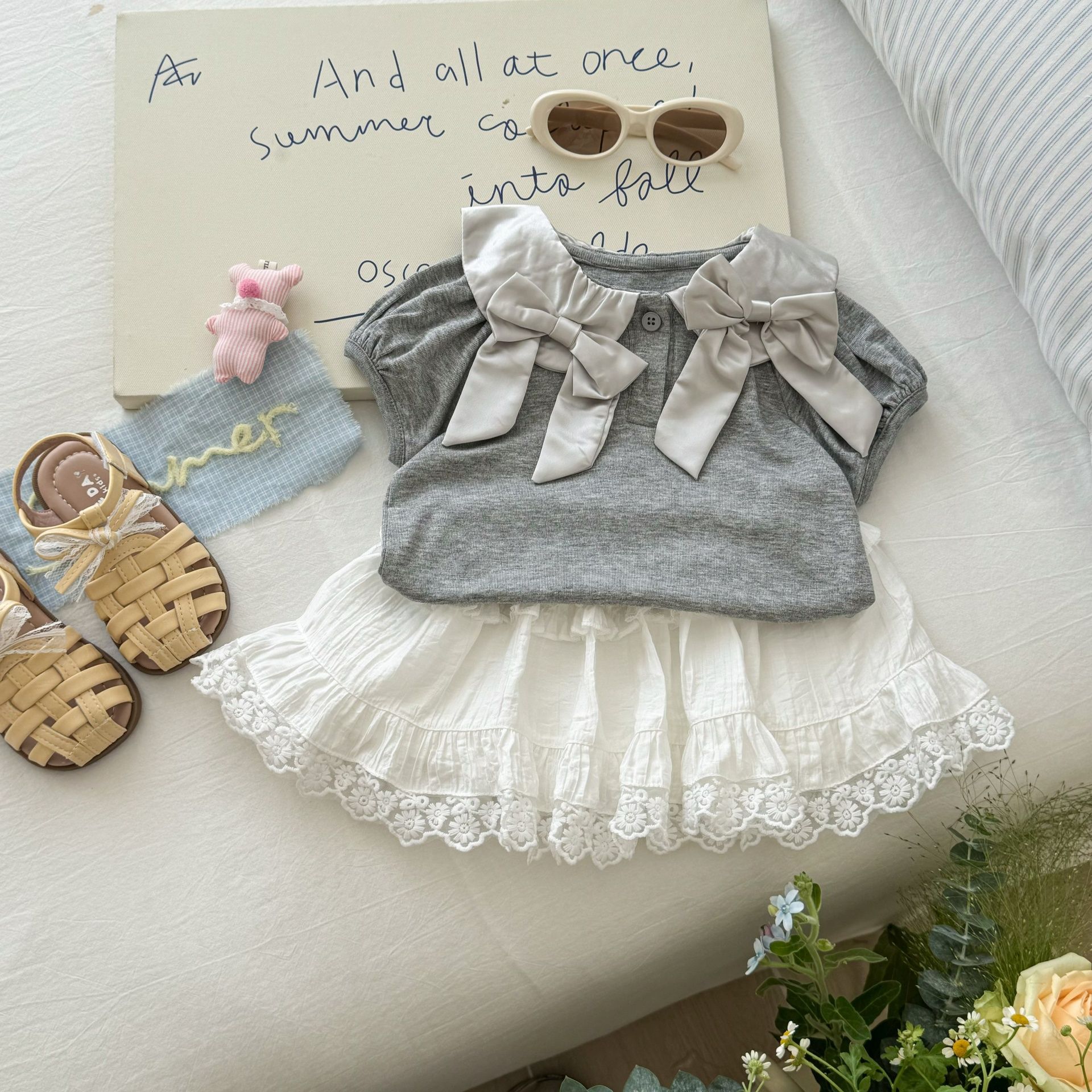Traje Casa Rosa Verano 2025 Estilo Coreano Moderno Verano Cuello Muñeca Lazo Camiseta Top y Falda Conjunto de Dos Piezas