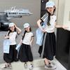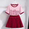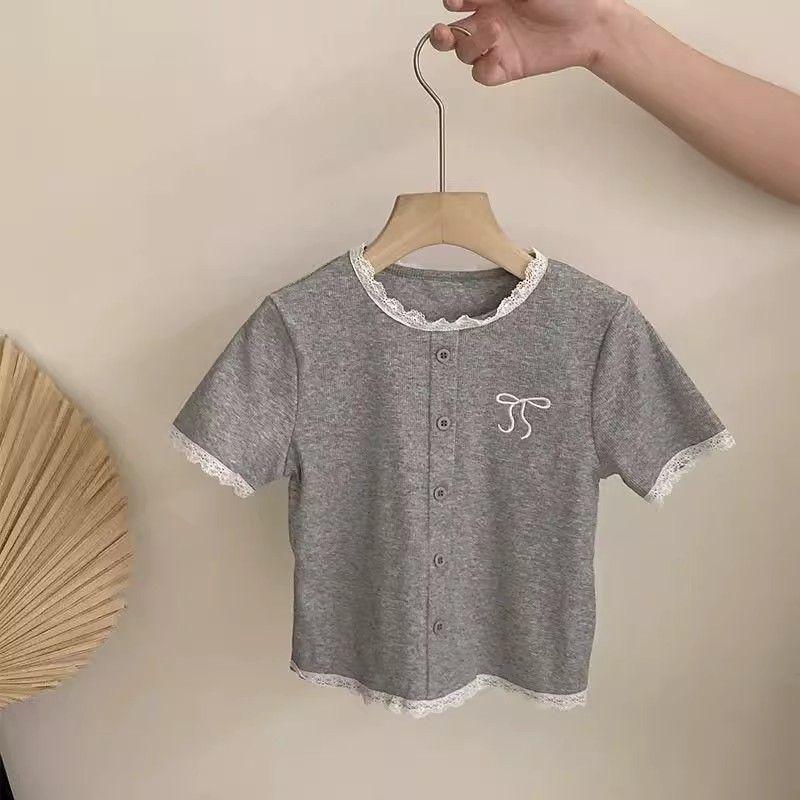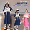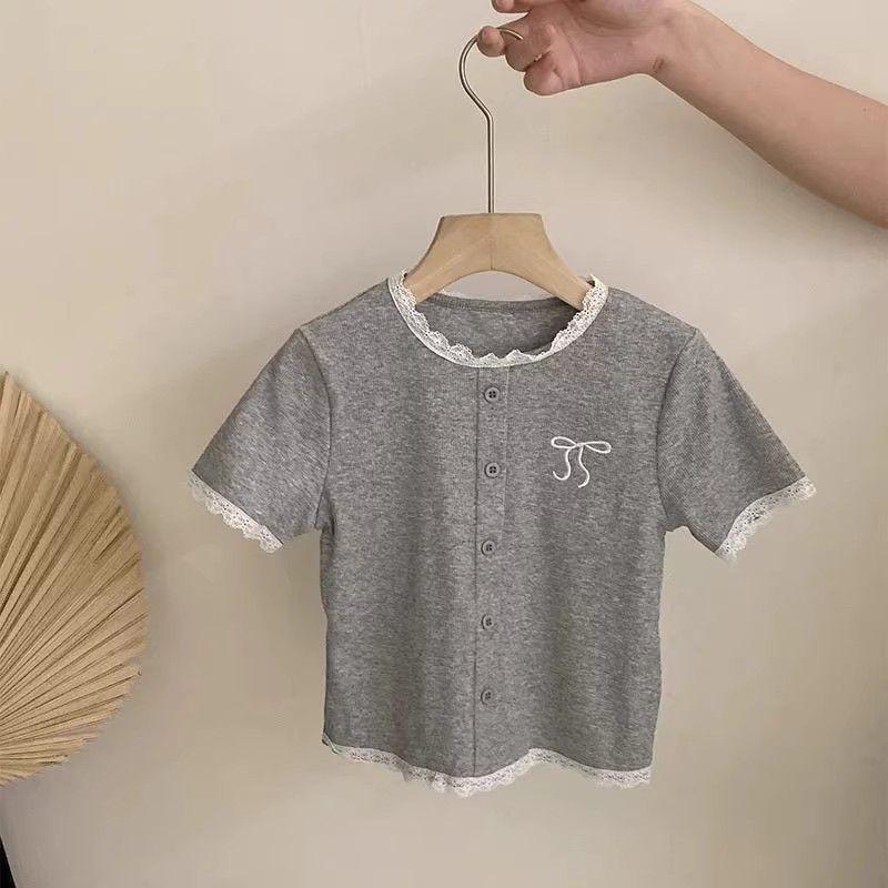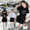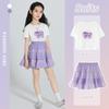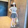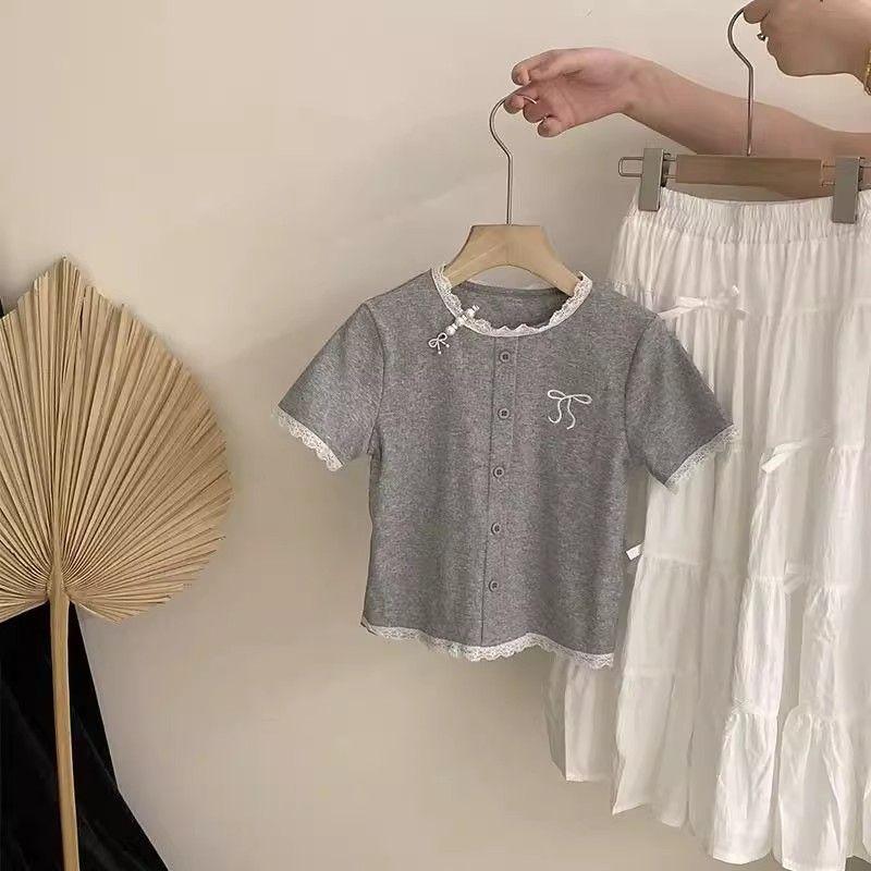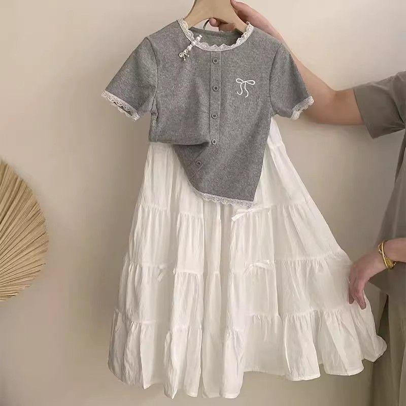 Traje de falda de manga corta para niña Verano Nuevo Niños Medianos y Grandes Estilo Coreano Moda Camiseta de Encaje Falda Pastel Conjunto de Dos Piezas